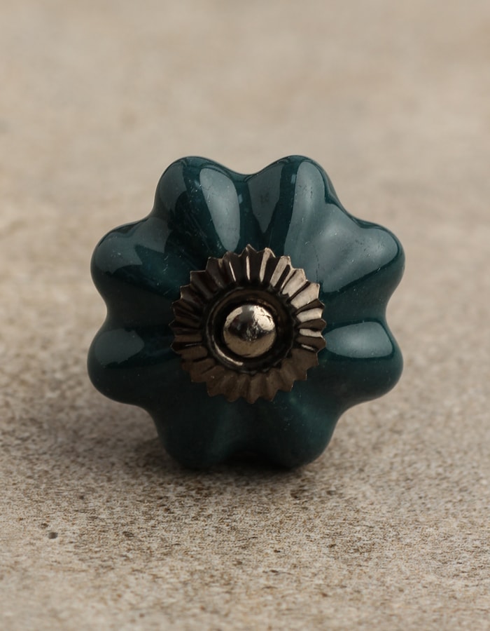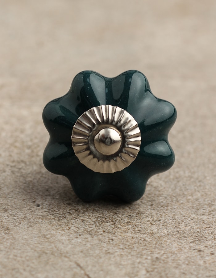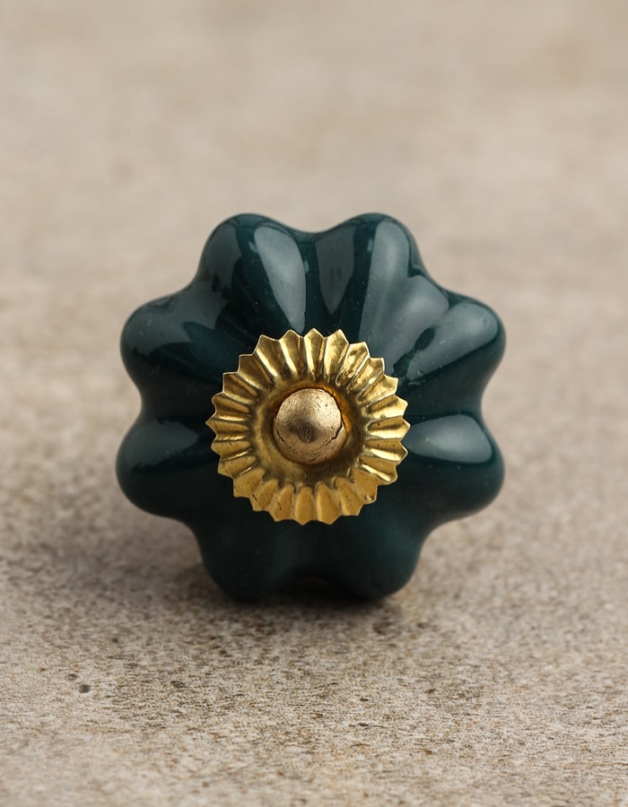 Dark Green Flower Shaped Ceramic Drawer Knob