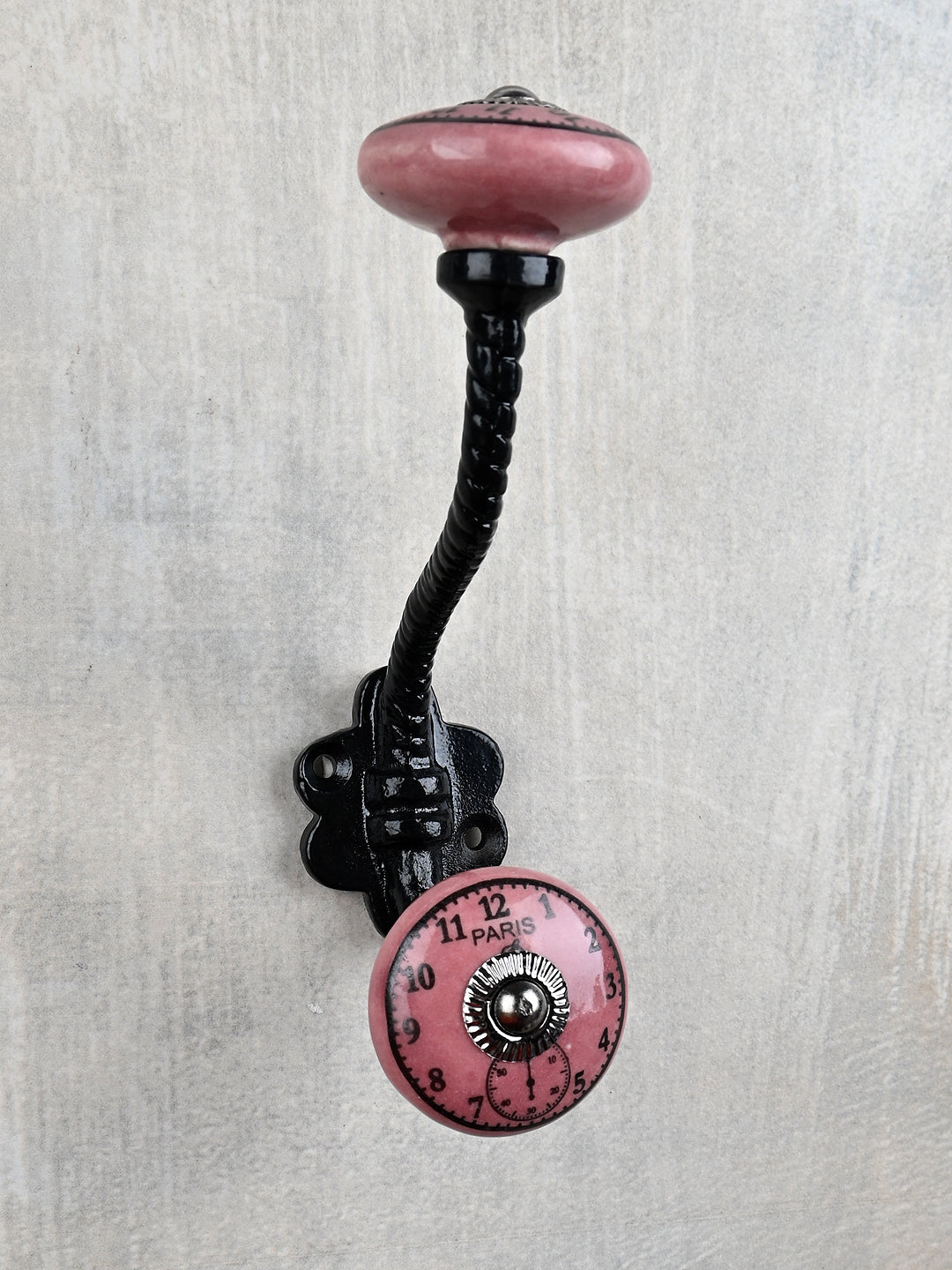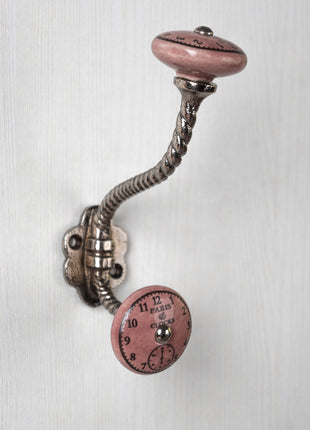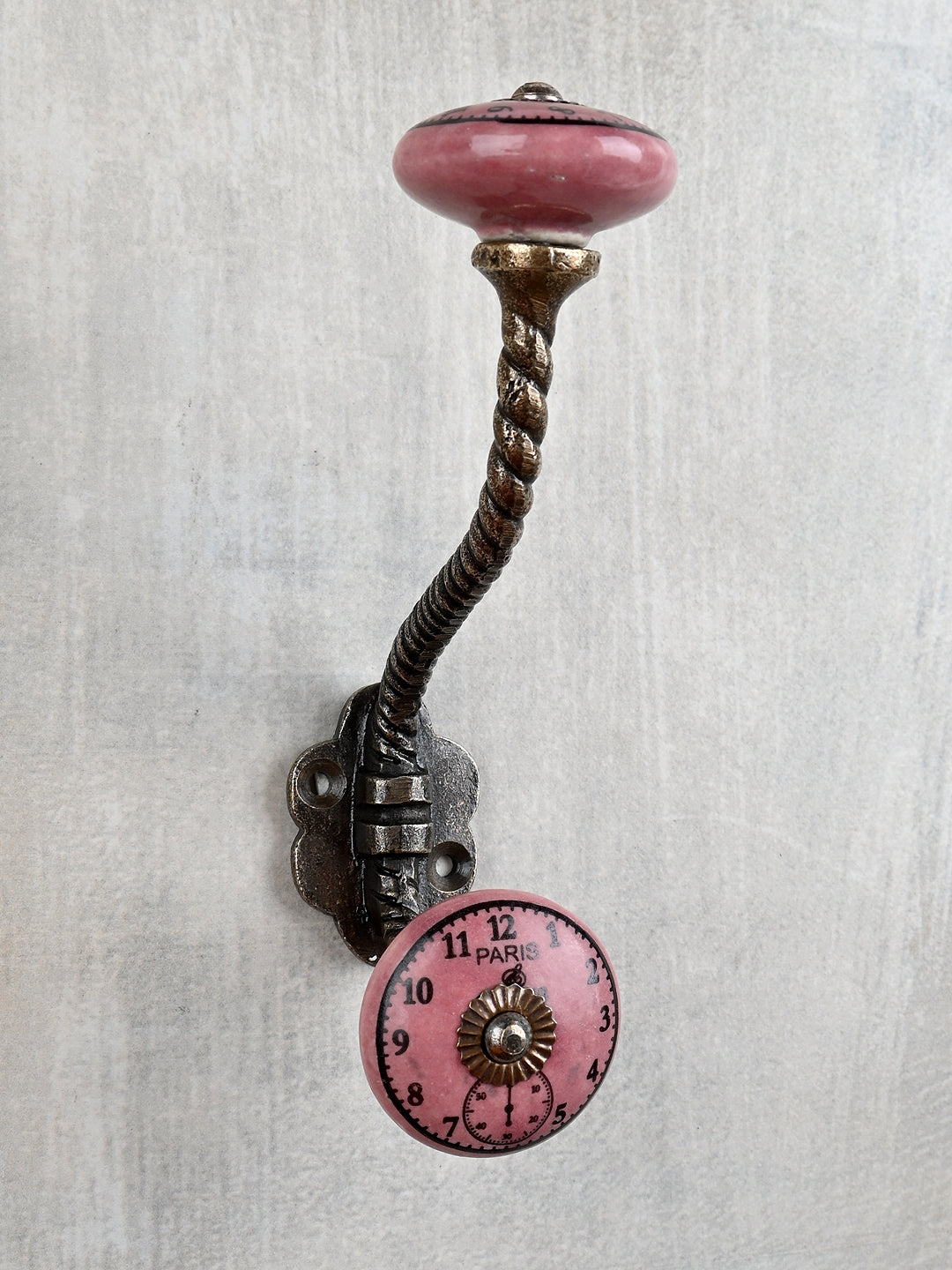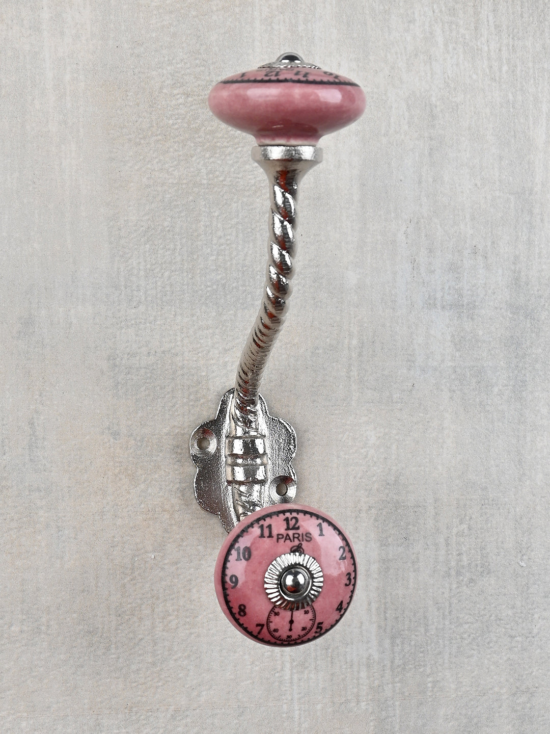 Dark Pink Clock Ceramic Knob With Metal Wall Hanger