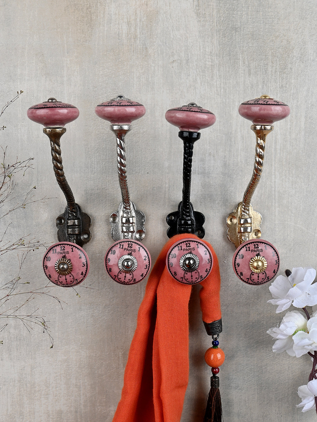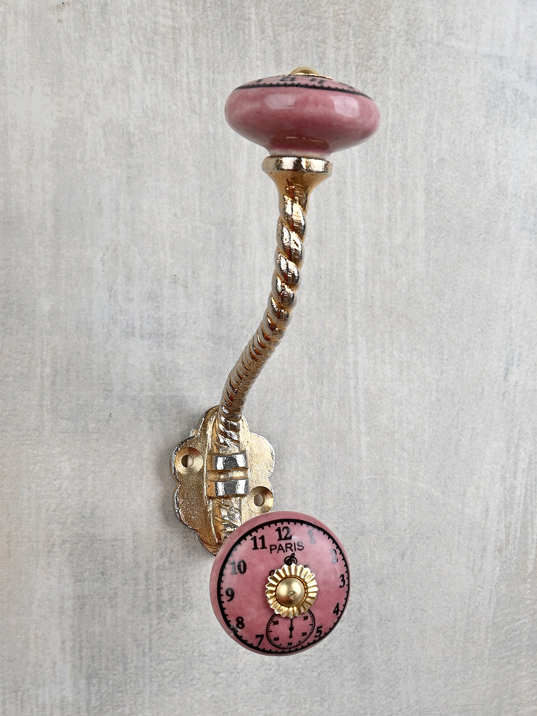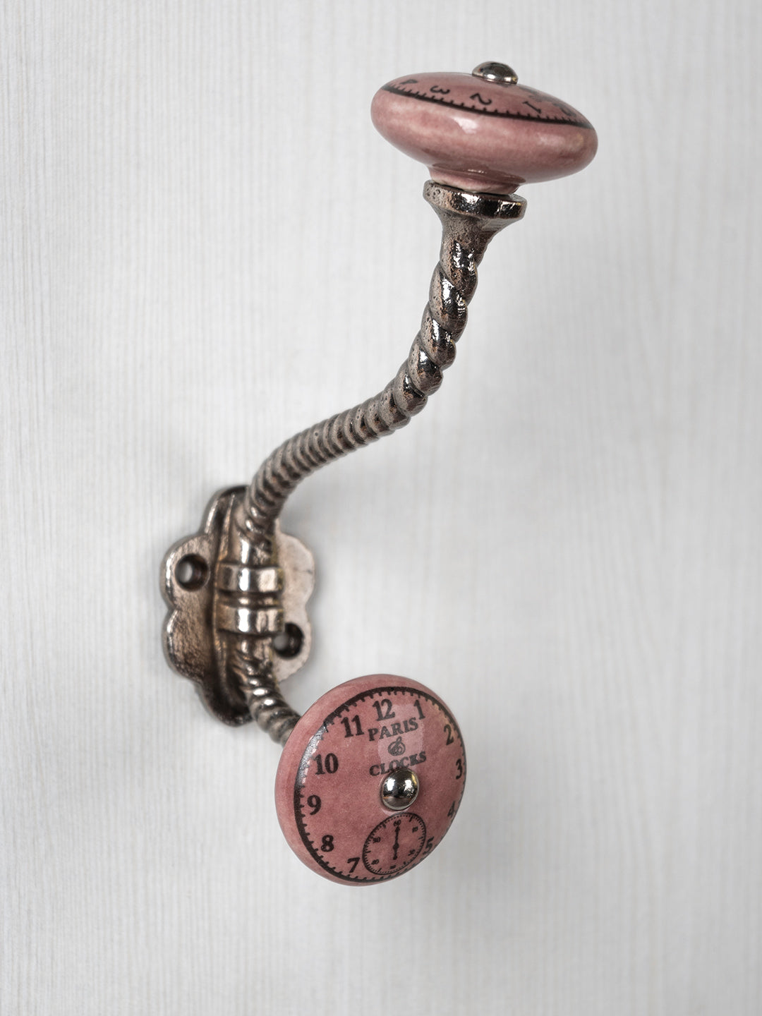 Dark Pink Clock Ceramic Knob With Metal Wall Hanger