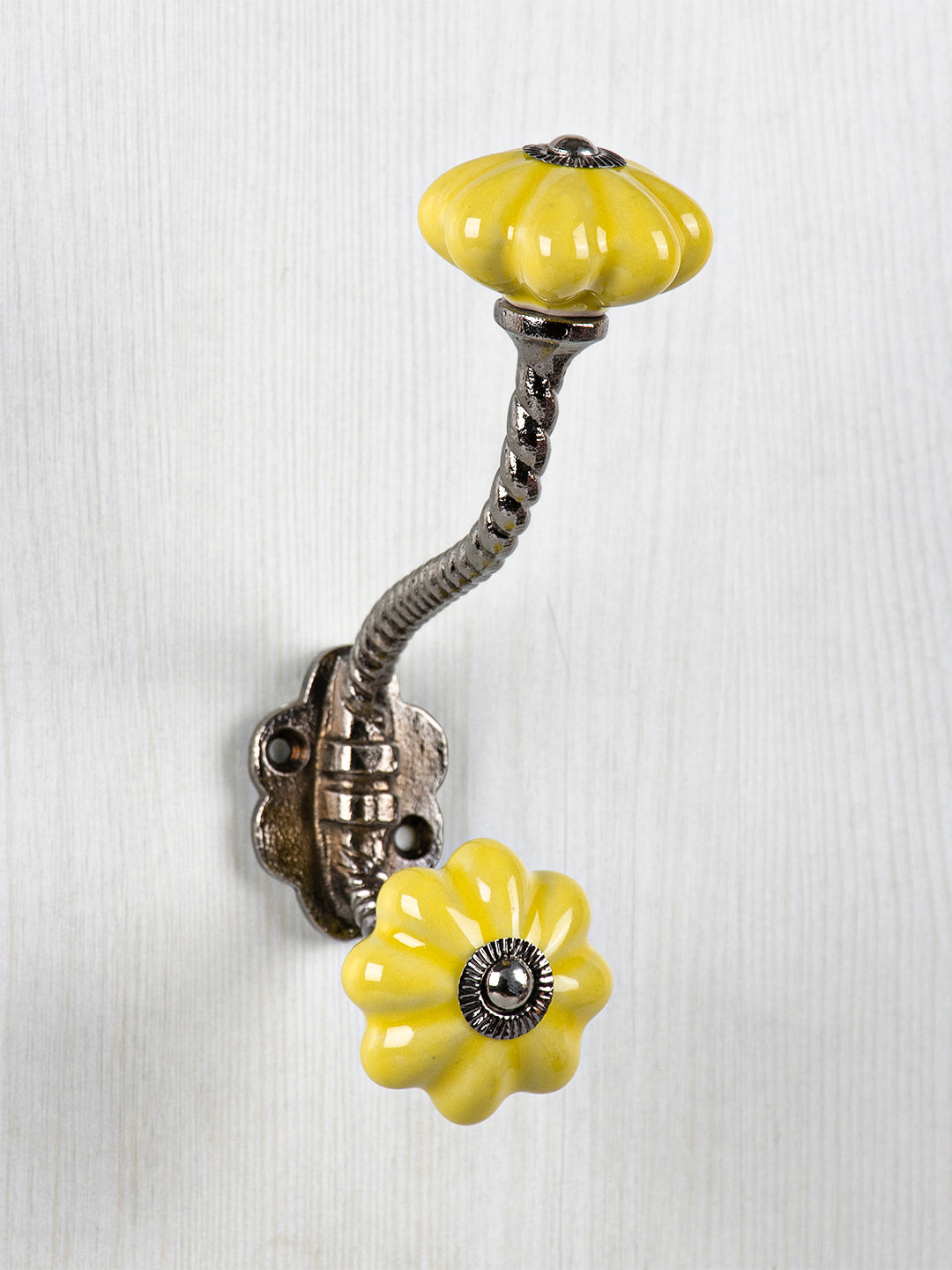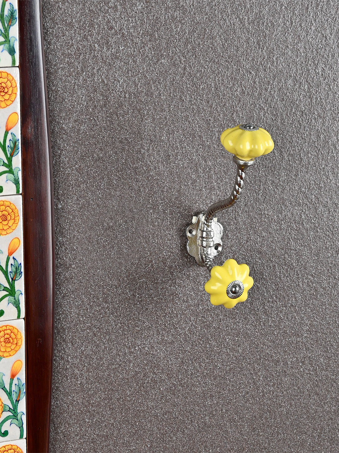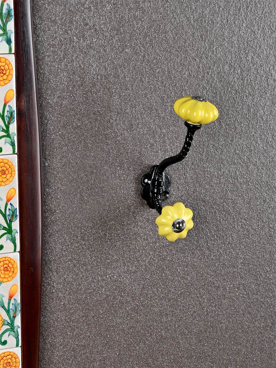 Decorative Ceramic Metal Wall Hanger With Yellow Knob