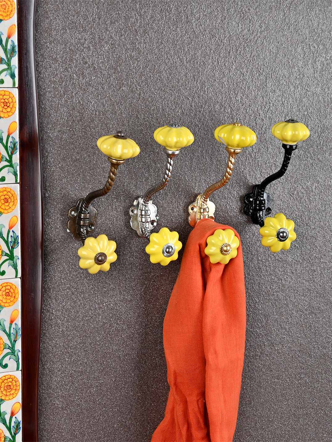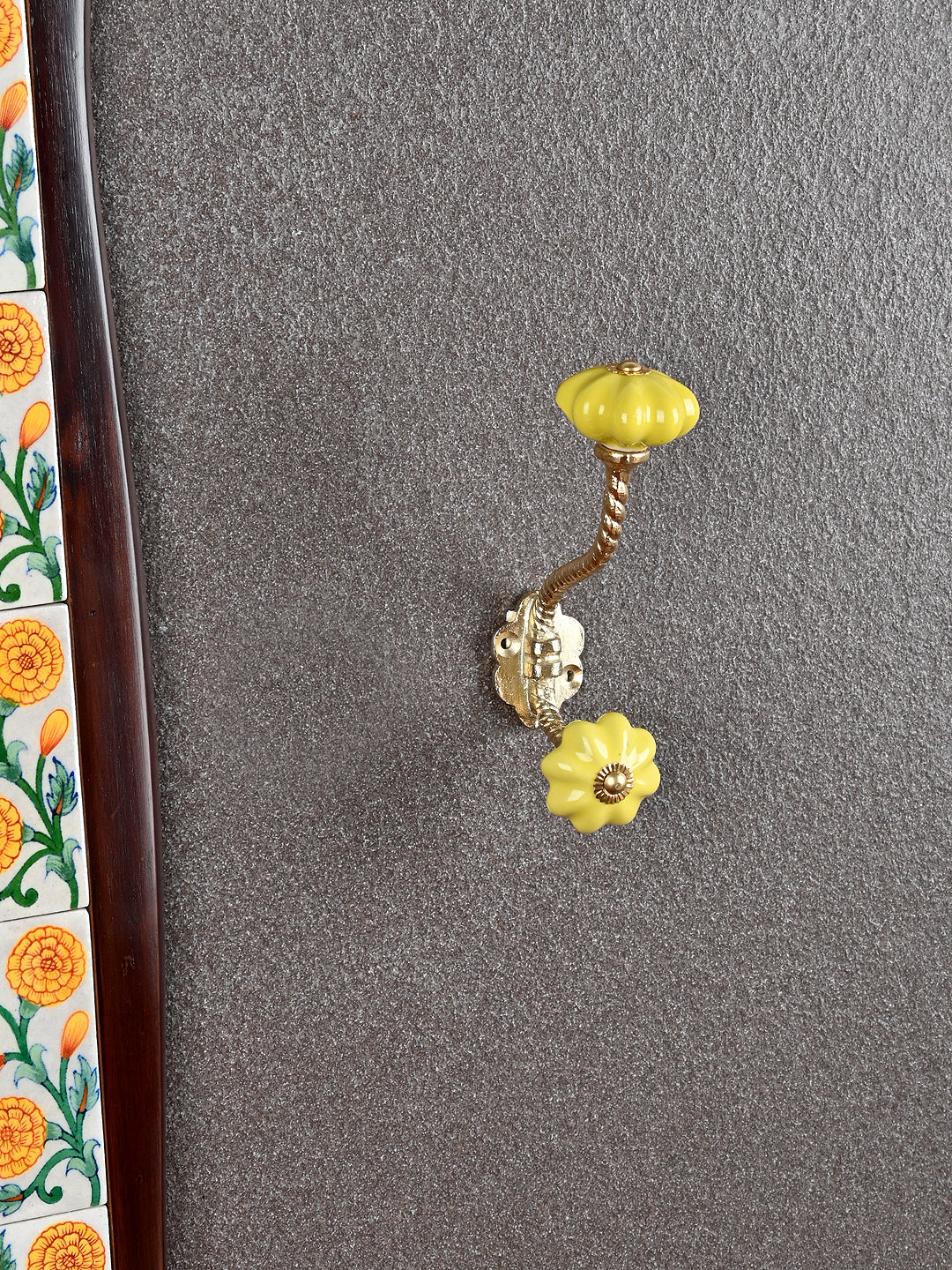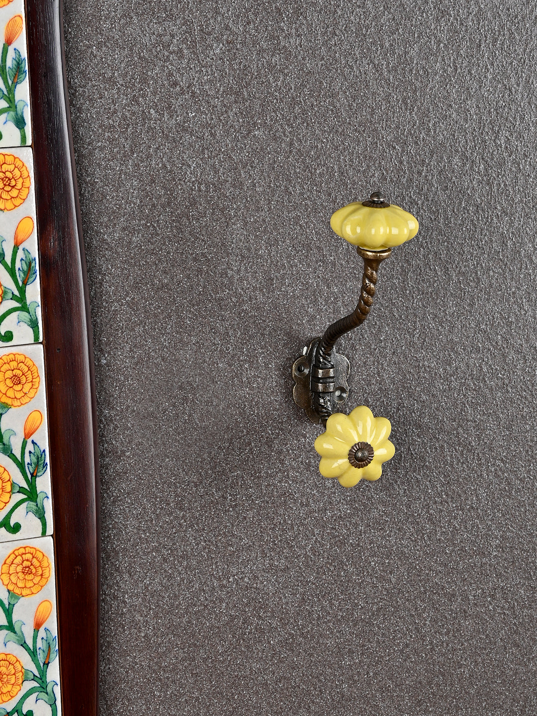 Decorative Ceramic Metal Wall Hanger With Yellow Knob
