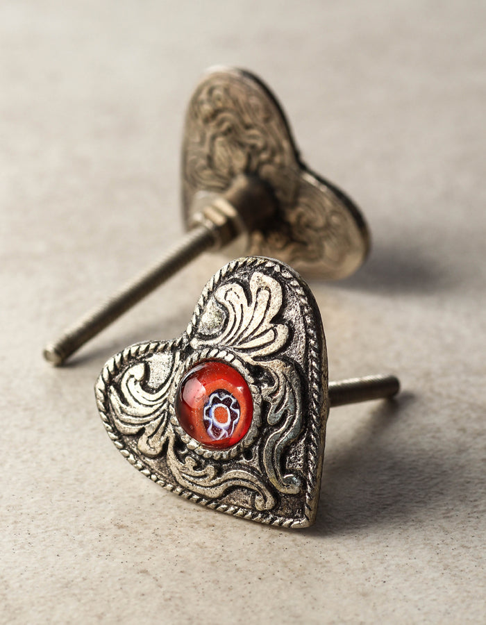 Decorative Heart Shape Wardrobe Metal knob will add color and style to your kitchen and bathroom cabinets! These unique, metal knobs are 1.5" in diameter and includes screws for installation. Delivery time is normally 5 to 7 business days.  Minimum order of three knobs - mix and match.