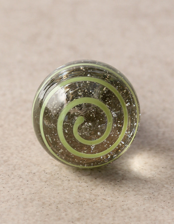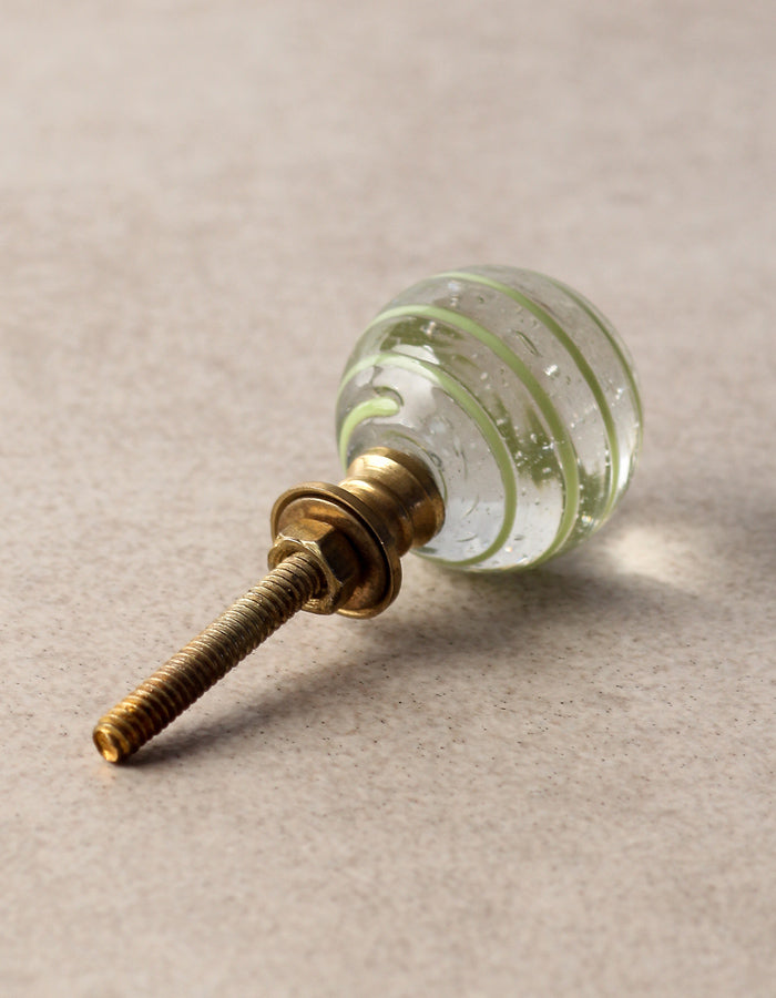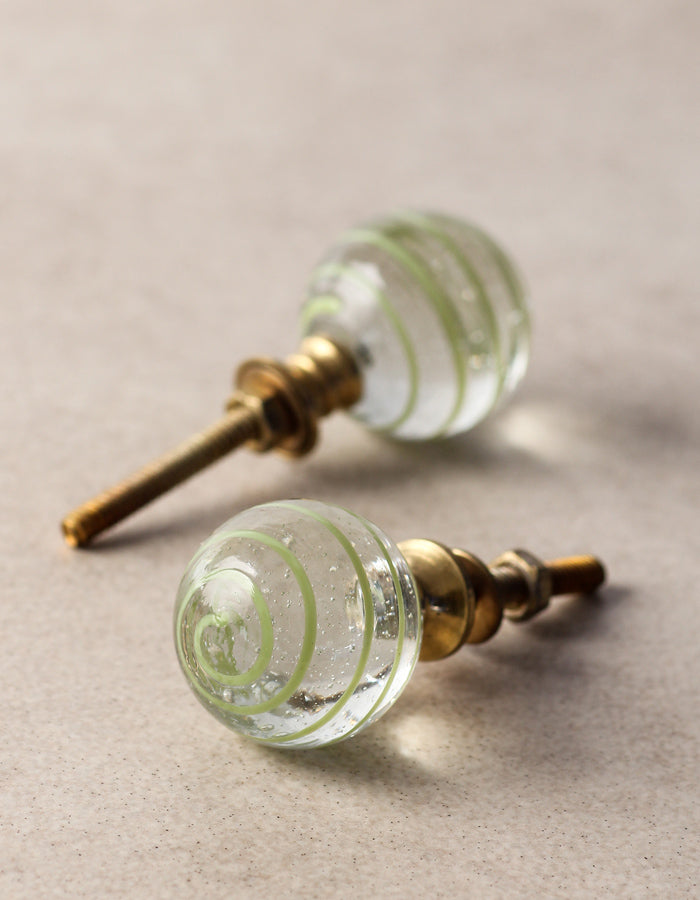 Designer Clear Round Glass Dresser Cabinet Knob With Green Swirl