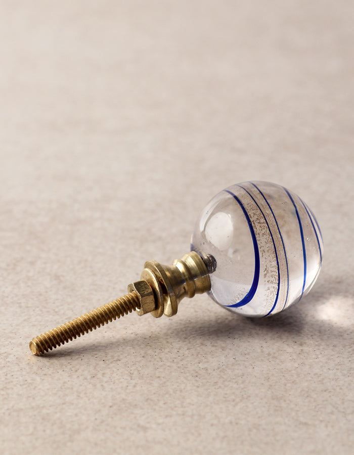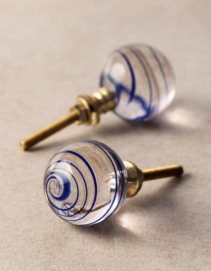 Designer Clear Round Glass Kitchen Cabinet Knob With Blue Swirl