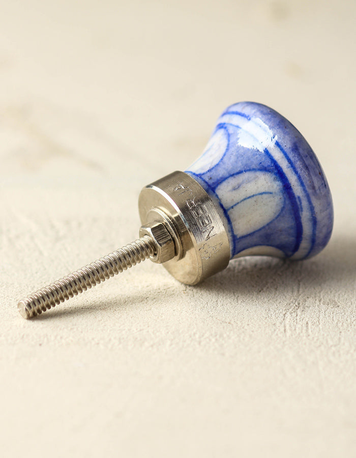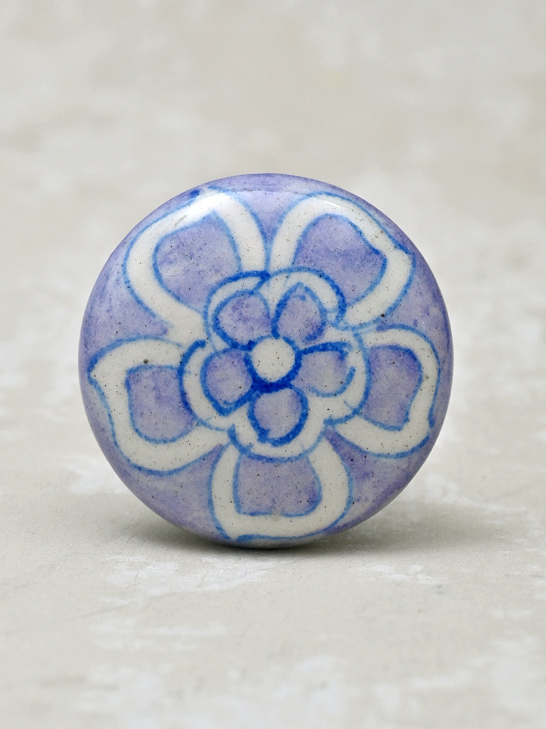 Designer Purple Drawer Blue Pottery Knob With White Flower