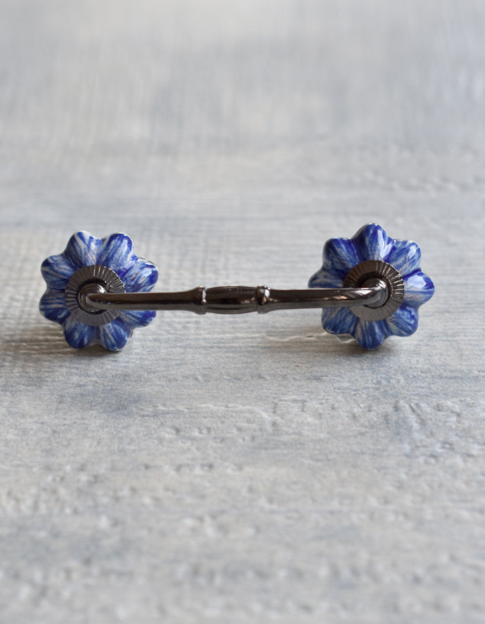 Designer White Ceramic Dresser Cabinet Pull With Blue Flower