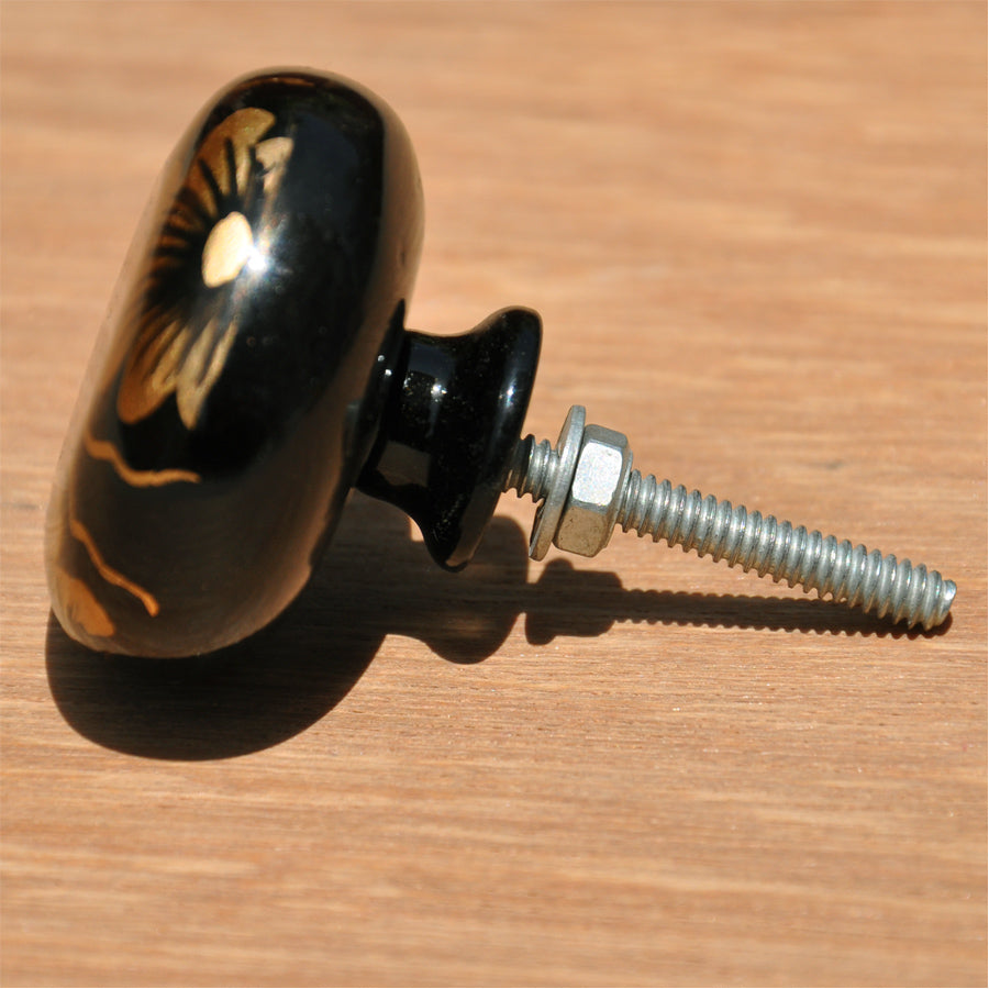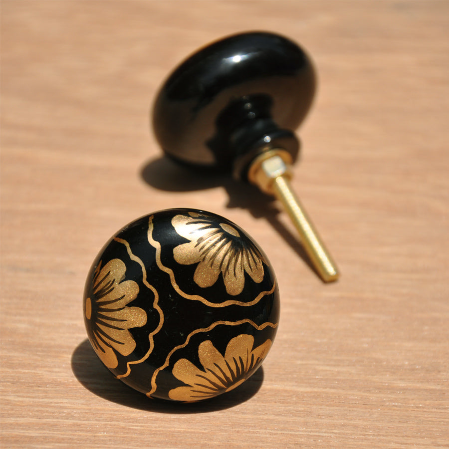 Elegant Black Dresser Cabinet Resin Knob With Golden Floral Design
