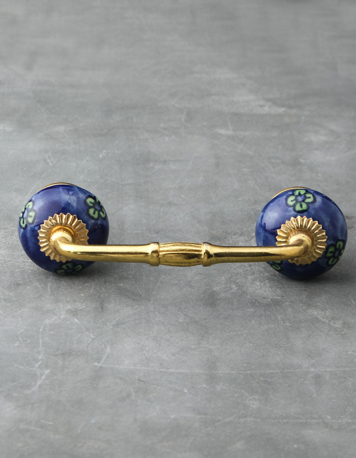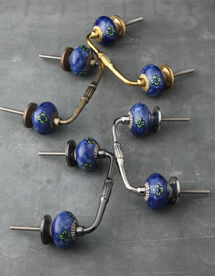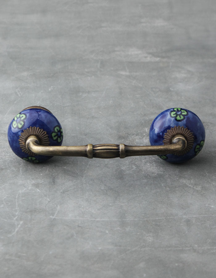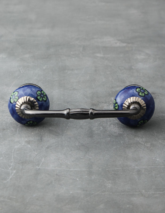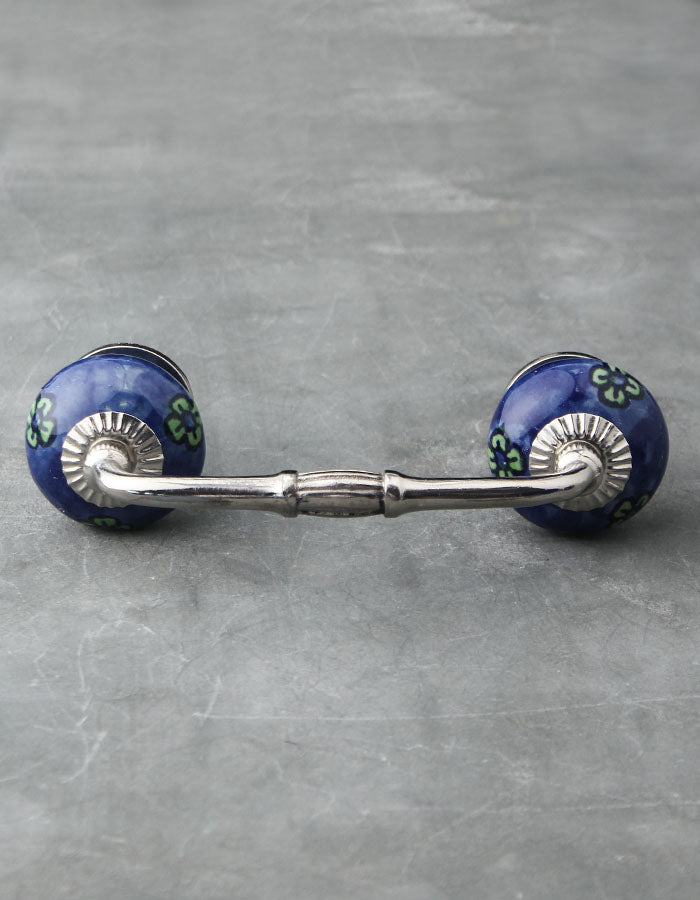 Elegant Blue Ceramic Cabinet Pull With Green Flowers