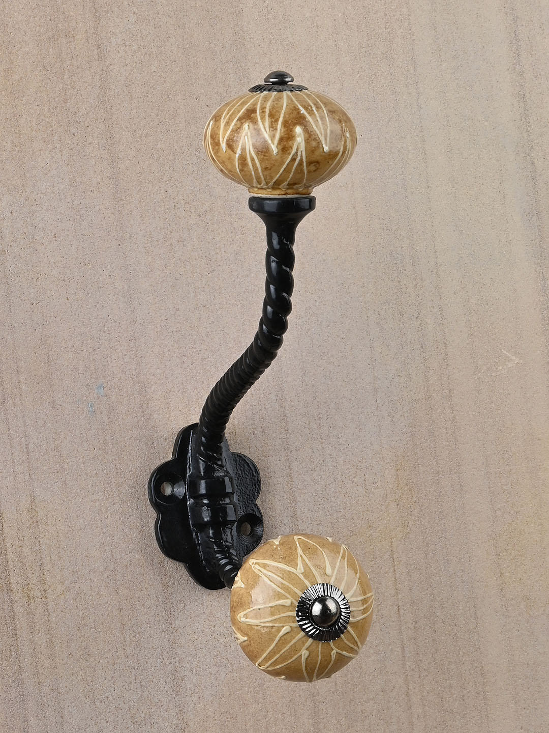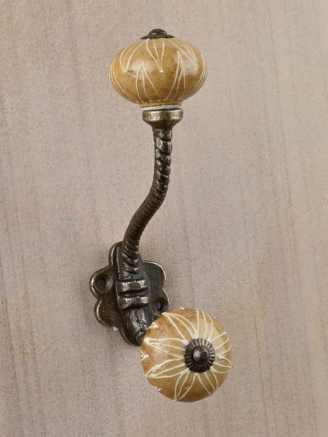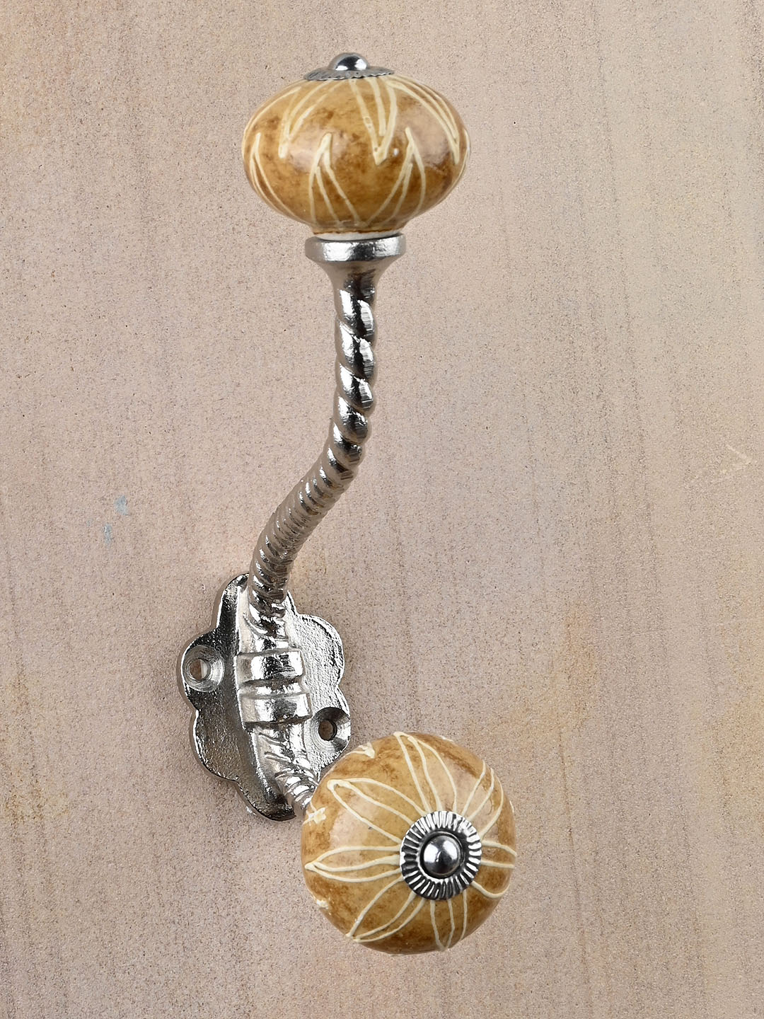 Elegant Brown Embossed Print Knob With Metal Wall Hanger