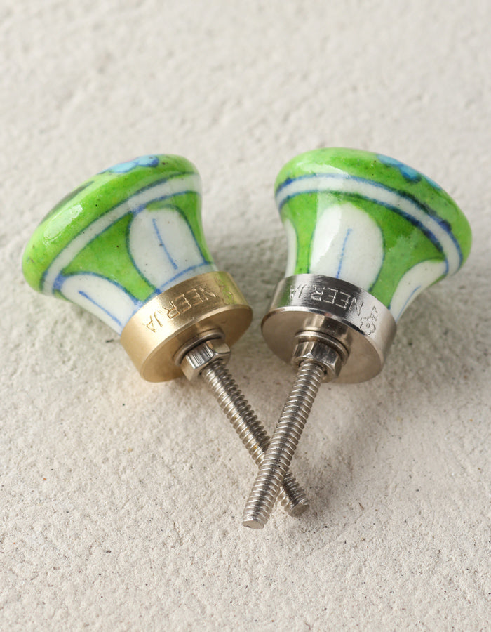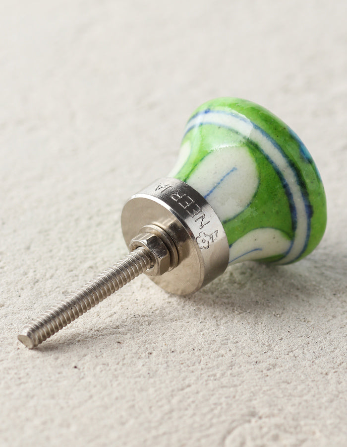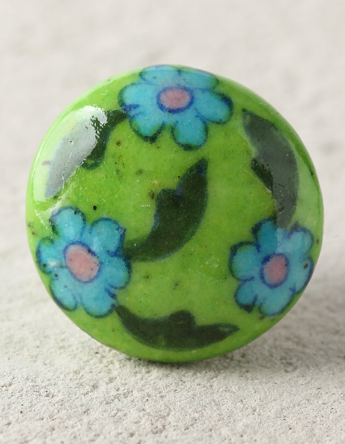 Elegant Green Ceramic Blue Pottery Door Knob With Turquoise Flower