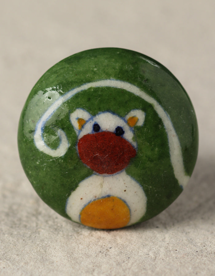 Elegant Green Ceramic Blue Pottery Knob With Handmade Monkey Design