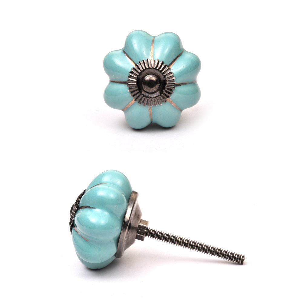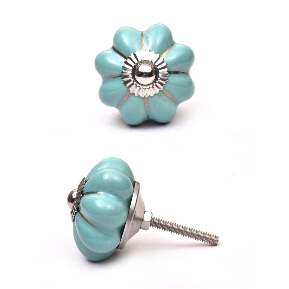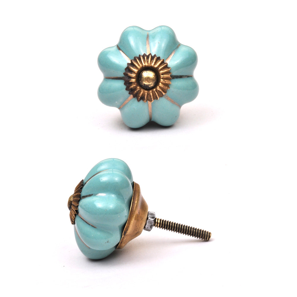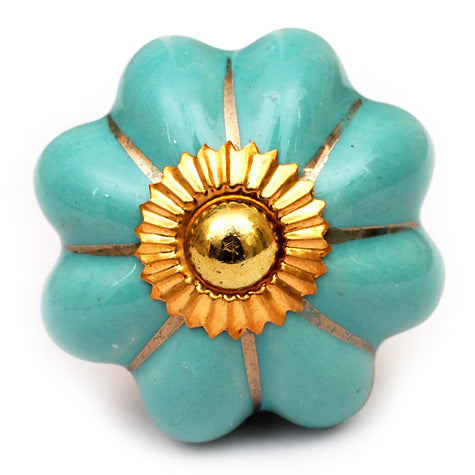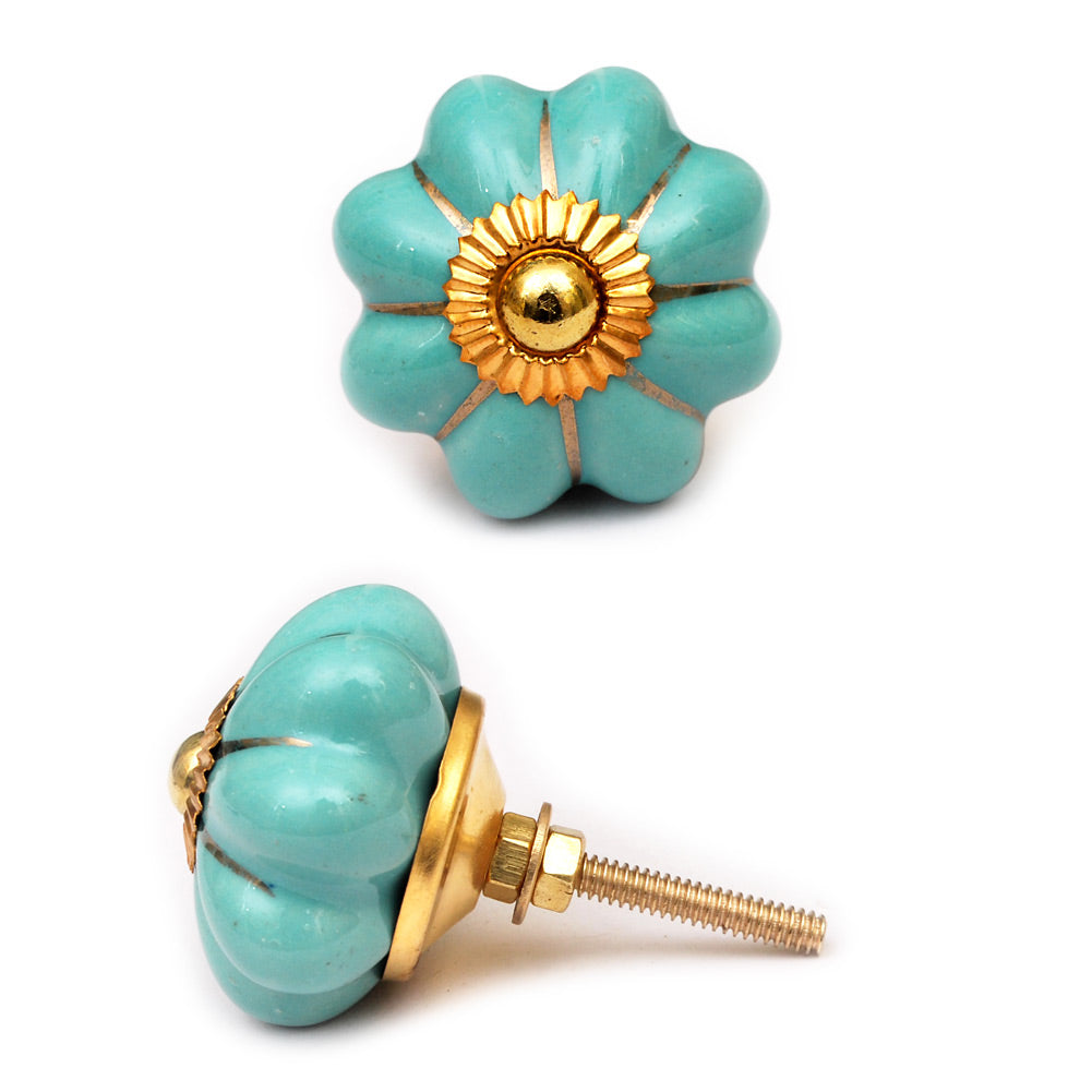 Elegant Teal Kitchen Cabinet Knob With Golden Design