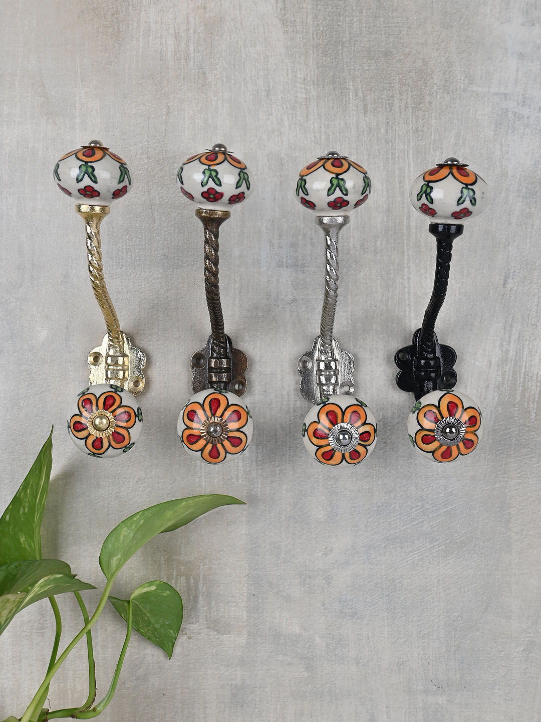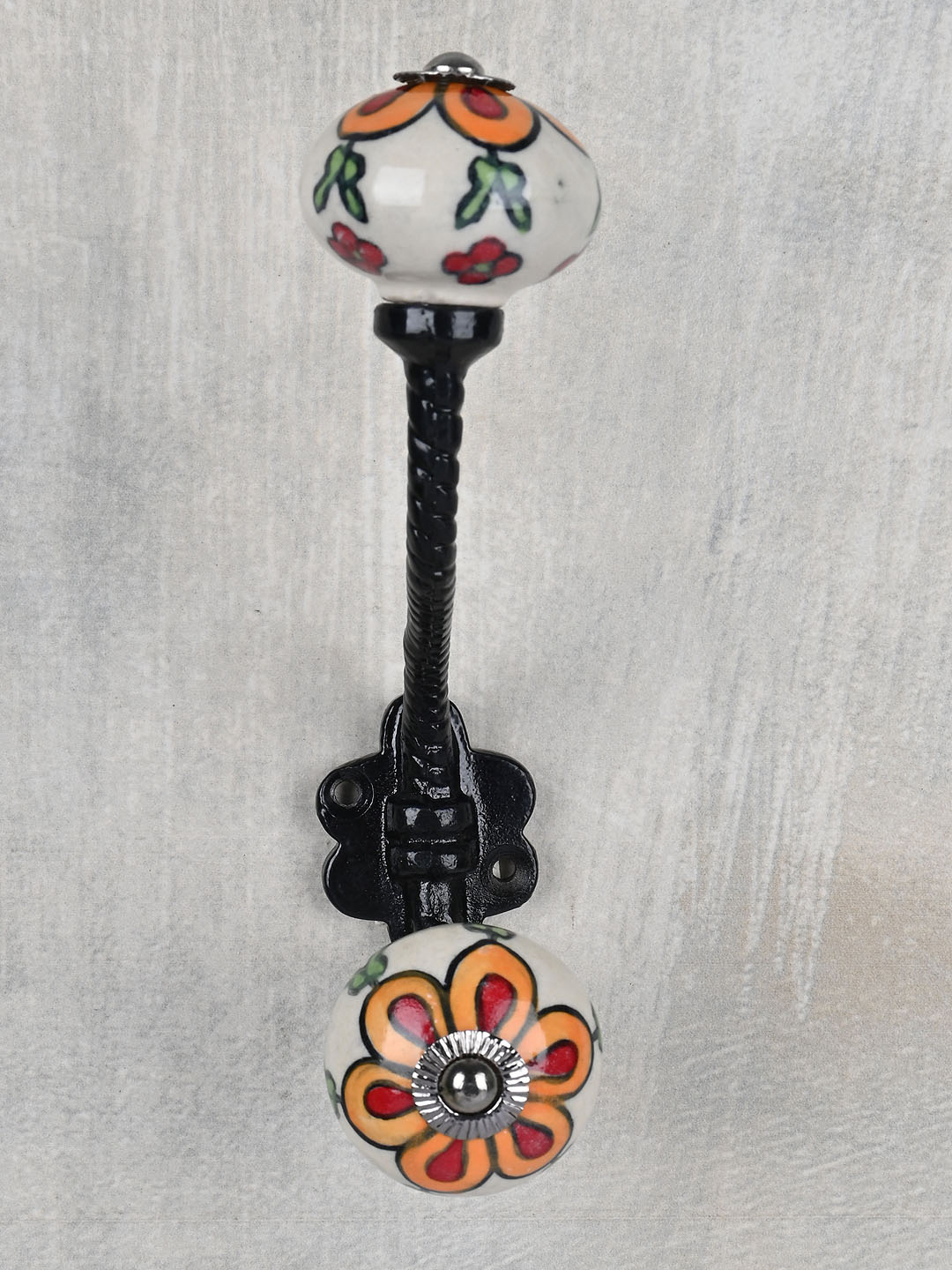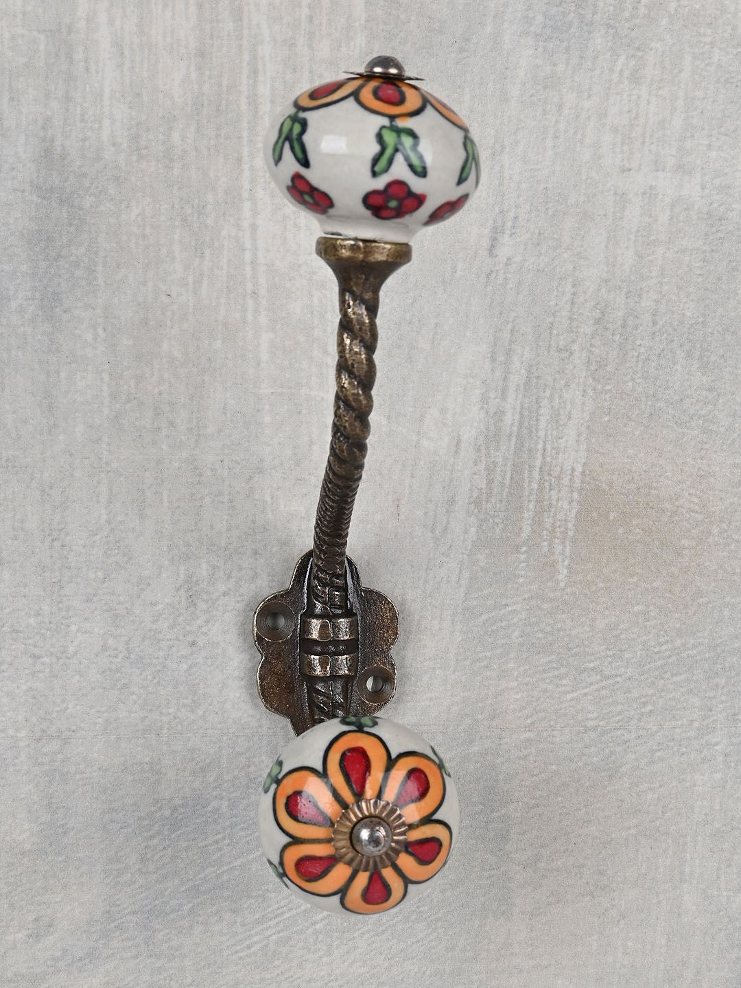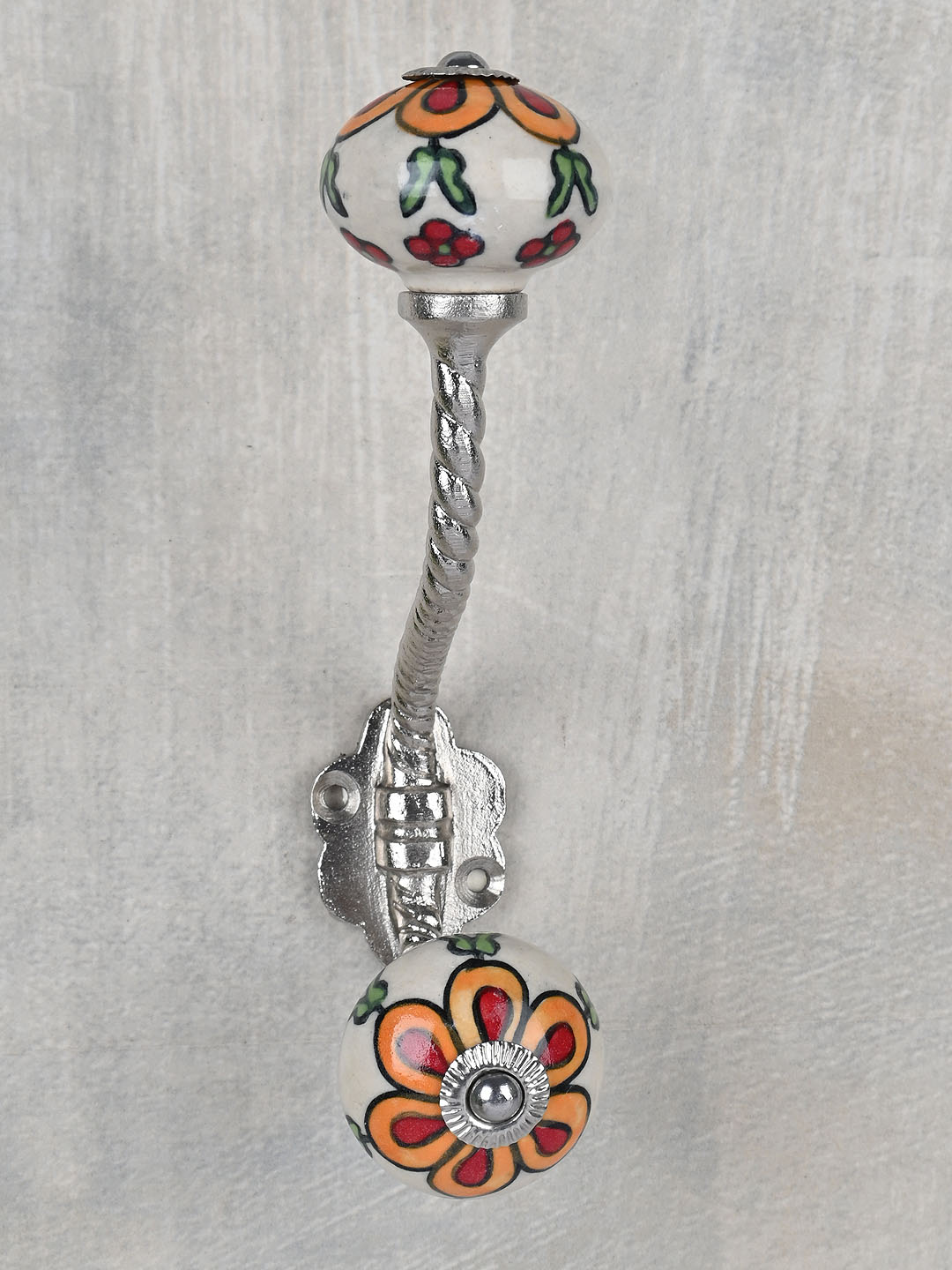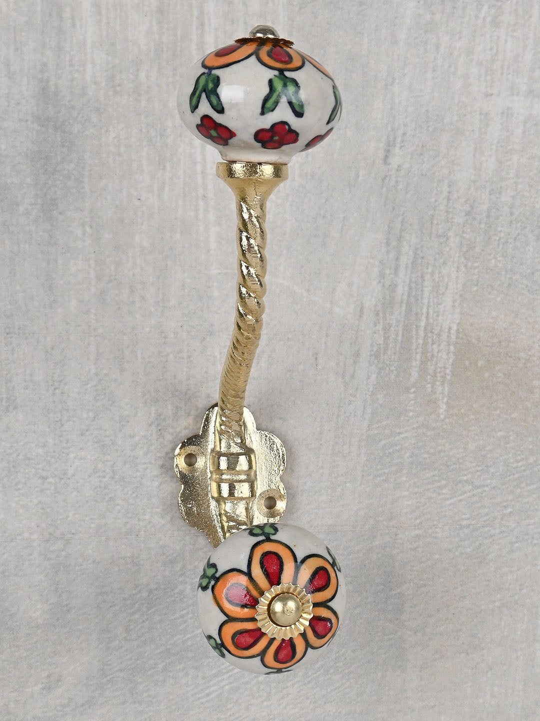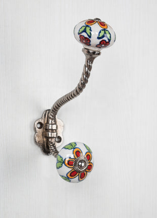 Elegant White Base Ceramic Knob Multicolor Print With Metal Wall Hanger