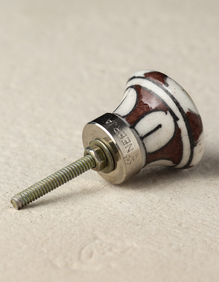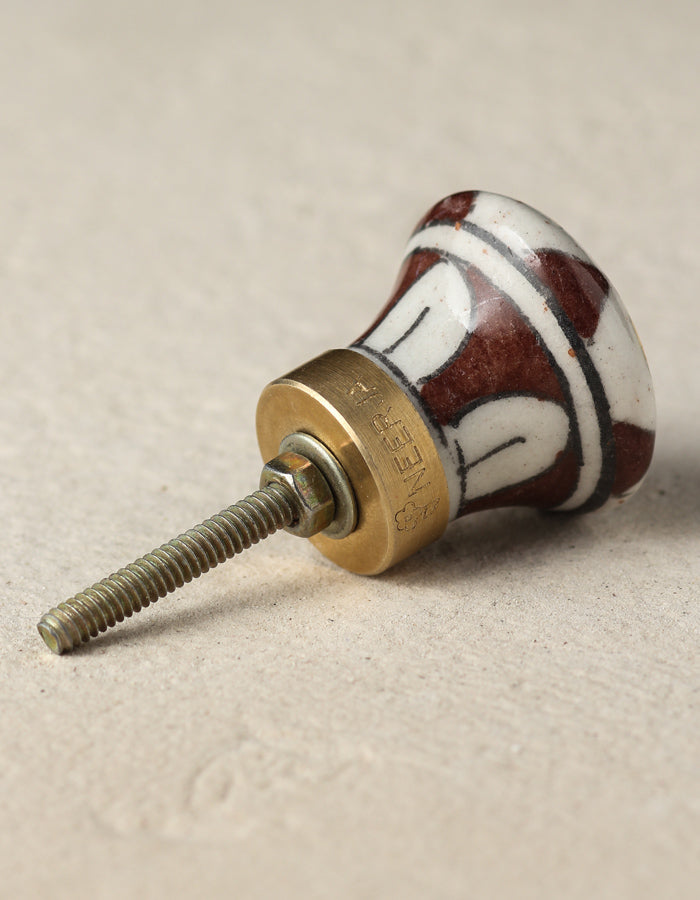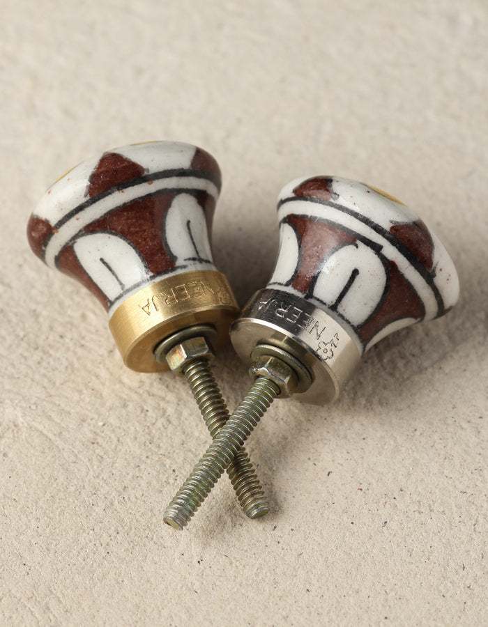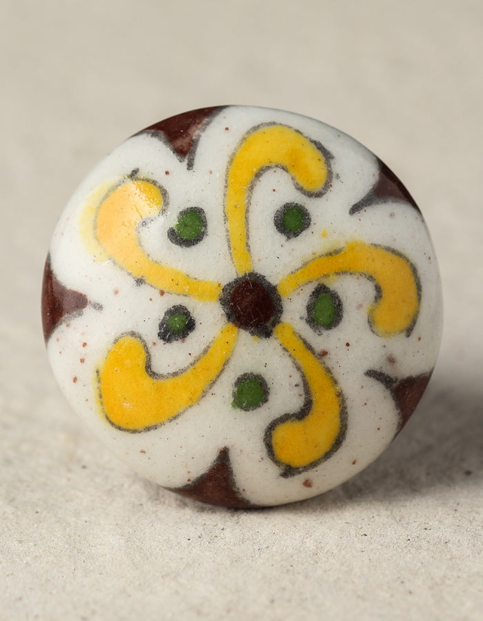 Elegant White Ceramic Drawer Knob With Yellow And Brown Design