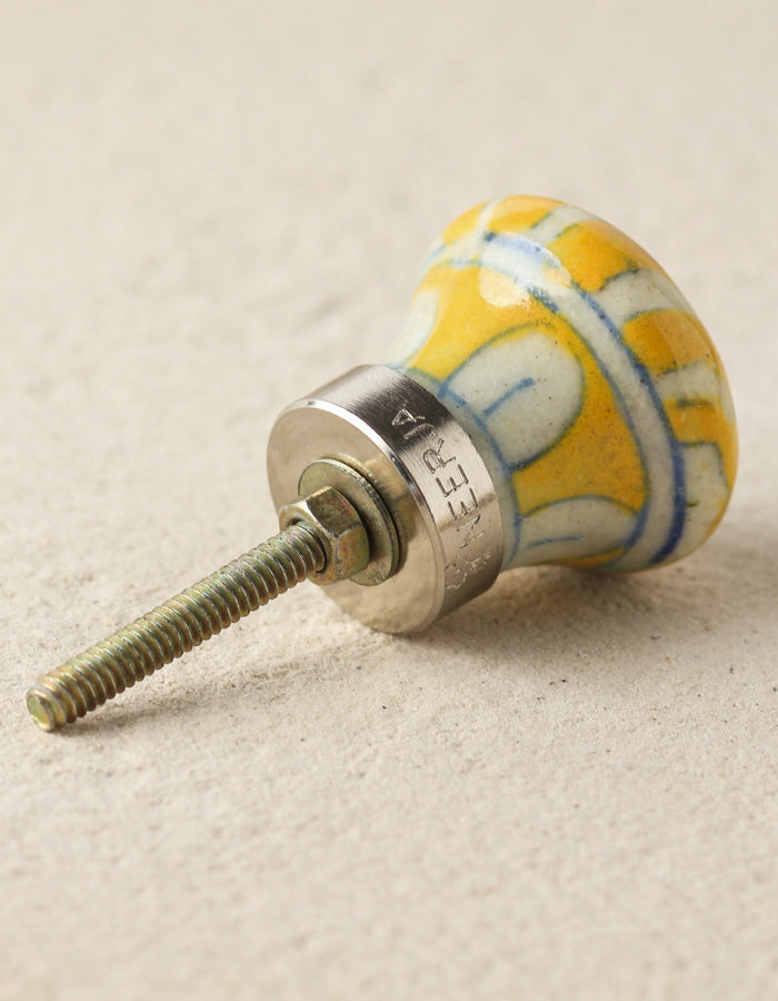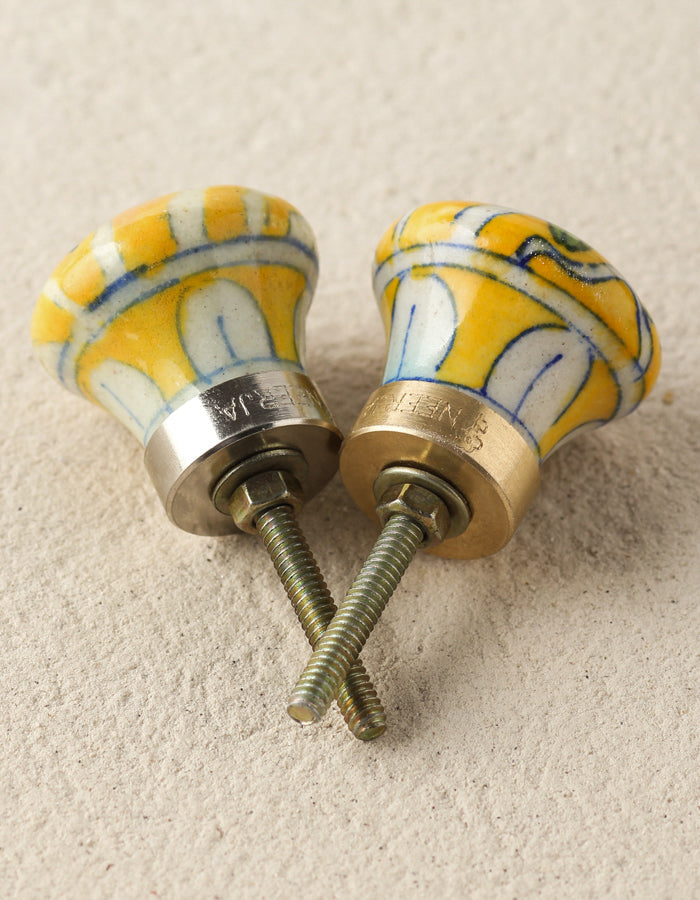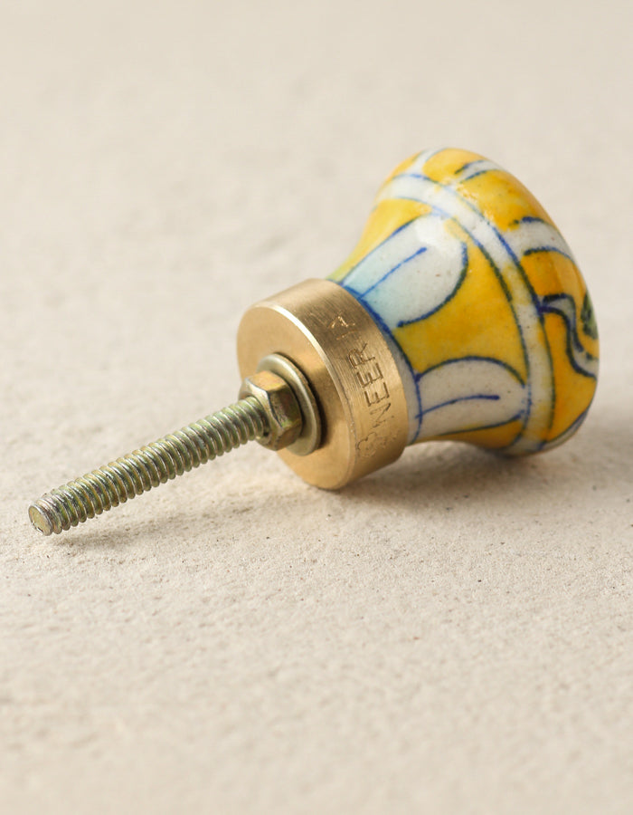 Elegant Yellow Ceramic Blue Pottery Door Knob With Green Petals