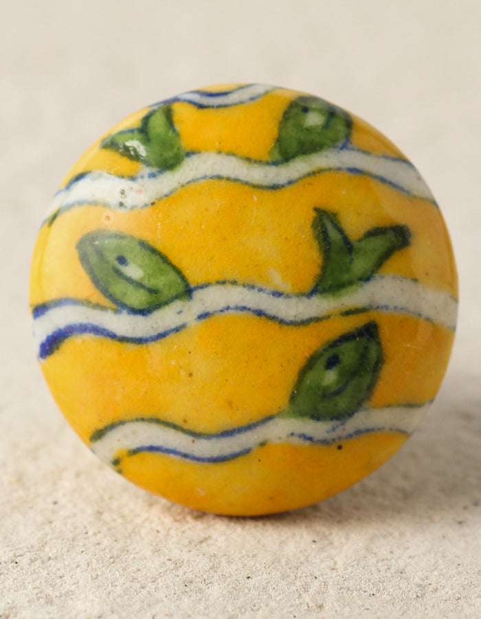 Elegant Yellow Ceramic Blue Pottery Door Knob With Green Petals is purely handmade and the one to choose for that soothing, rich and elegant look. It is a beautifully hand painted knob that levels up the entire look of your room instantly.
