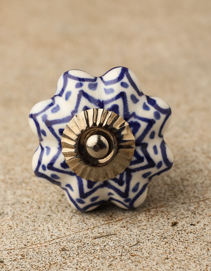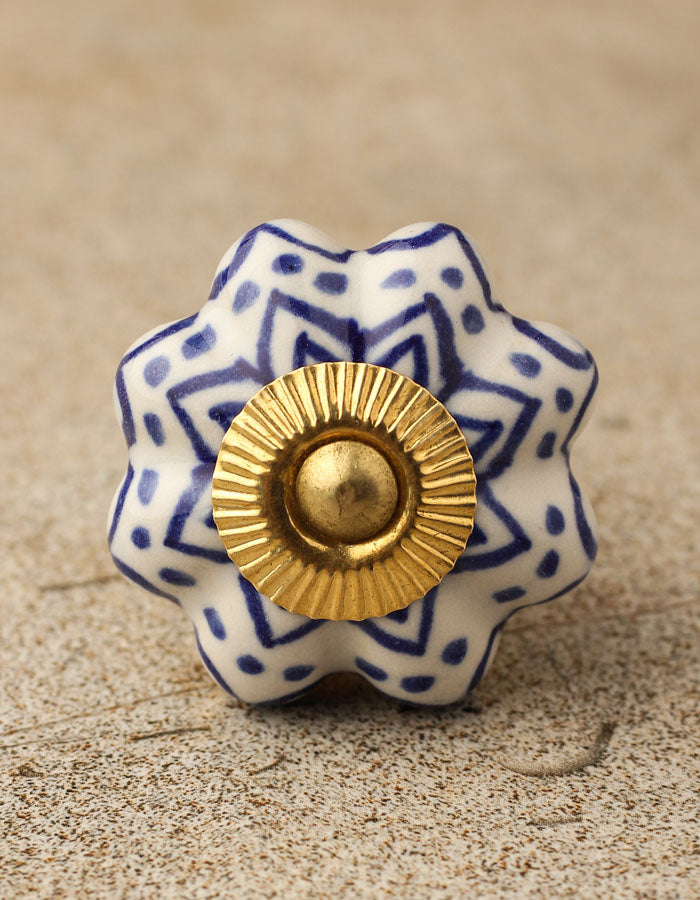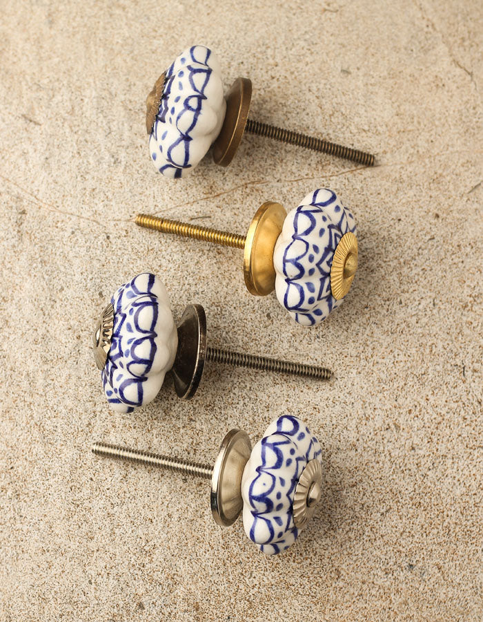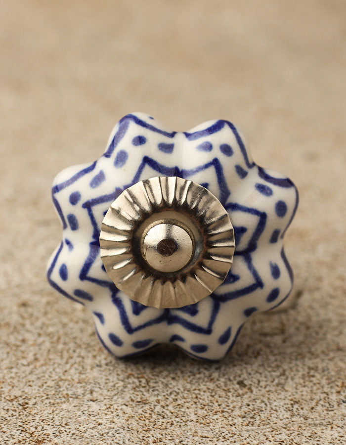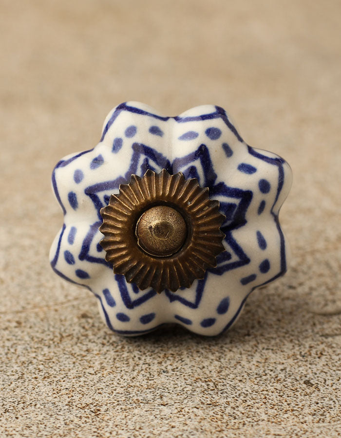 Floral White Royal Ceramic Door Knob With Blue Print