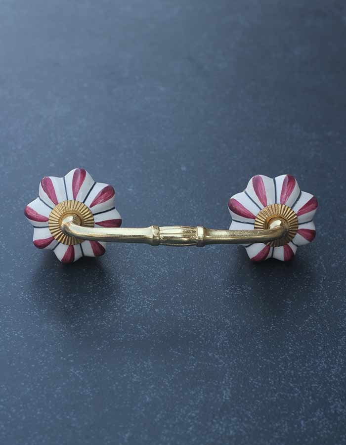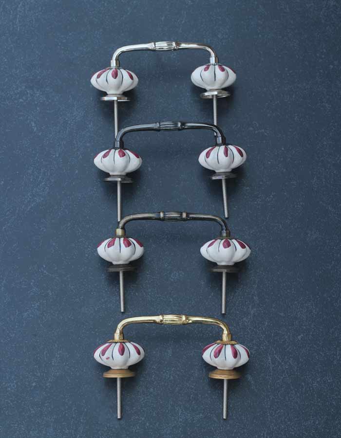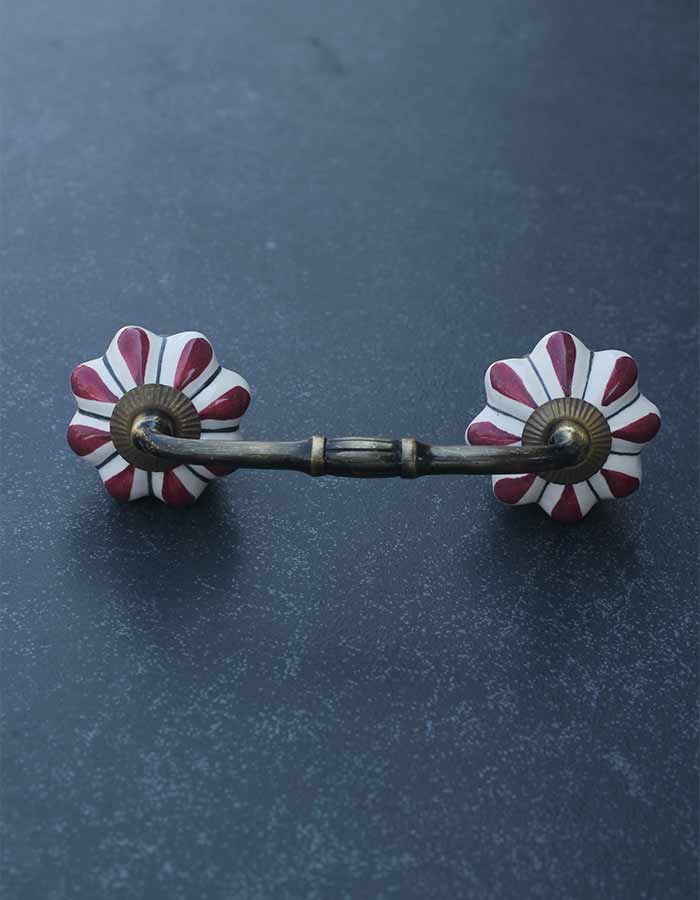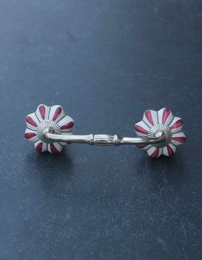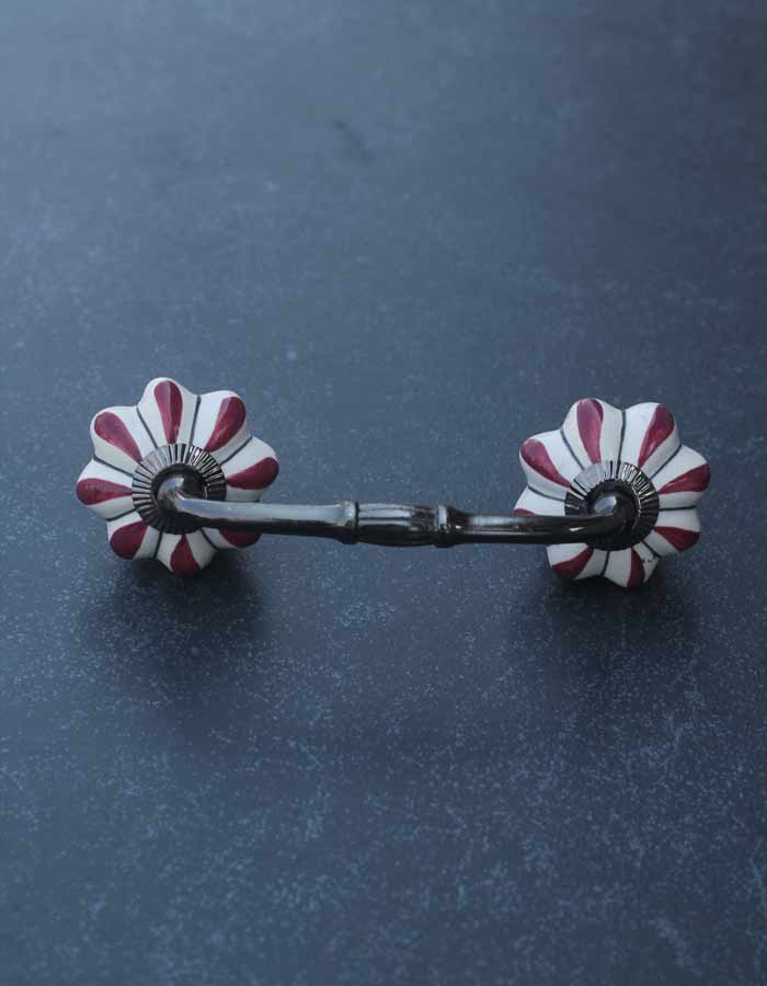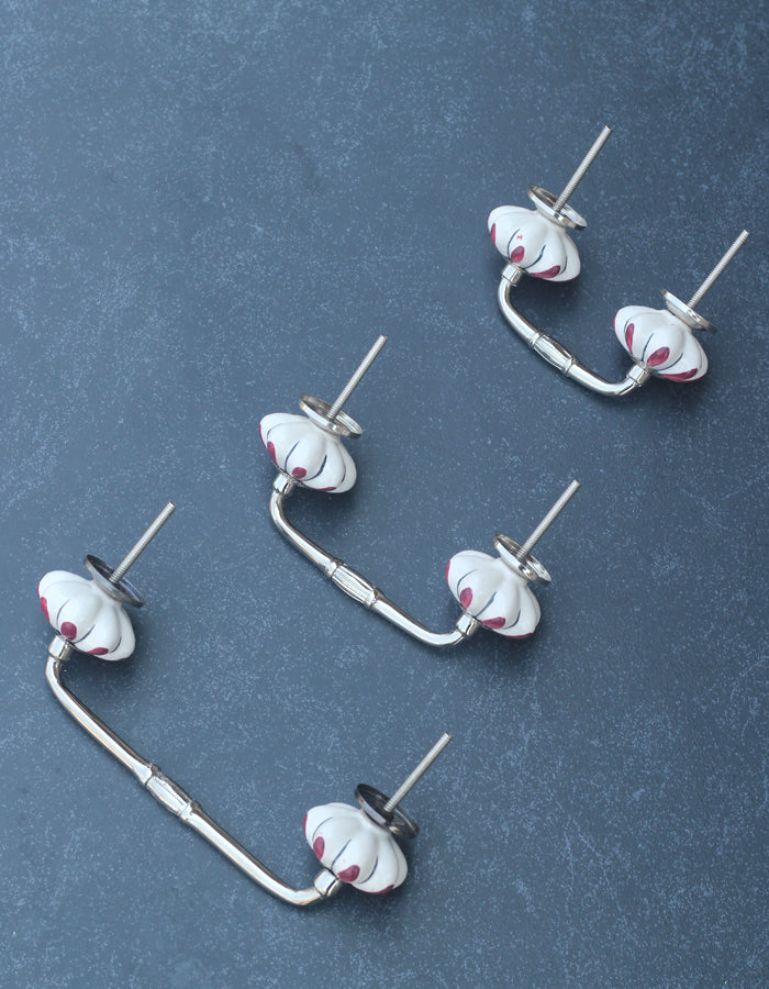 Floral White Royal Ceramic Door Pull With Maroon Flower