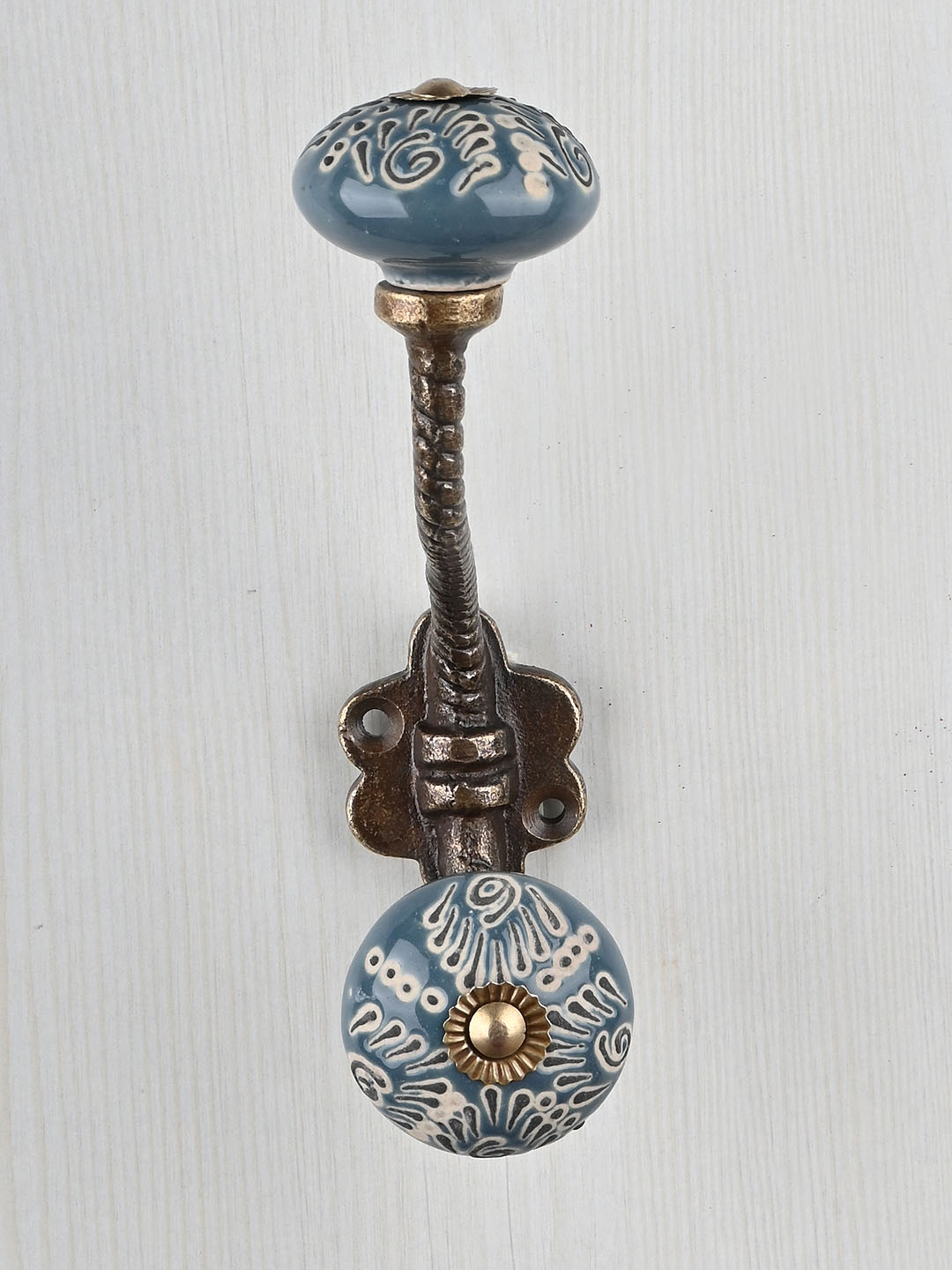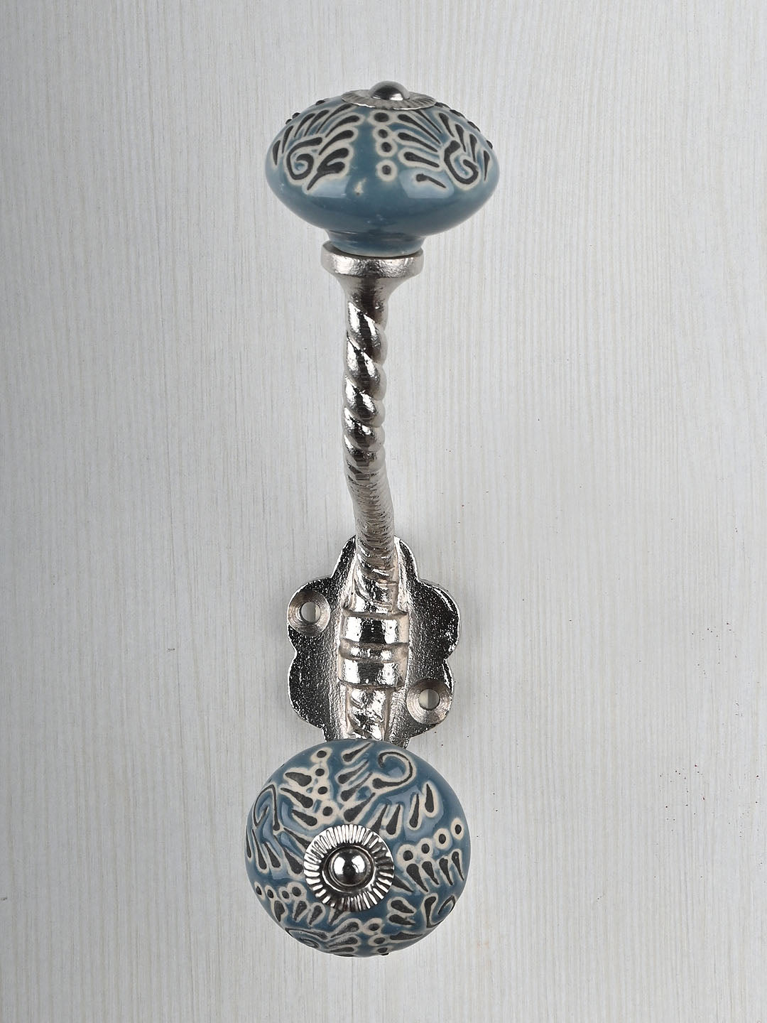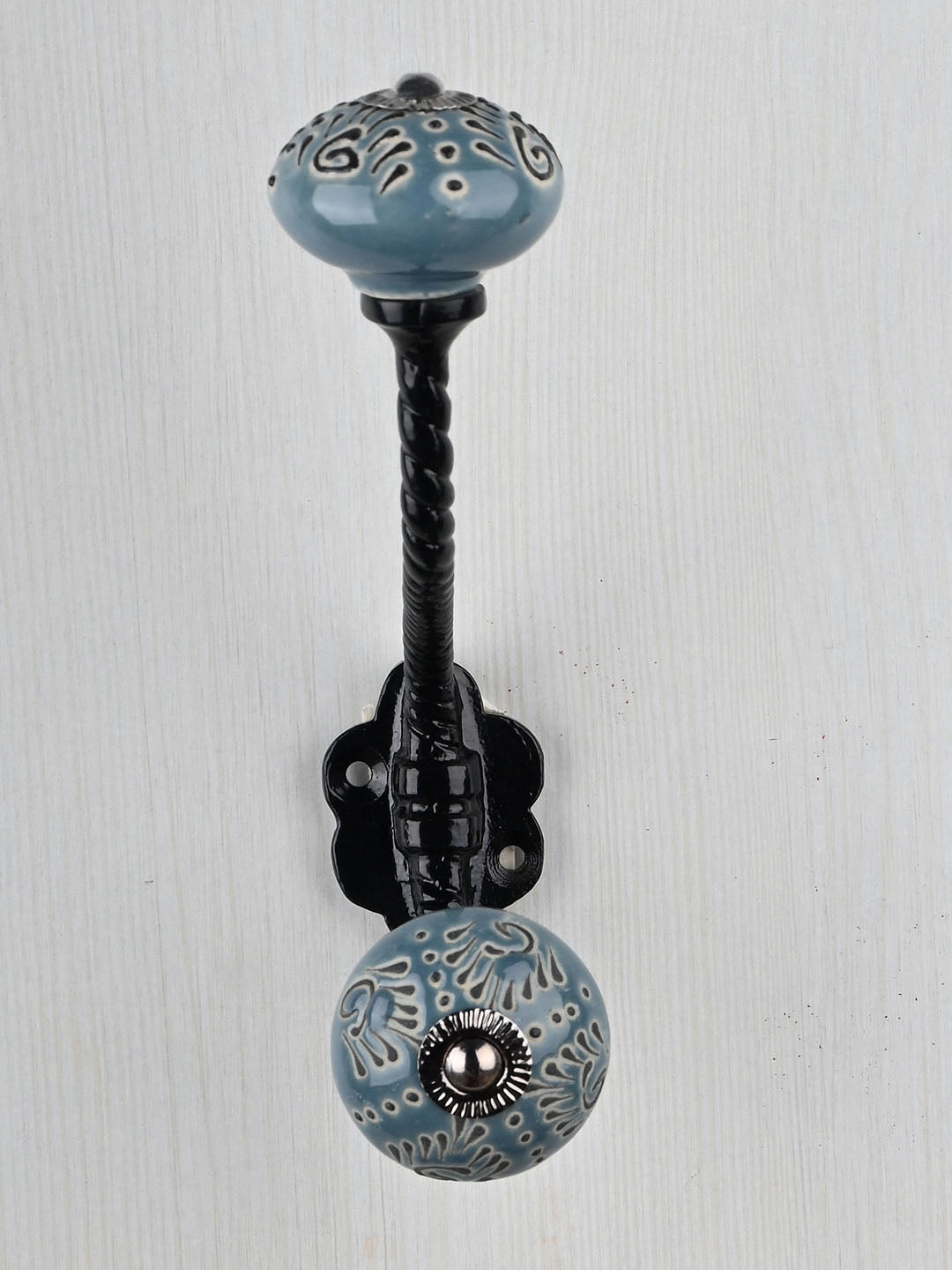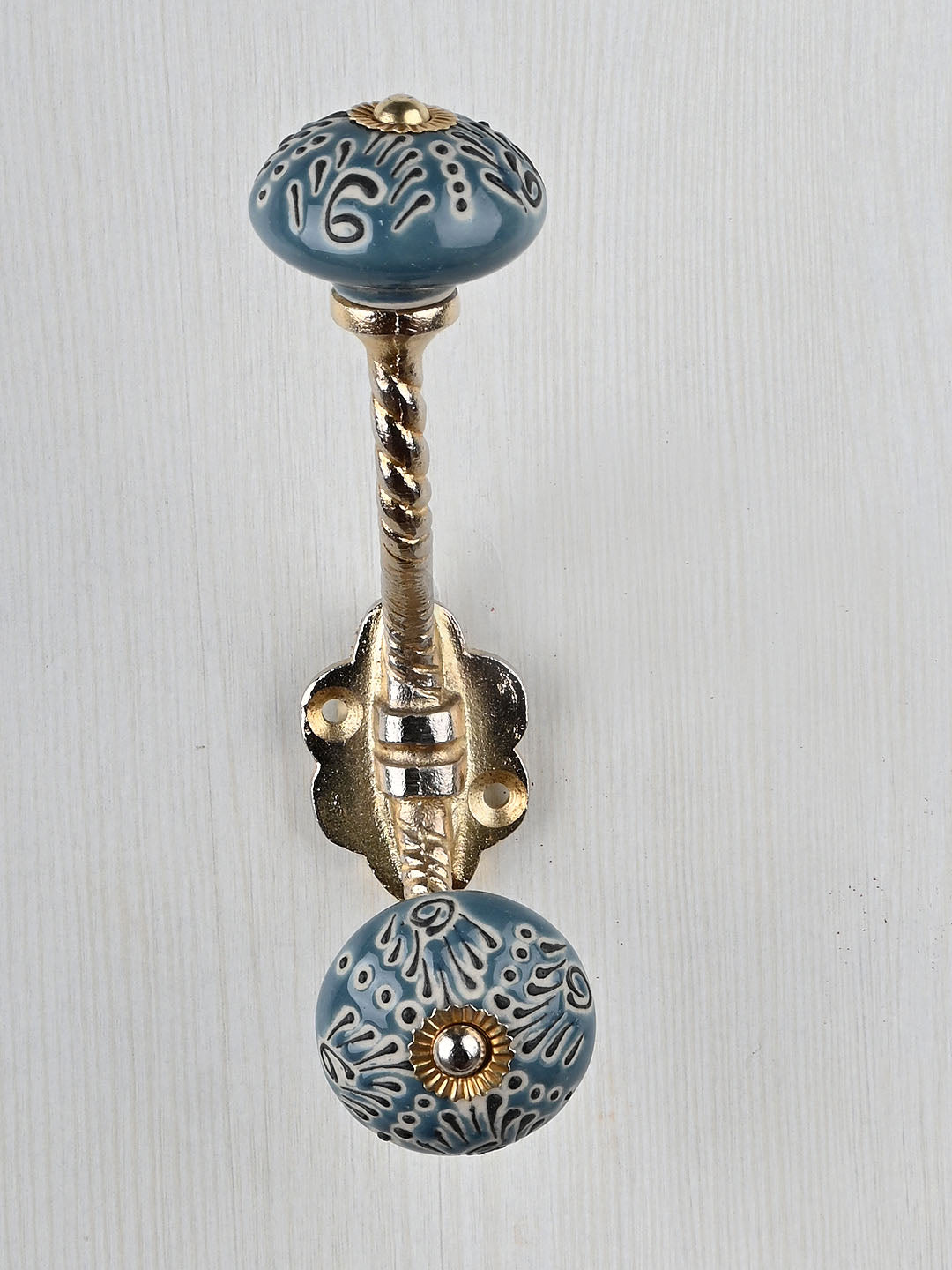 Flower Design on Teal Color Base Knob With Metal Wall Hanger