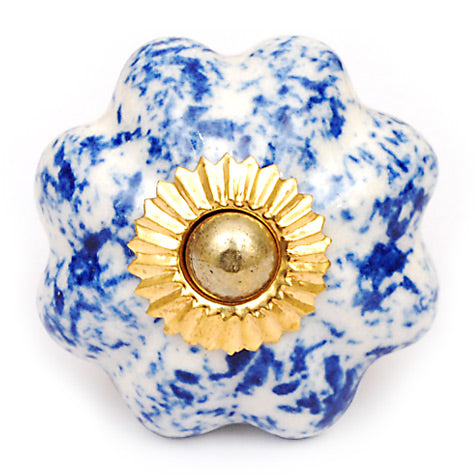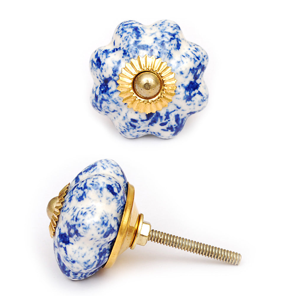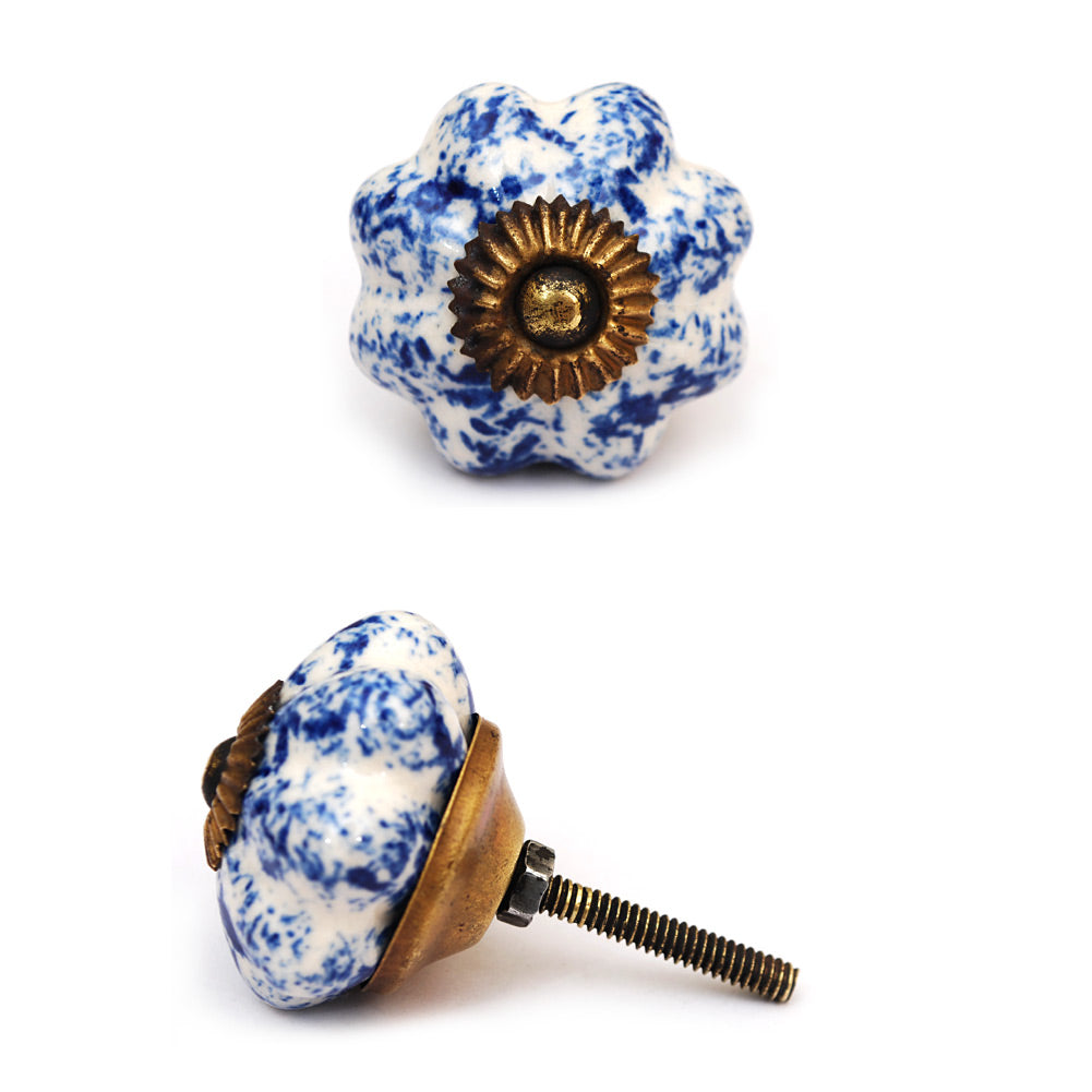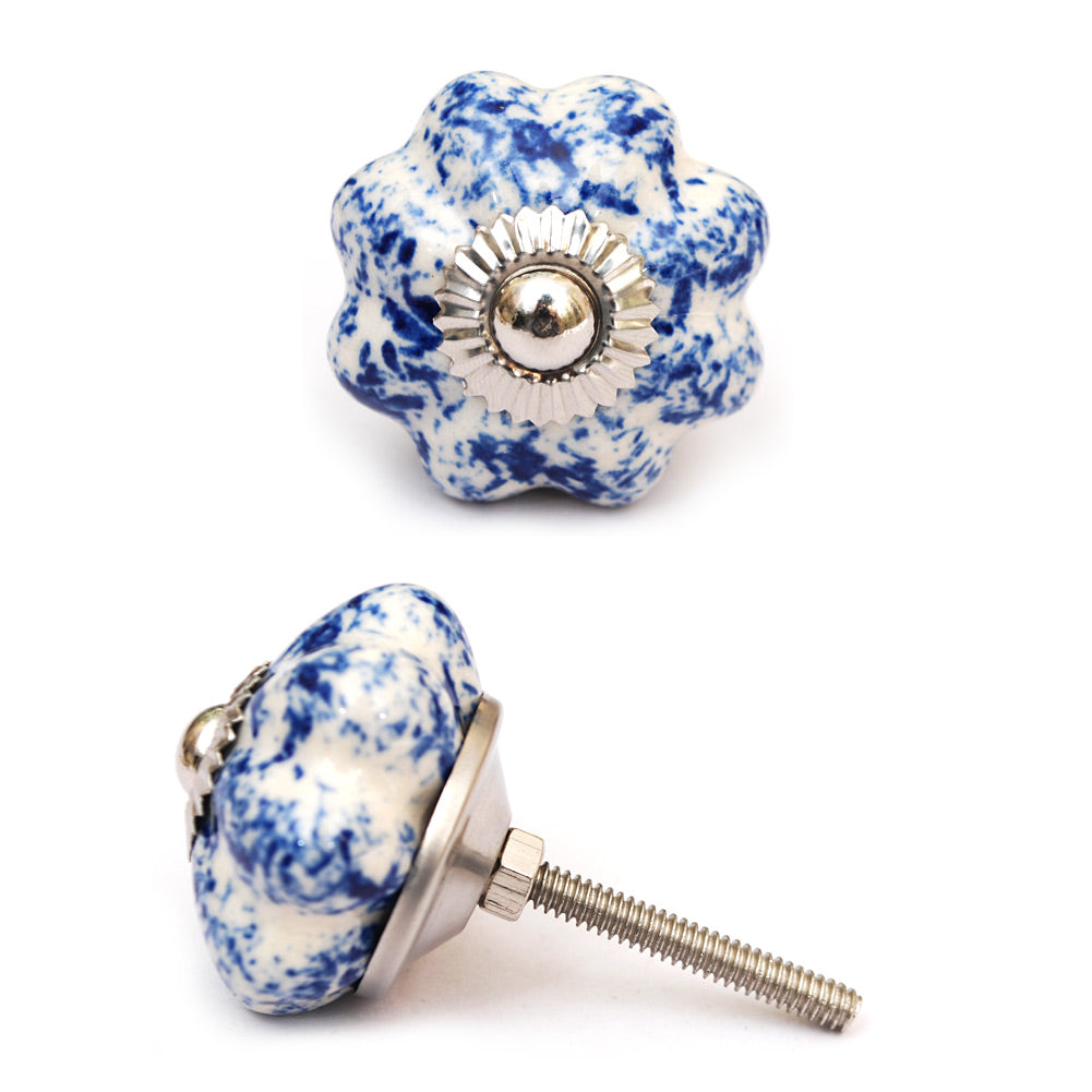 Flower Shaped Blue And White Textured Handmade Cabinet Knob