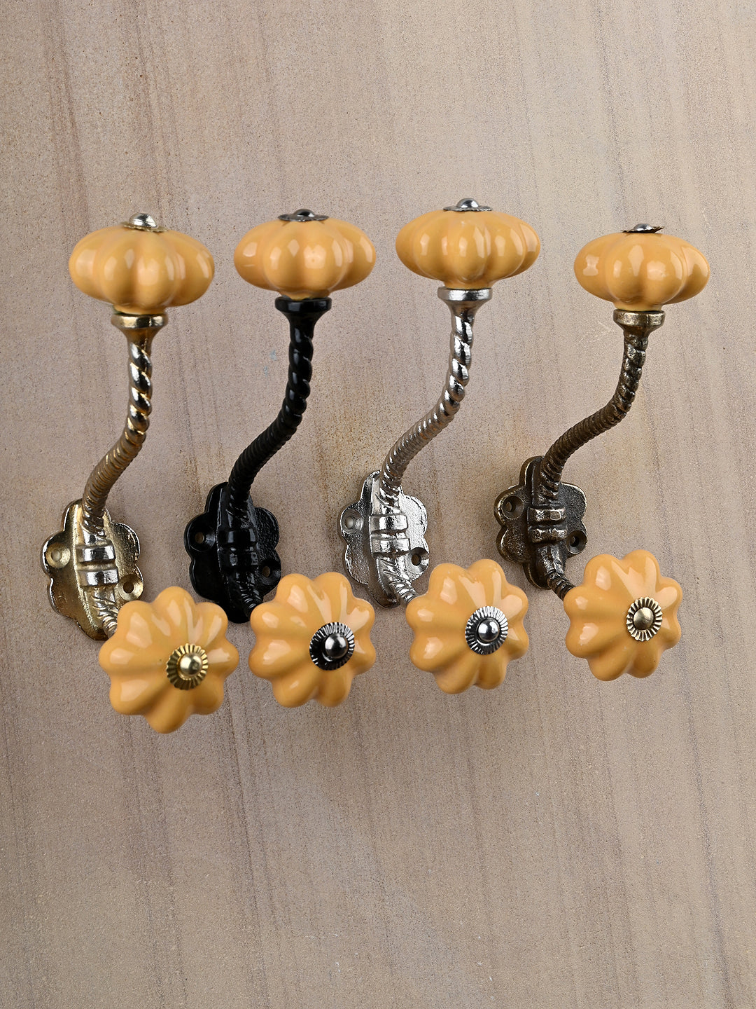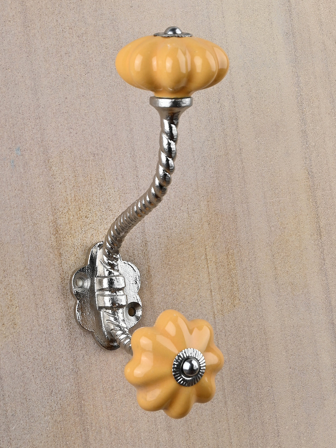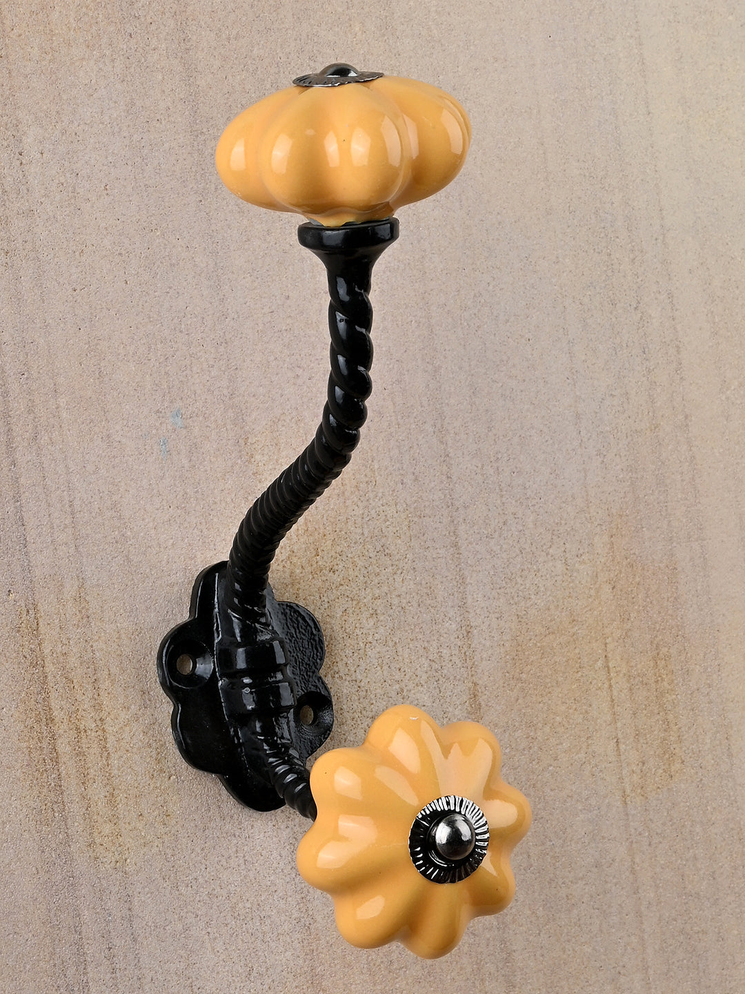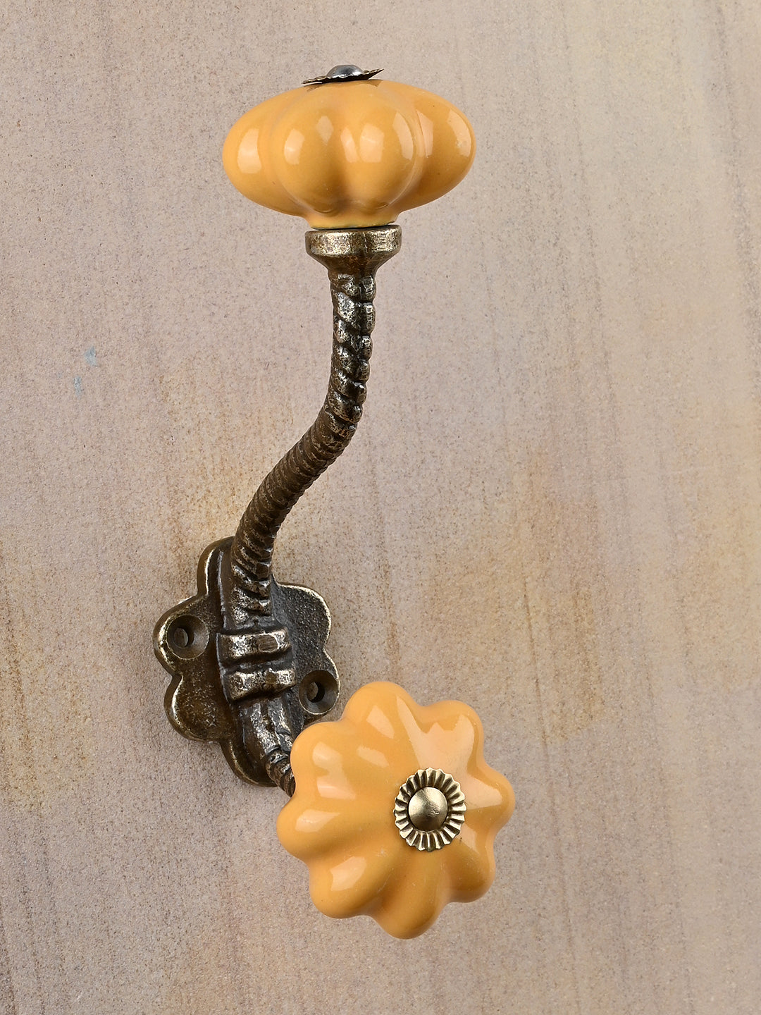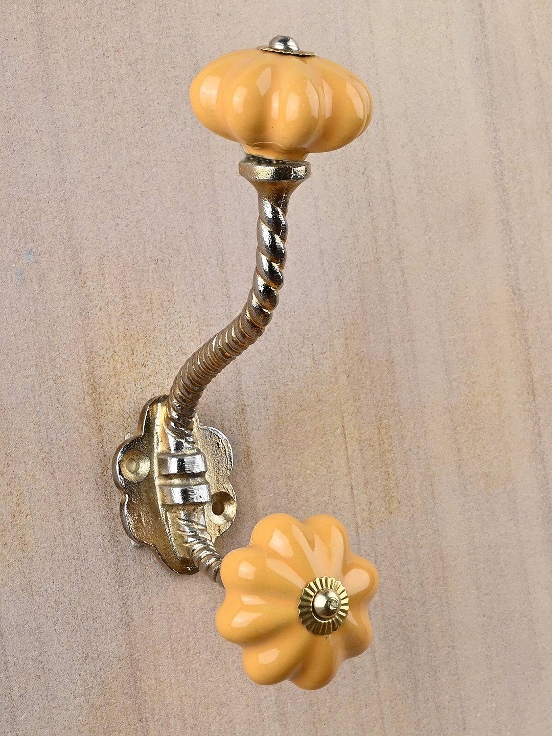 Flower Shaped Solid Mustard Knob With Metal Wall Hanger