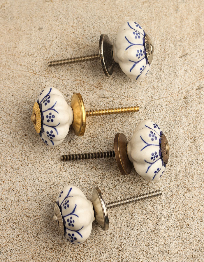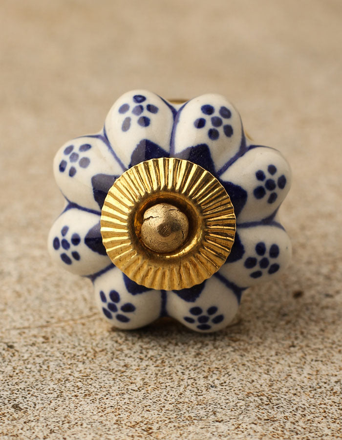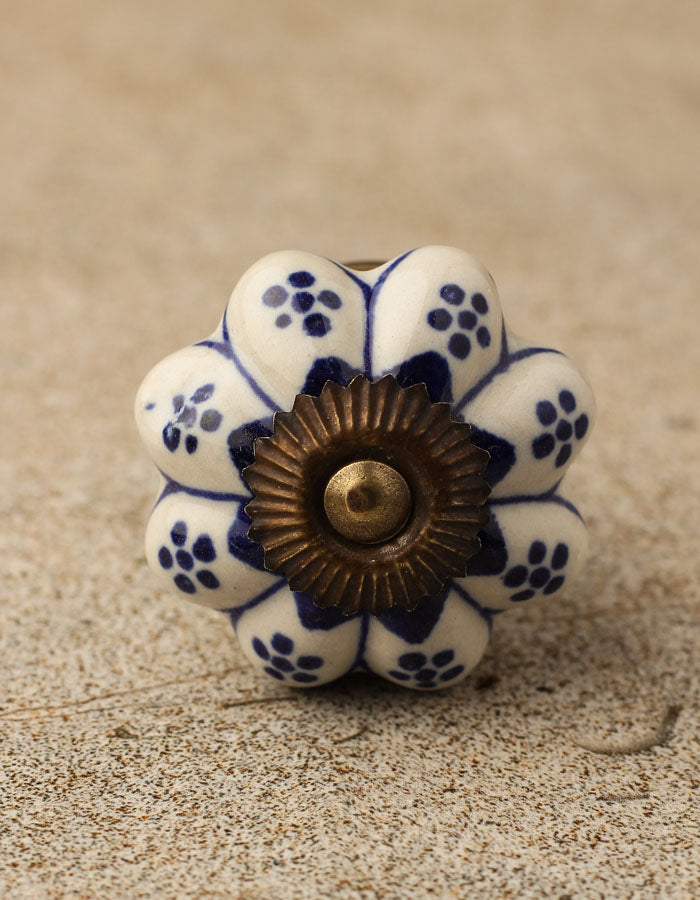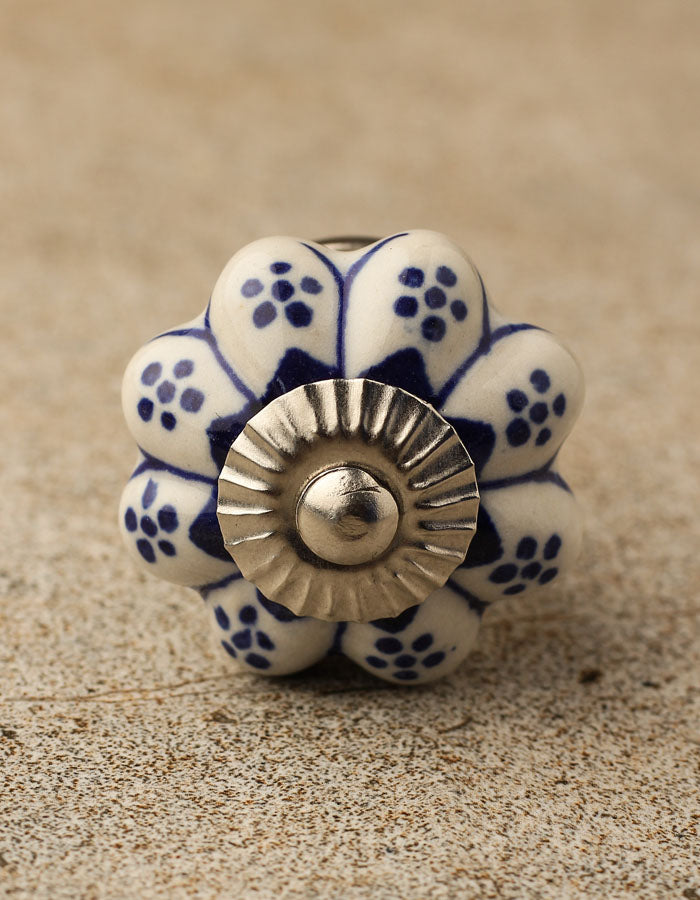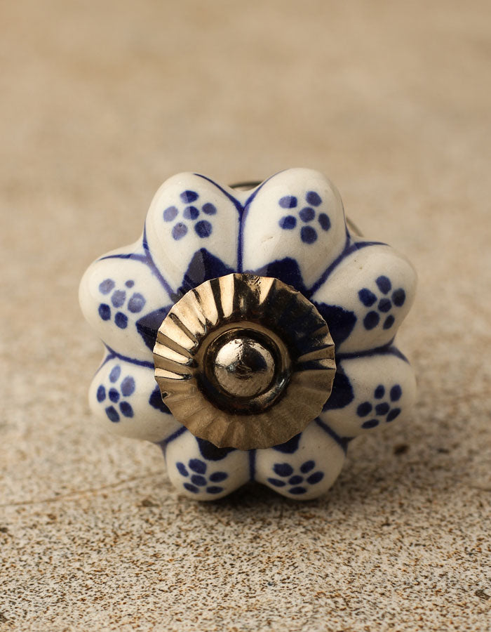 Flower Shaped White And Blue Designer Ceramic Cabinet Knob