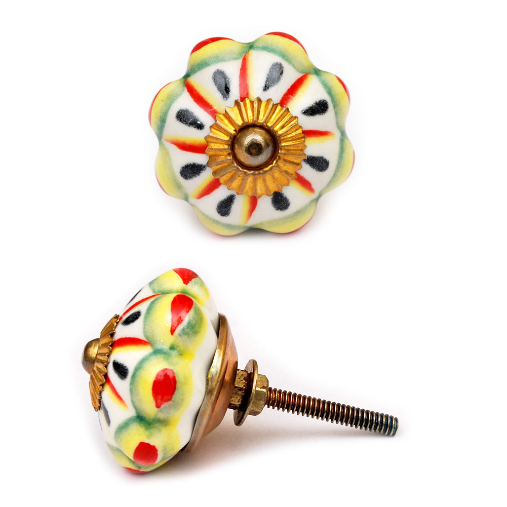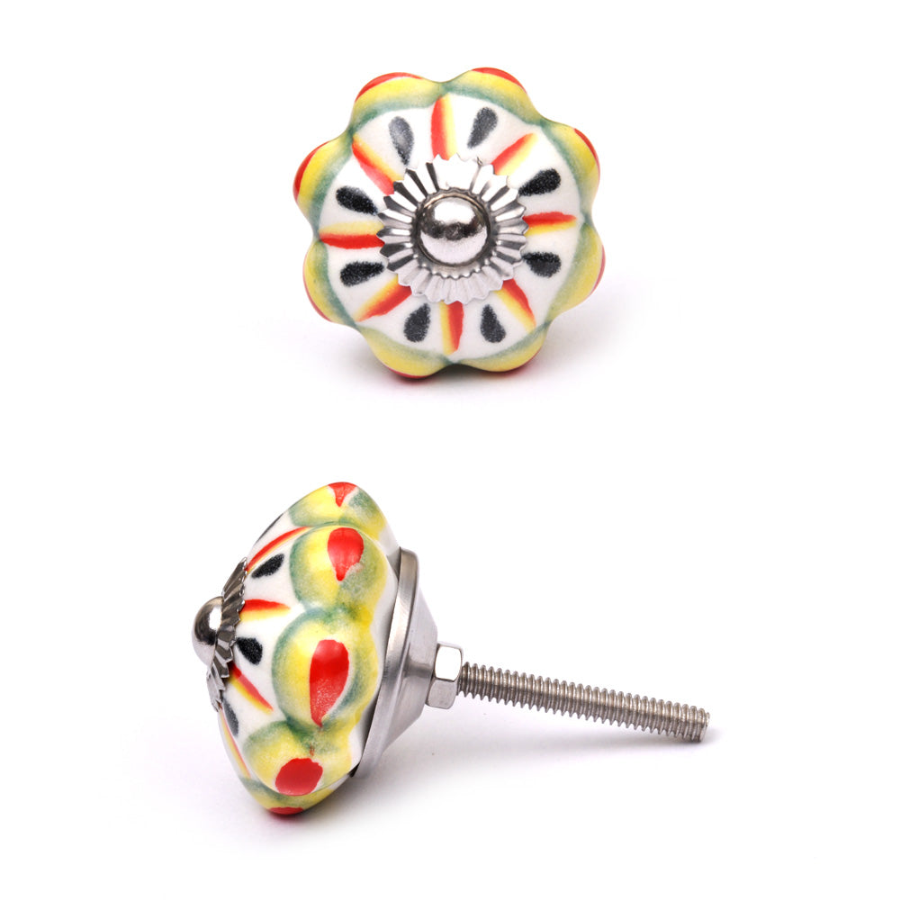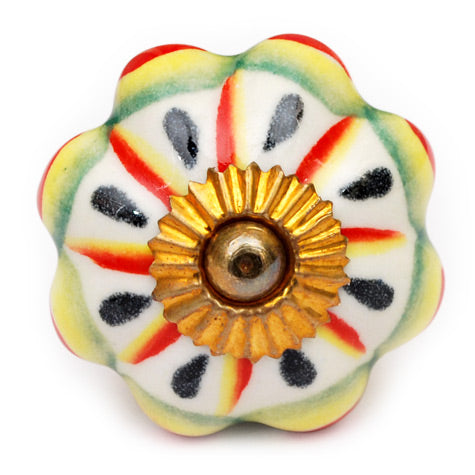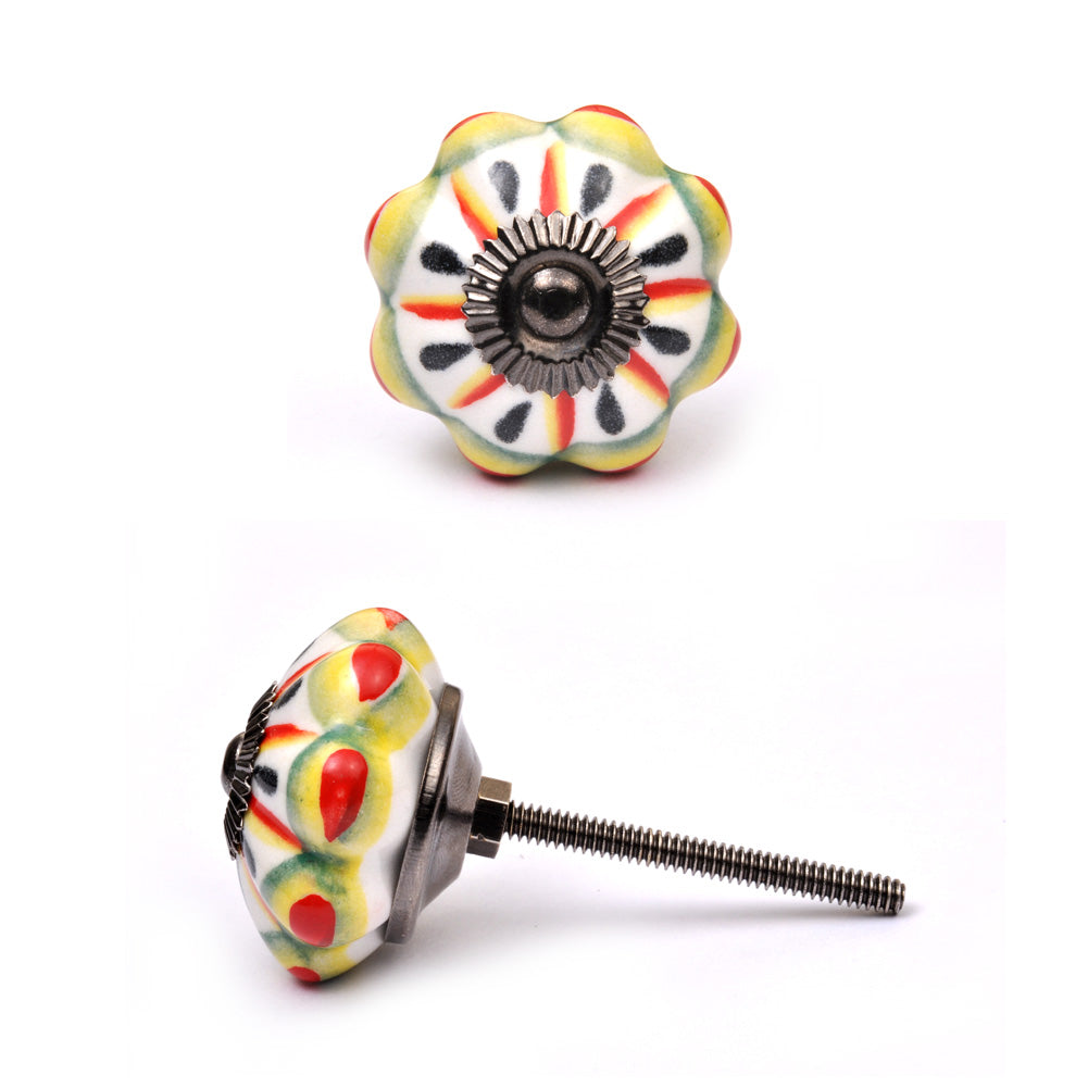 Flower Shaped White Ceramic Cabinet Knob With Multicolor Print