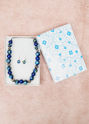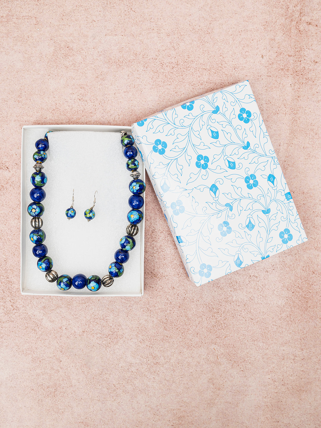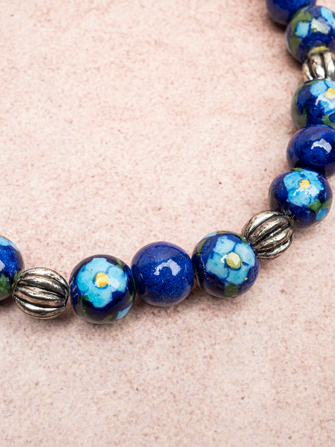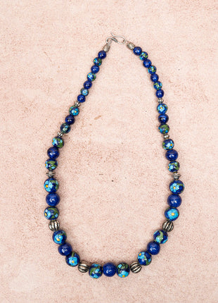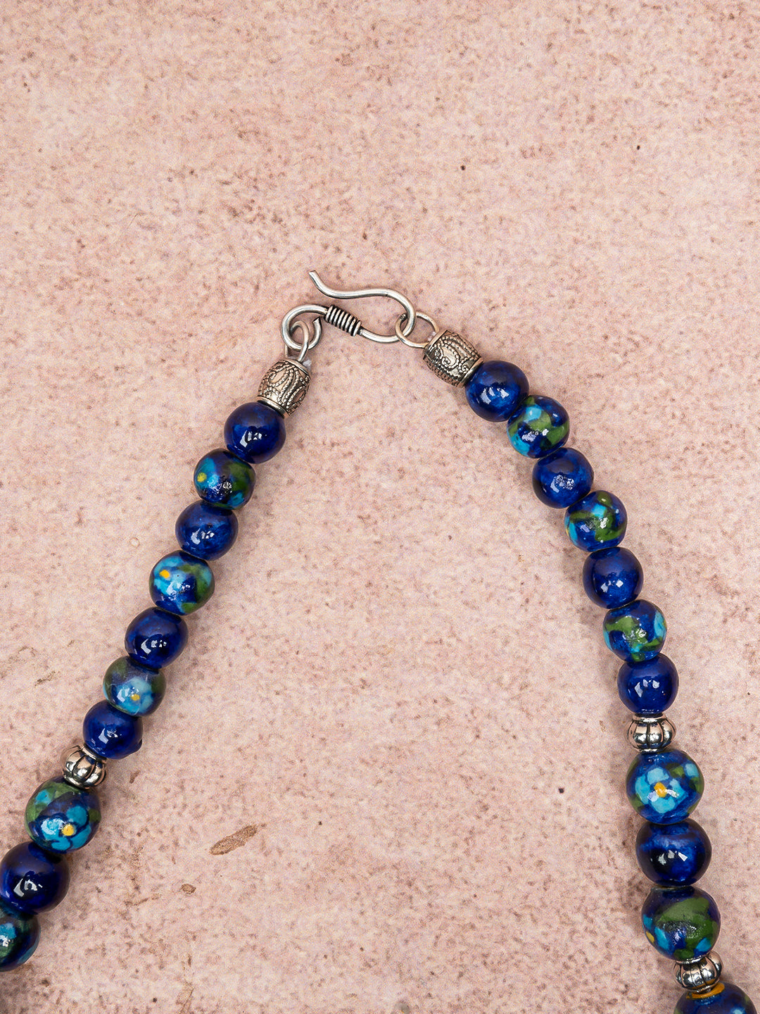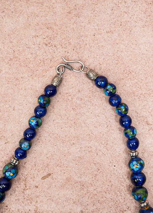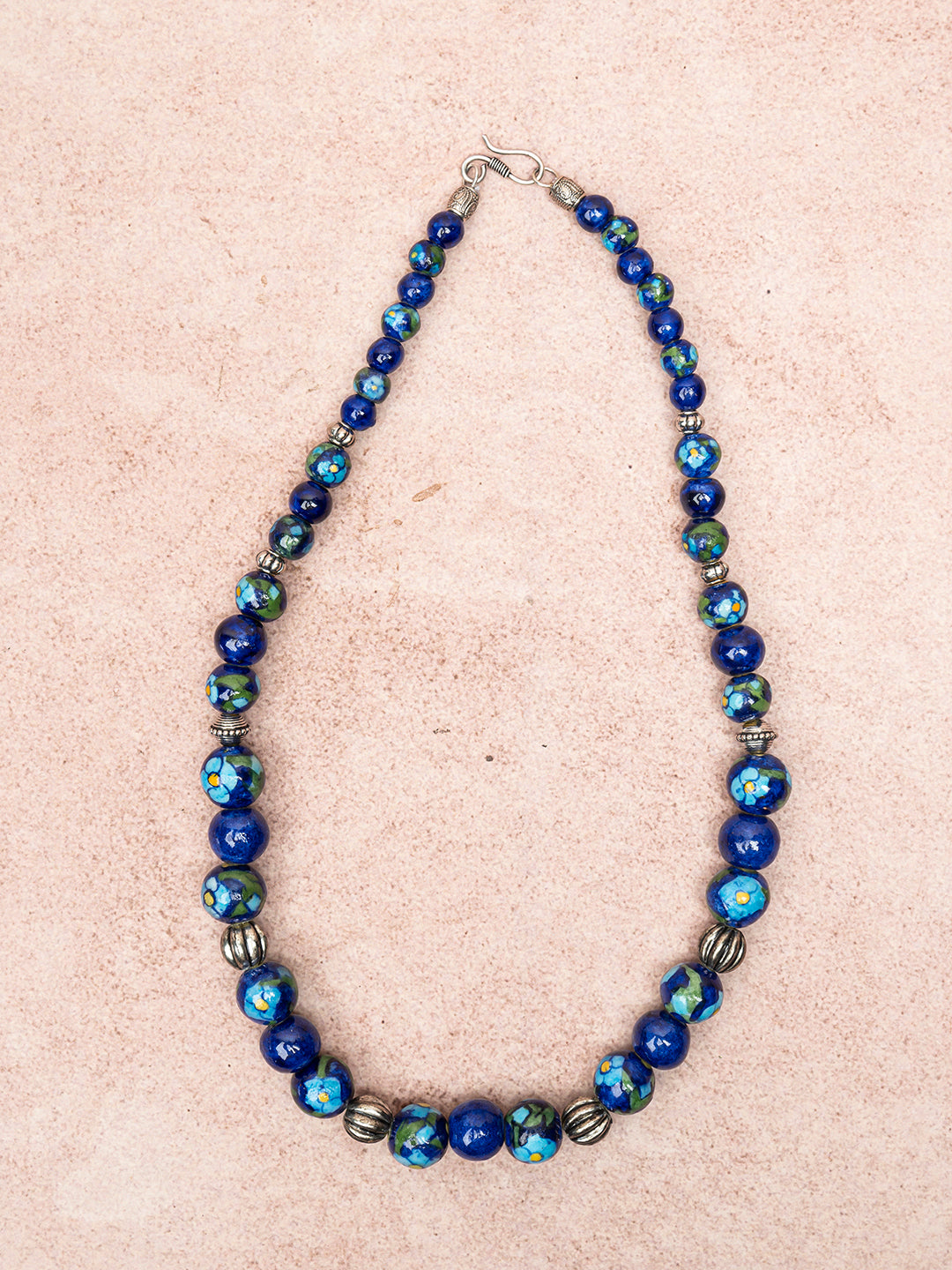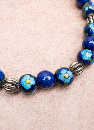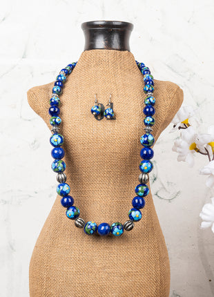 Full Blue Pottery Bead Long Necklace (Blue)