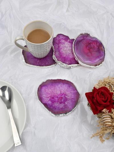 Gold Plated Agate Coaster, Choose Color, Silver Plated Agate Coaster Set of 4 Pieces, Tableware, Rock Coaster, Agate Slice, Glass Coasters