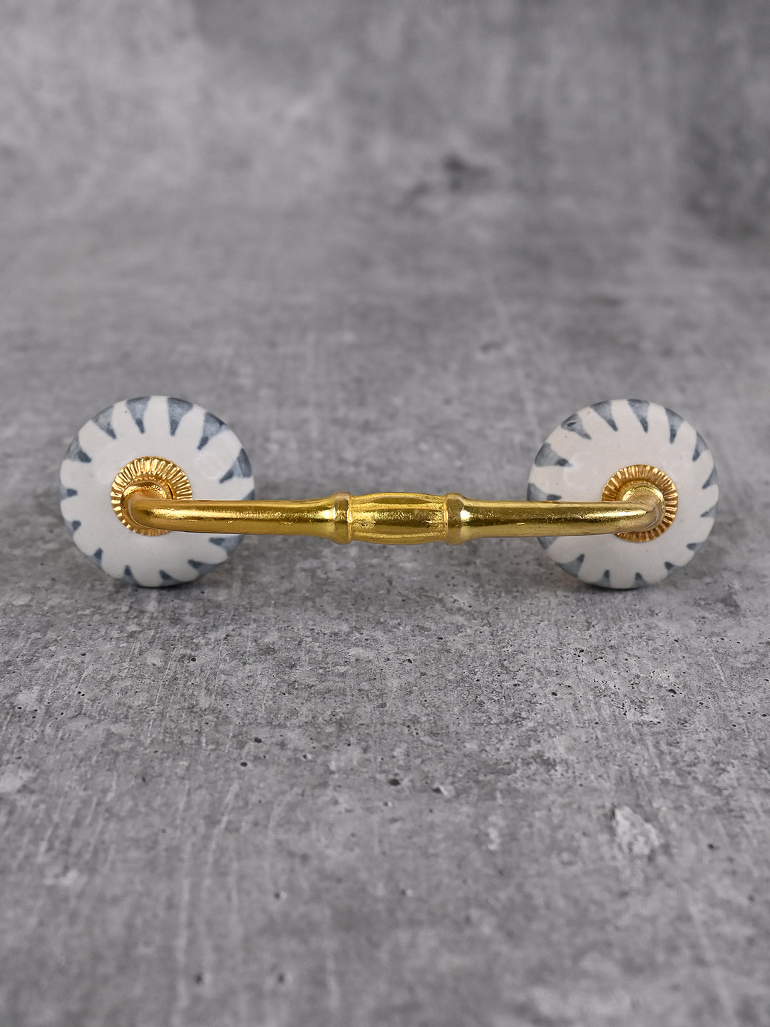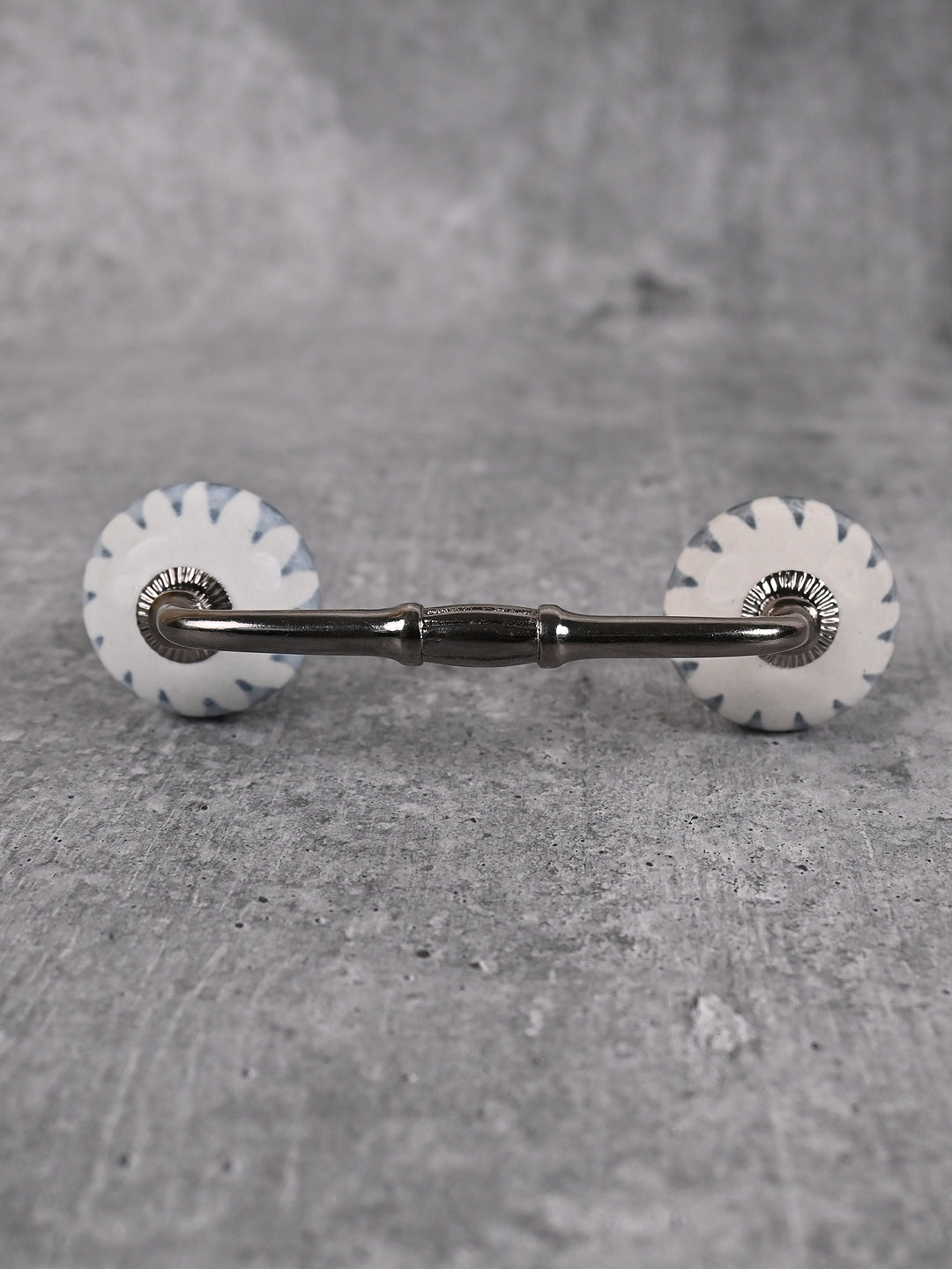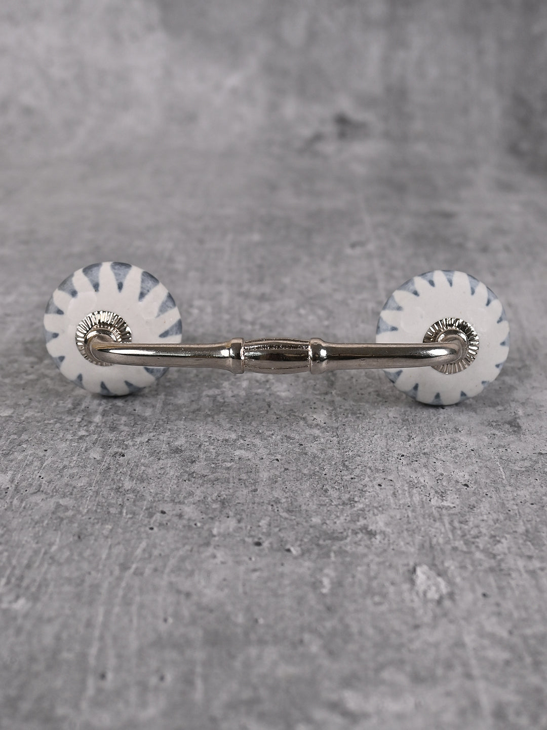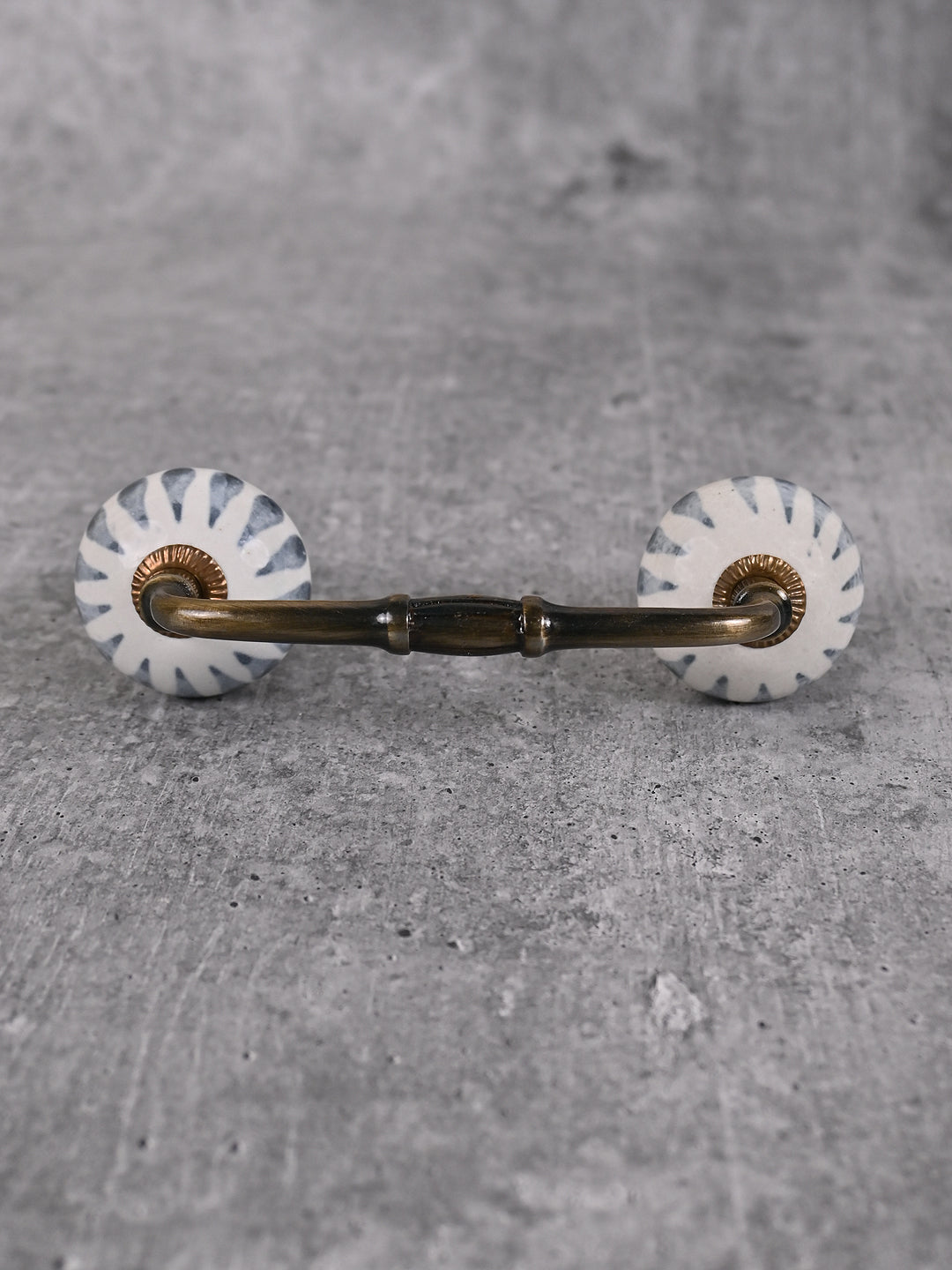 Gray Design on White Ceramic Cabinet Drawer Pull