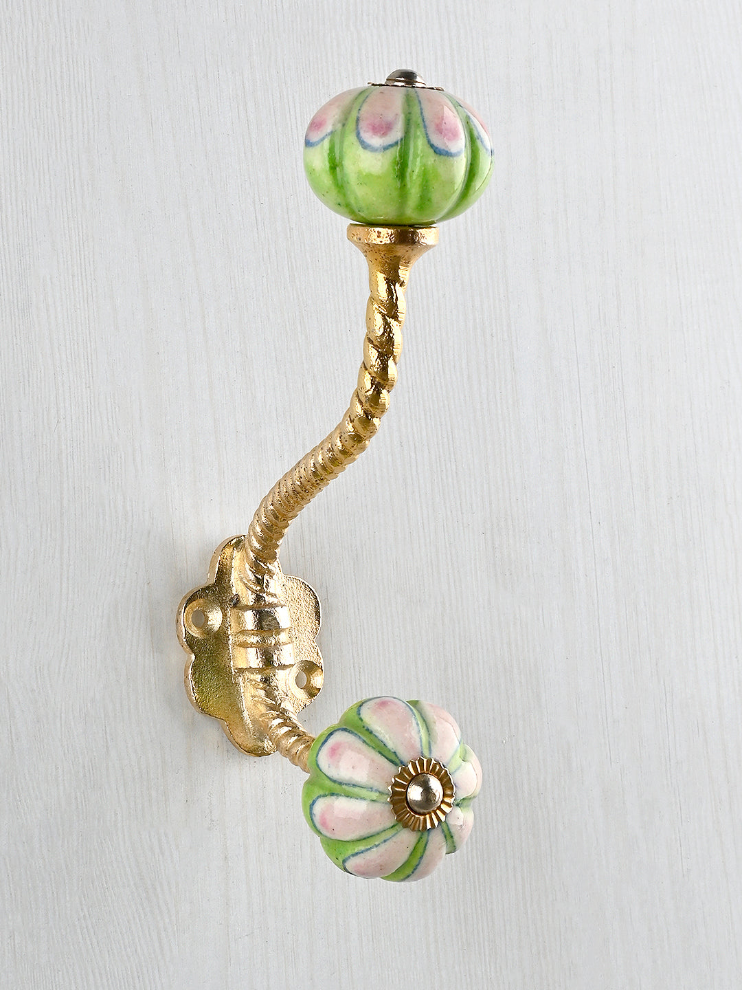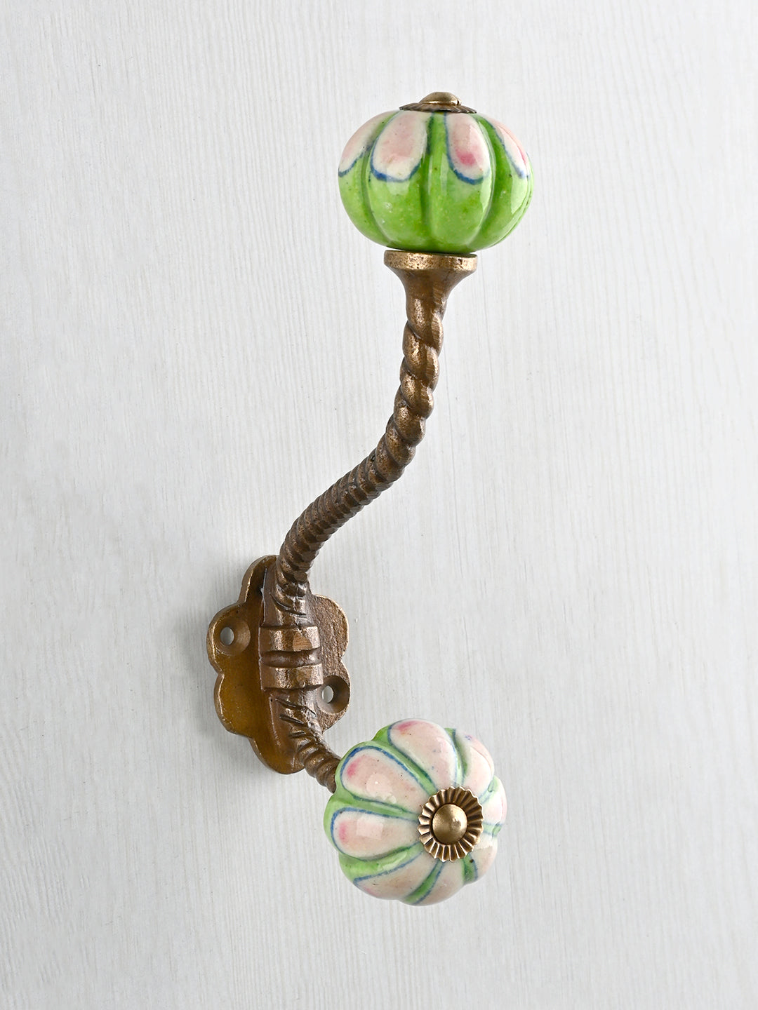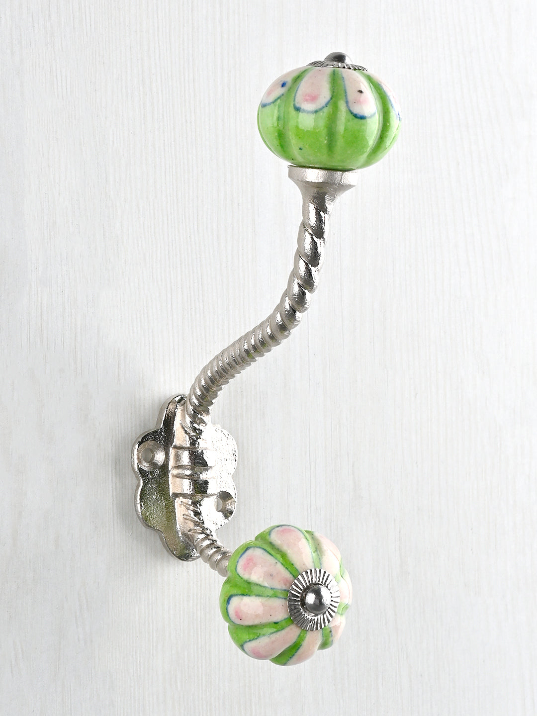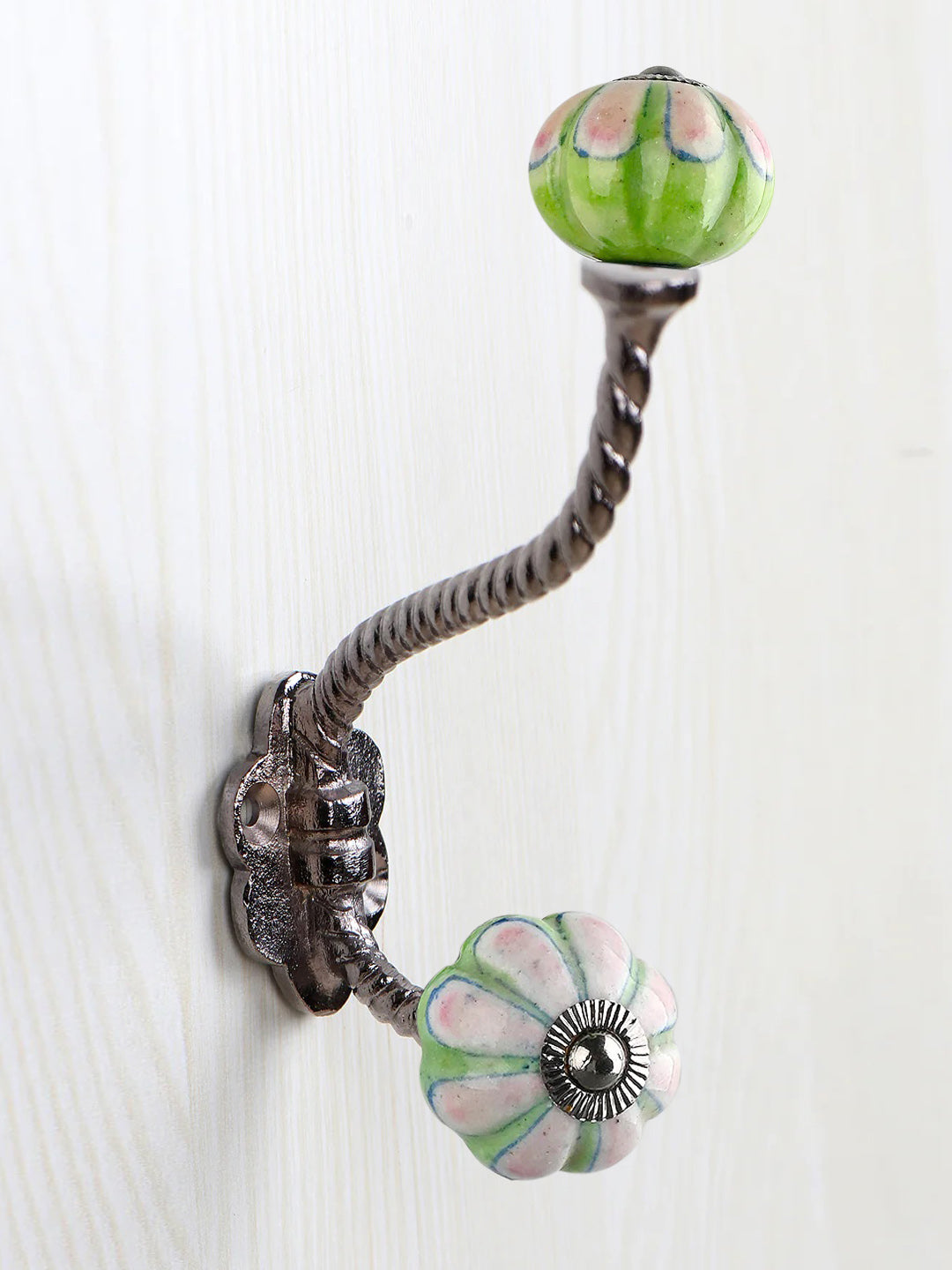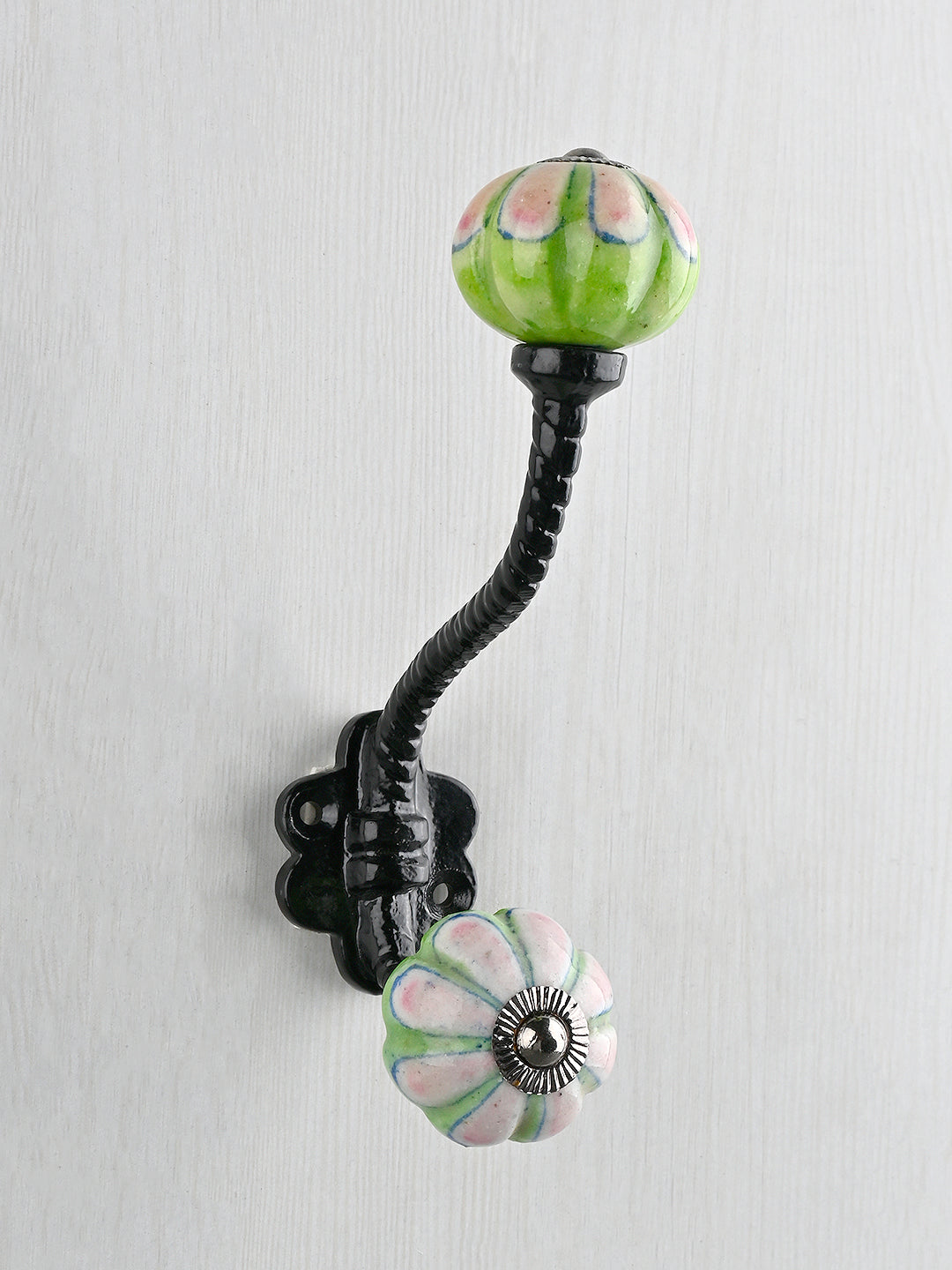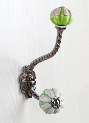 Green and Pink Ceramic Knob With Metal Wall Hanger