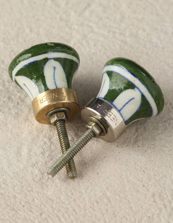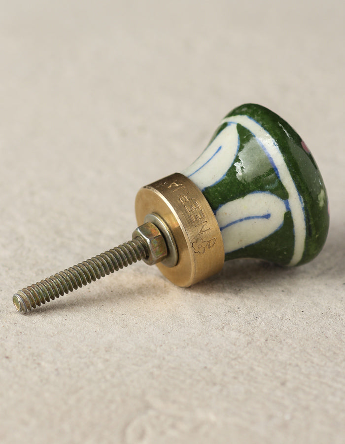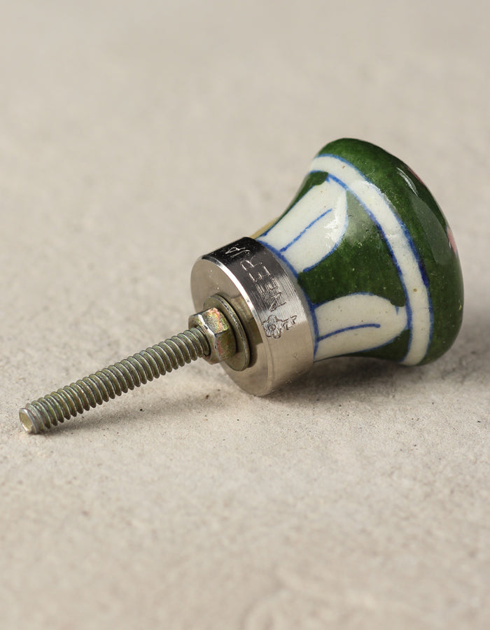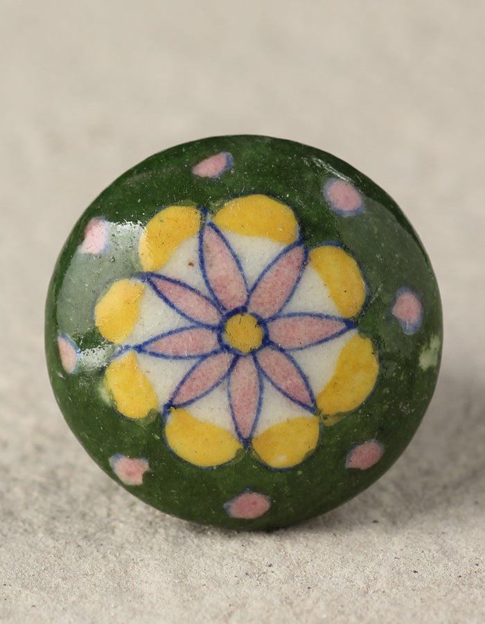 Green Ceramic Blue Pottery Drawer Knob With Pink And Yellow Print