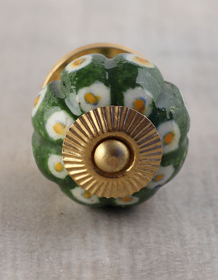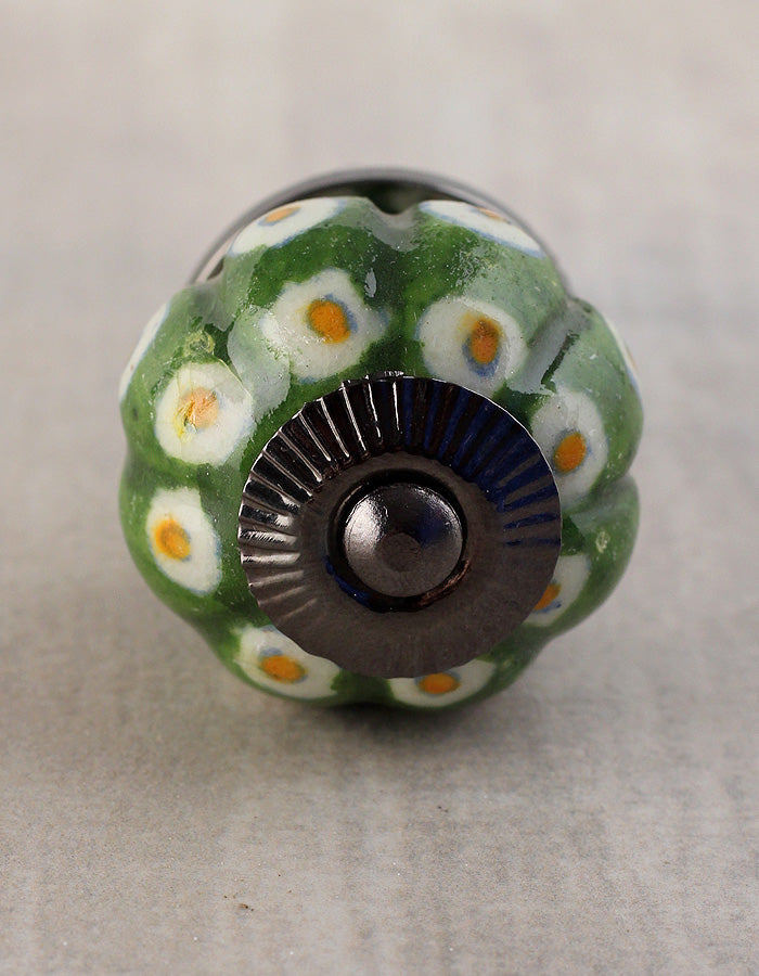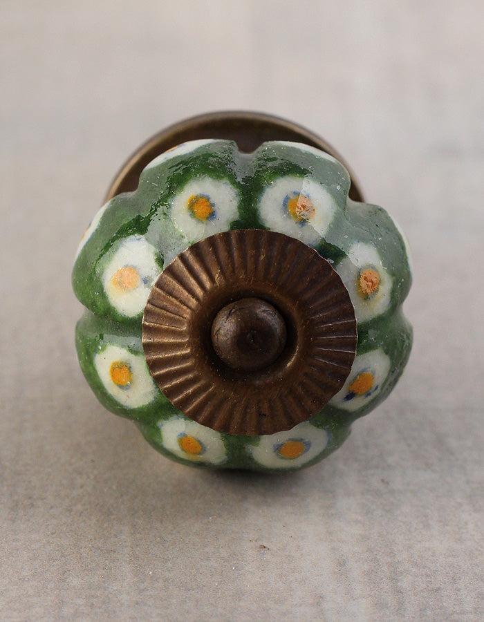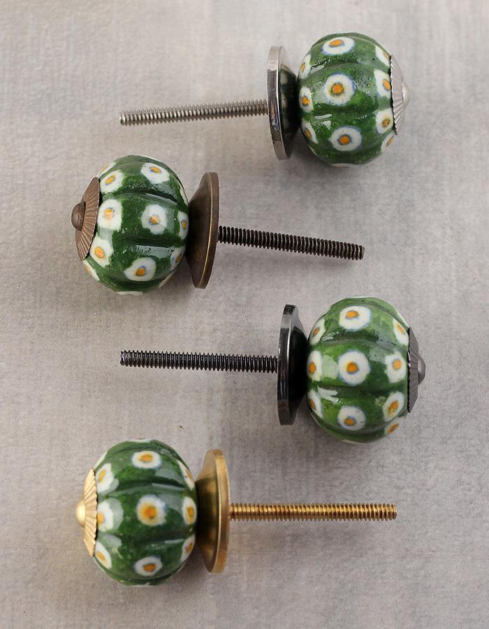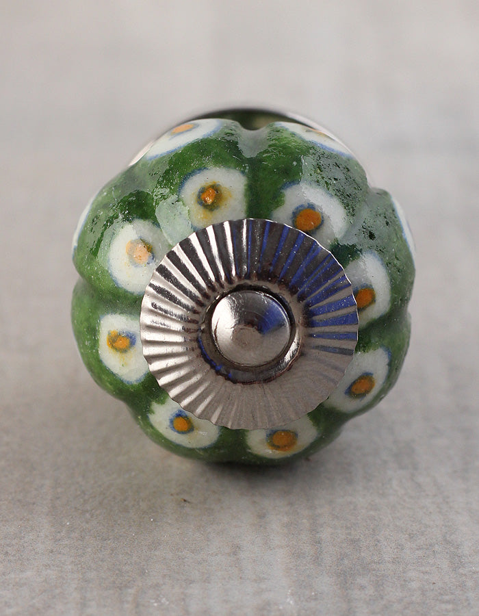 Green Ceramic Melon Shaped Wardrobe Cabinet Knob With White Dots