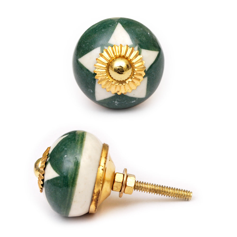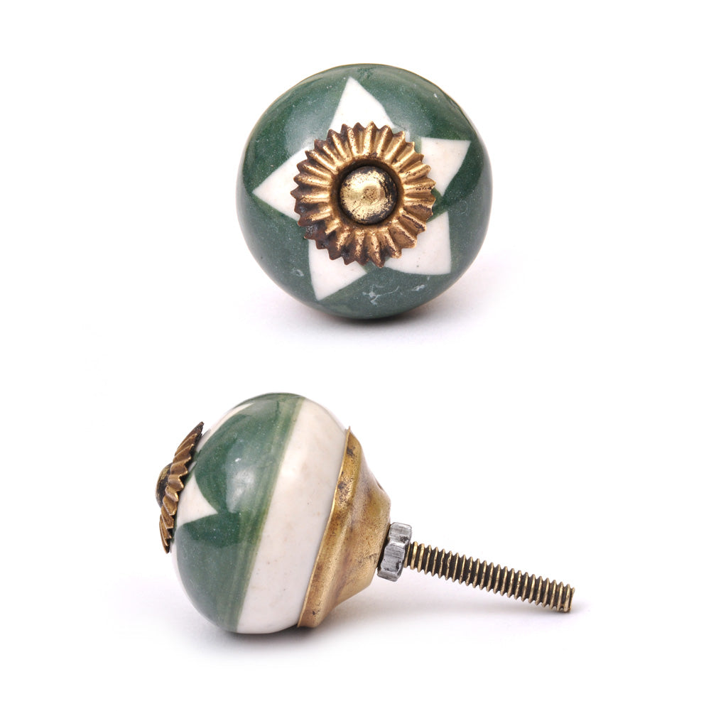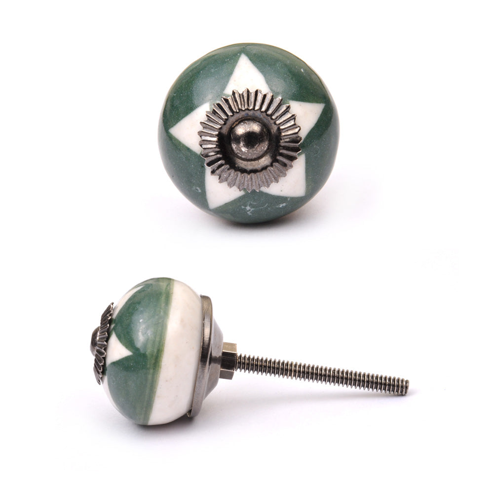Green Drawer Cabinet Knob With White Star