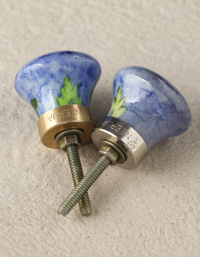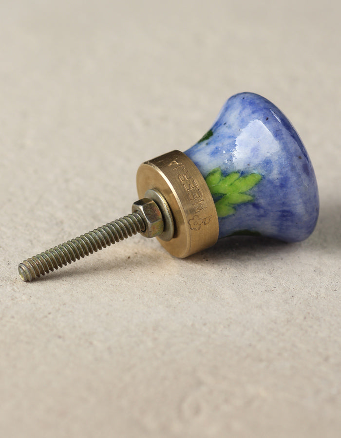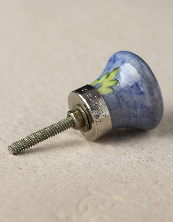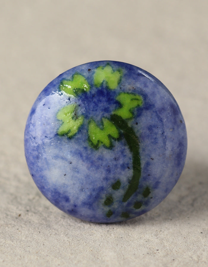 Green Flower On Purple Ceramic Blue Pottery Dresser Cabinet Knob