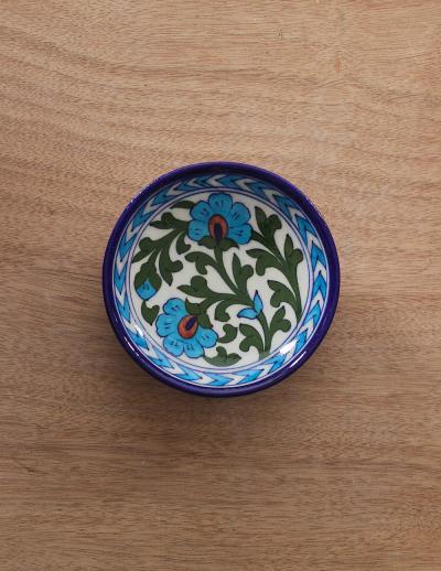 Green leaf and Turquoise Flowers Decorative Plate 5 inch(Set of 4)
