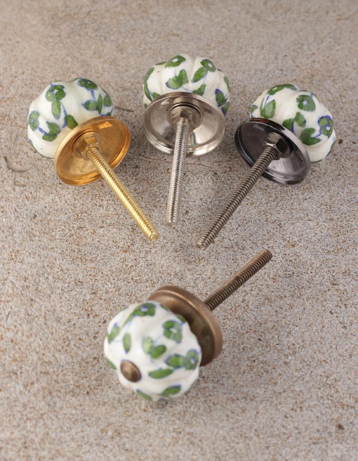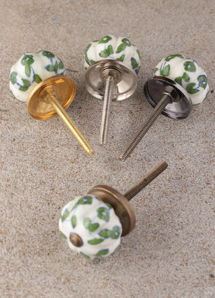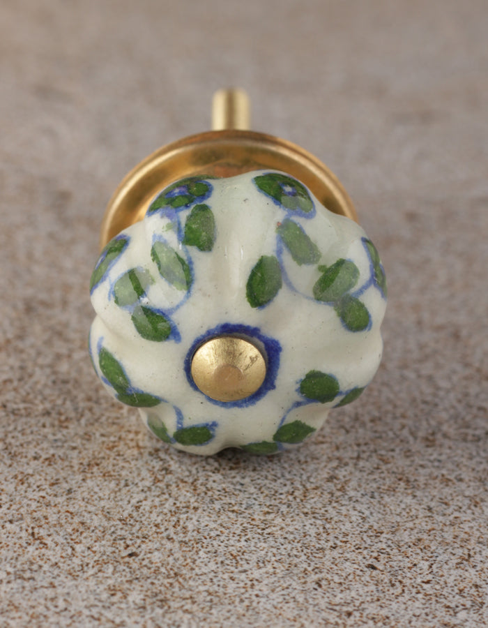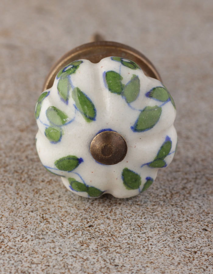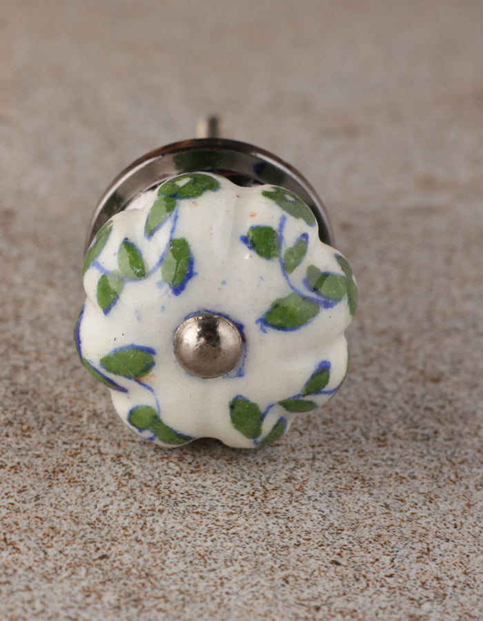 Green Leaf Pattern On White Ceramic Bathroom Cabinet Knob