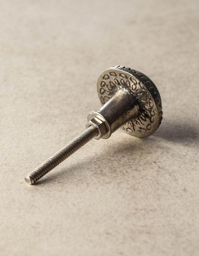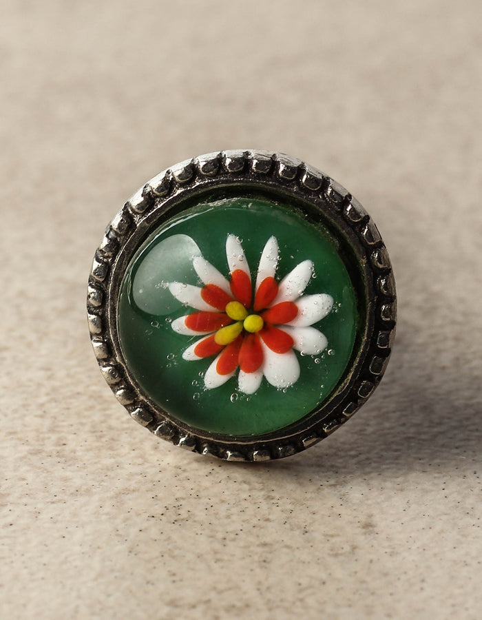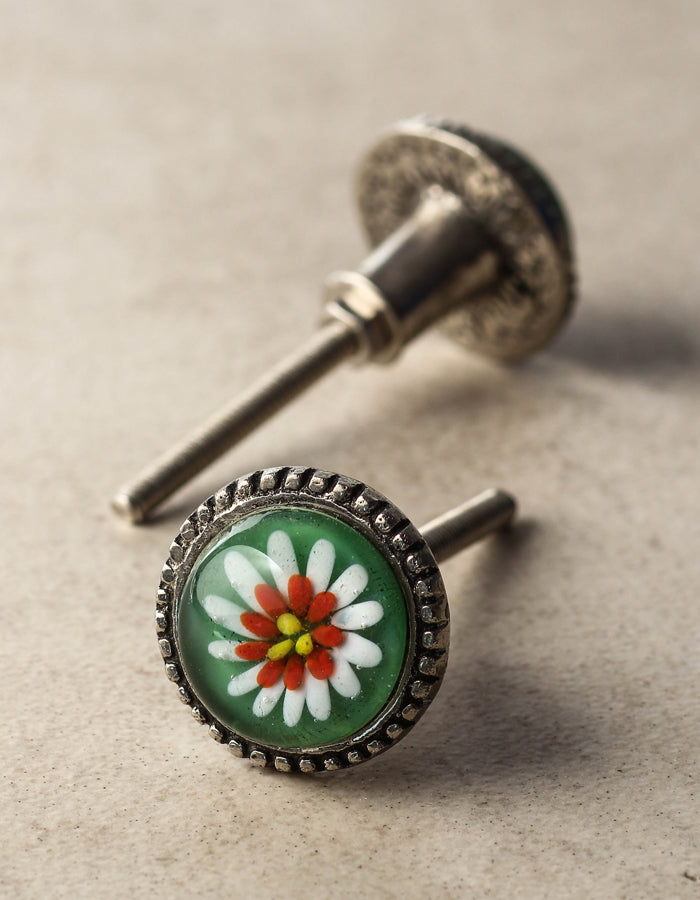 Green, White, Red and Yellow Flower Glass Knob on a Metal Base