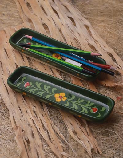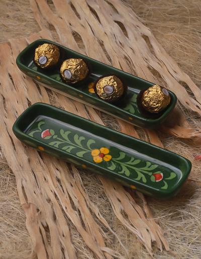 Green Yellow Floral Leafy Pencil Plate 8 inch (Set of 2 pieces)