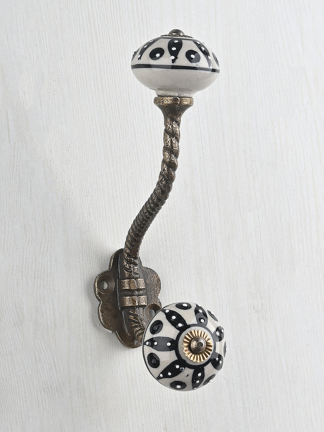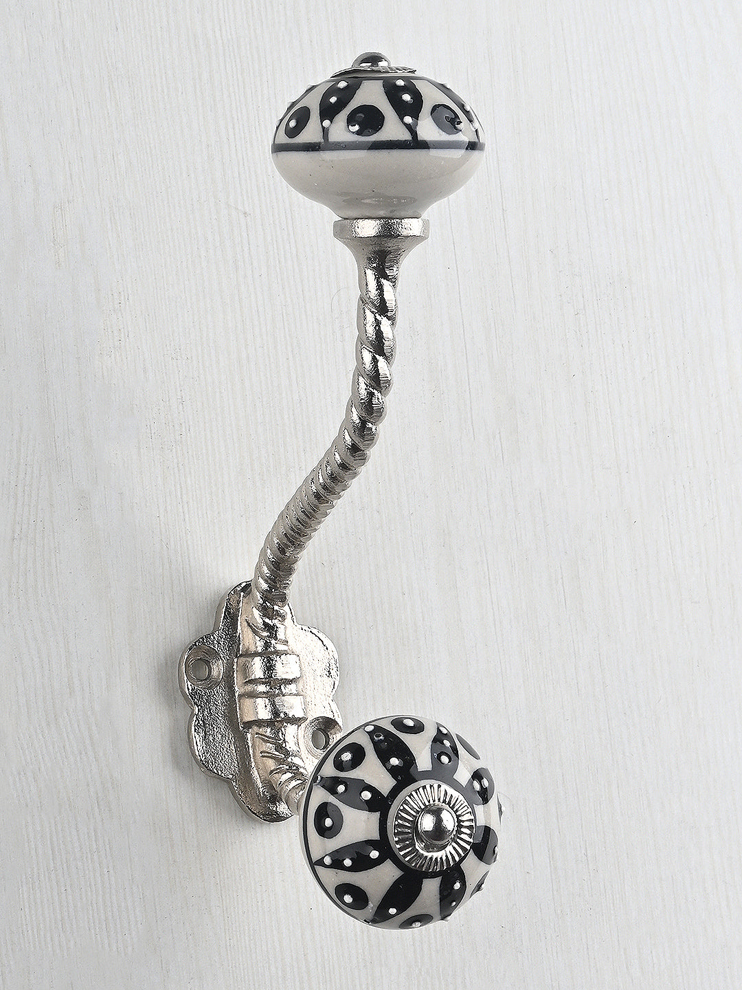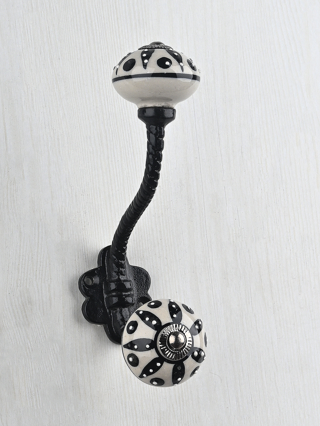 Grey Black Ceramic Knob With Metal Wall Hanger