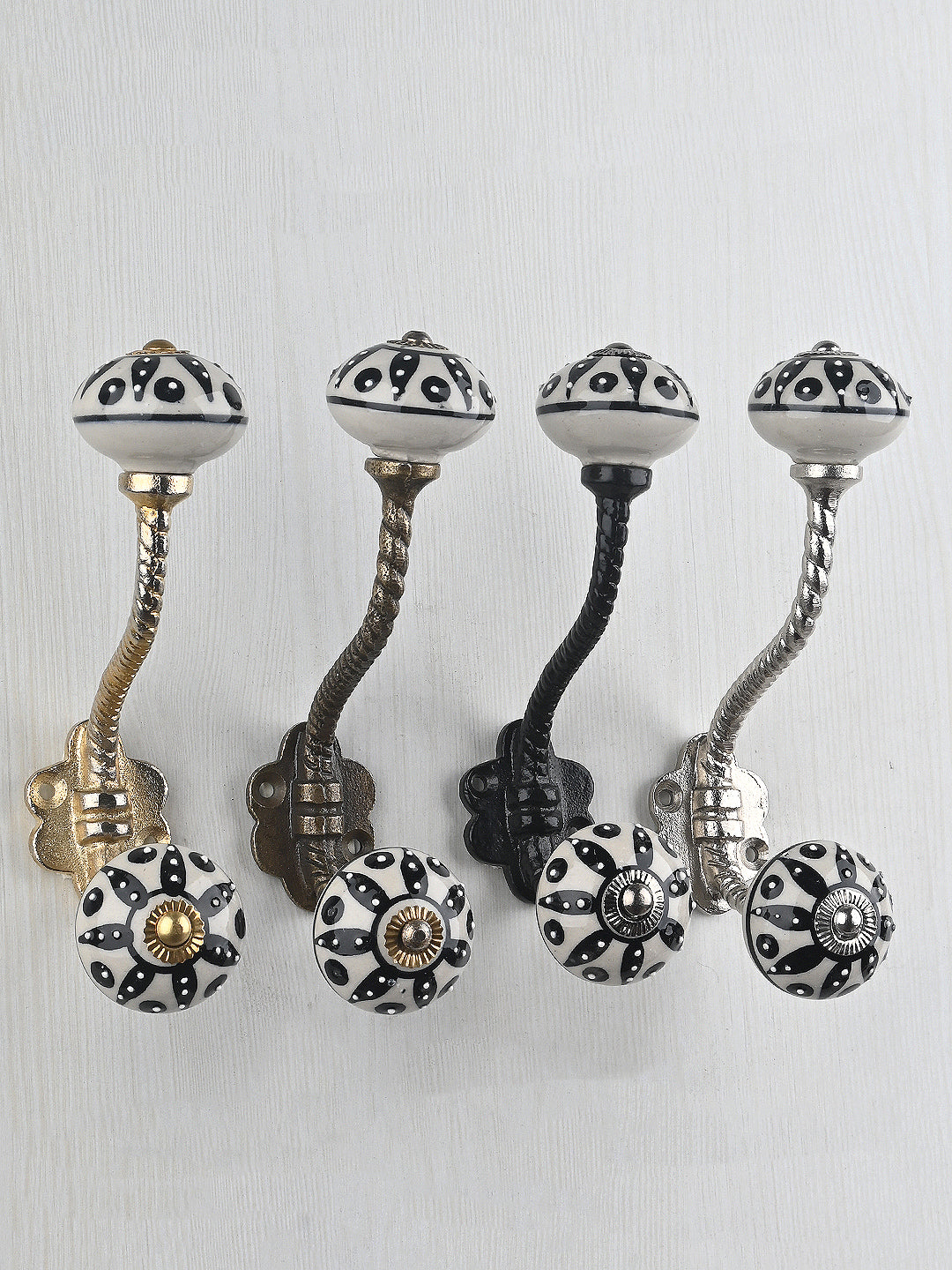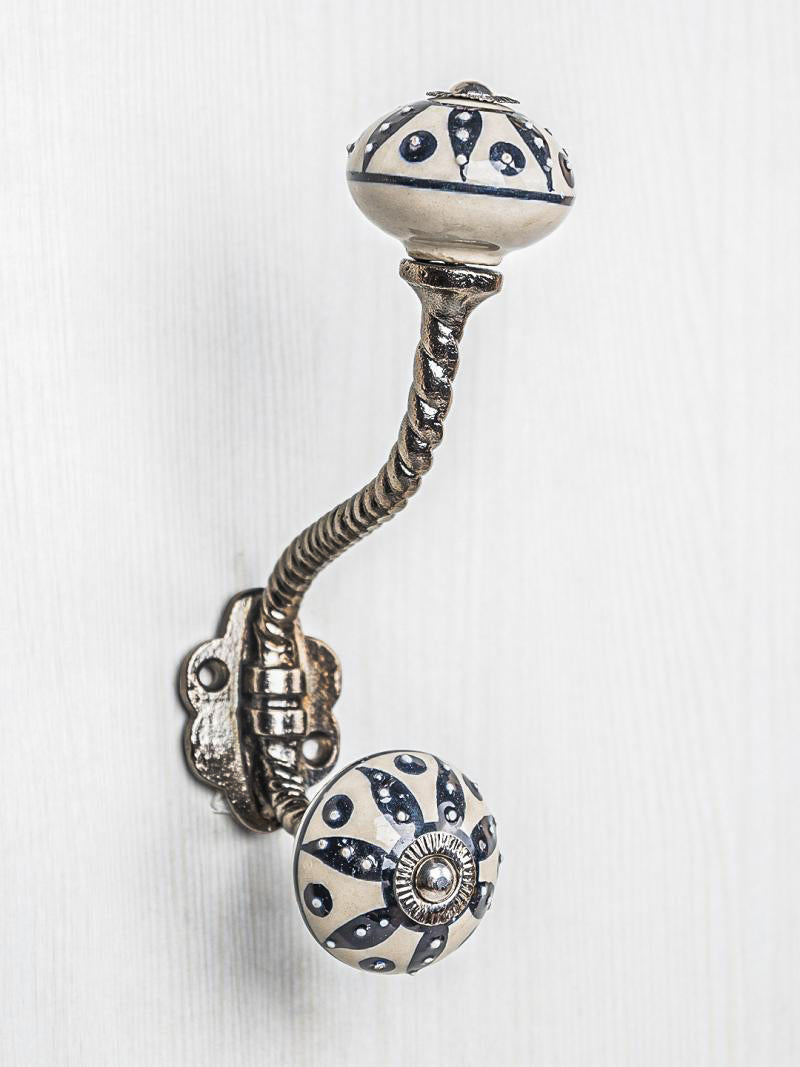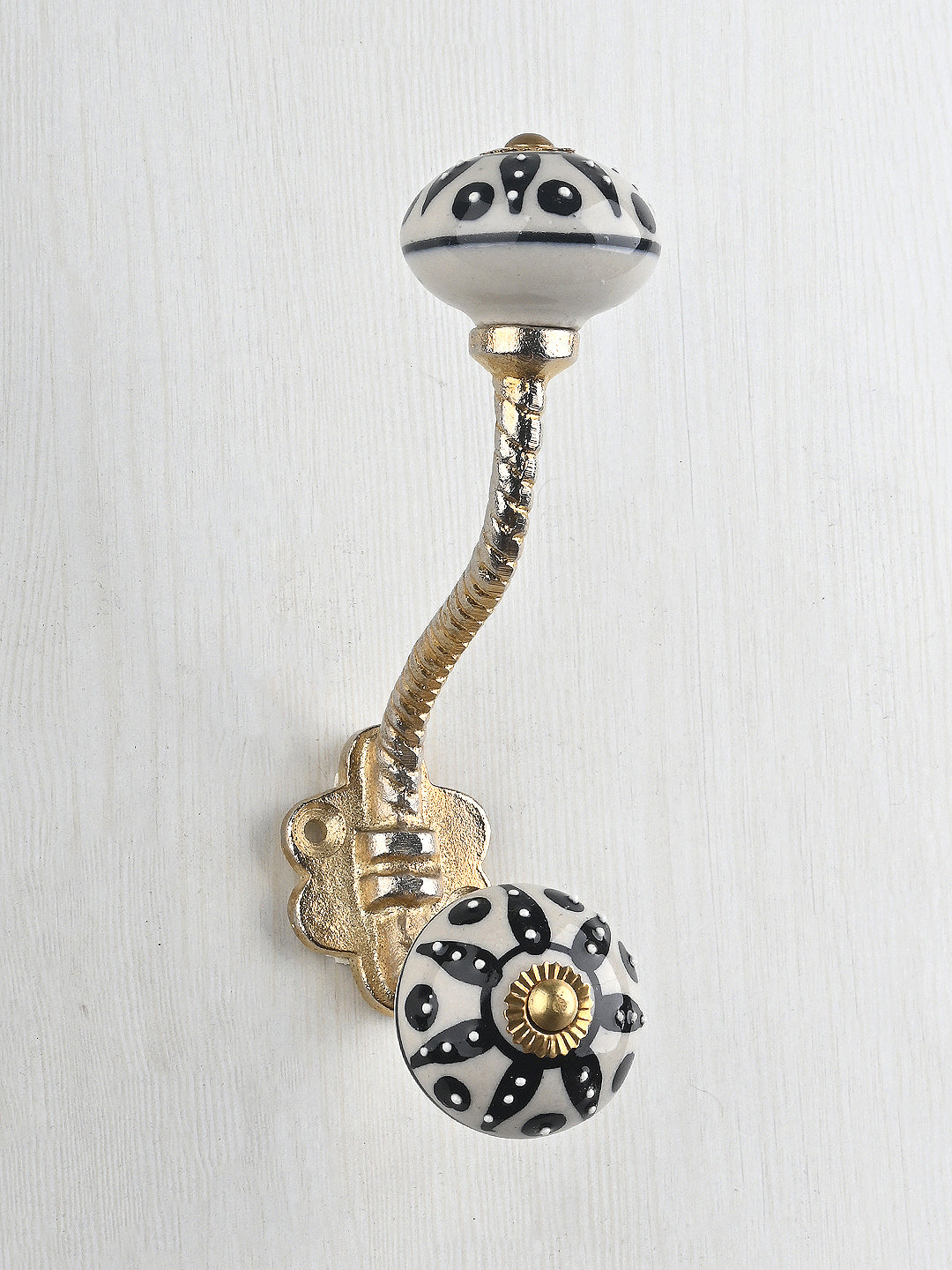 Grey Black Ceramic Knob With Metal Wall Hanger