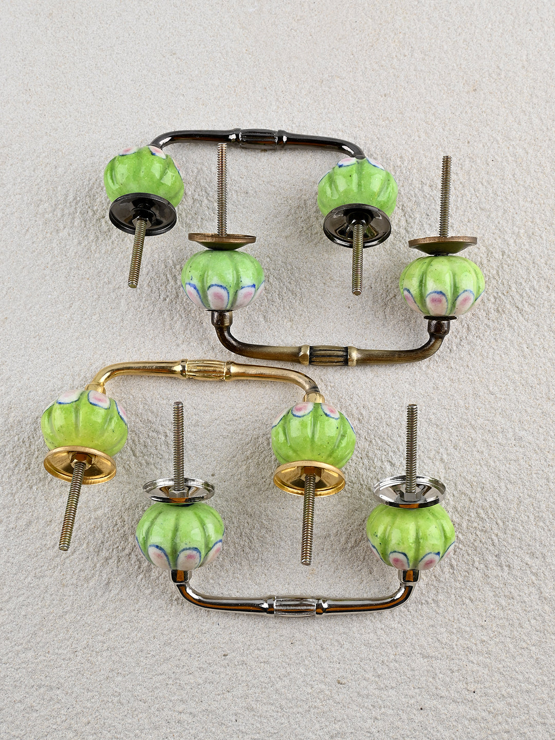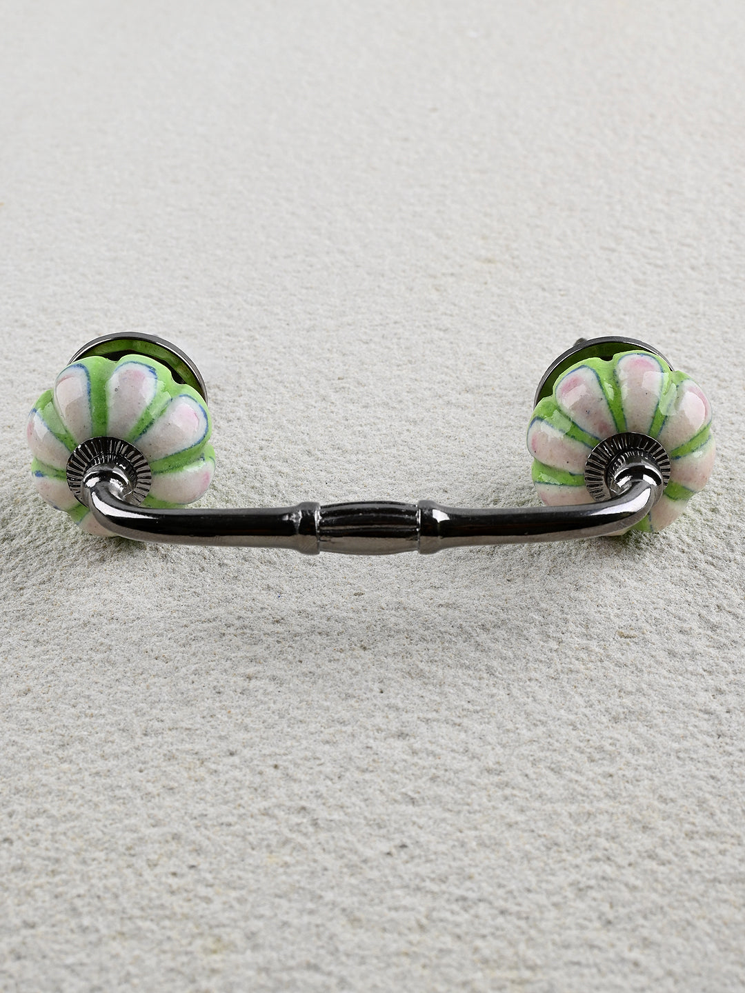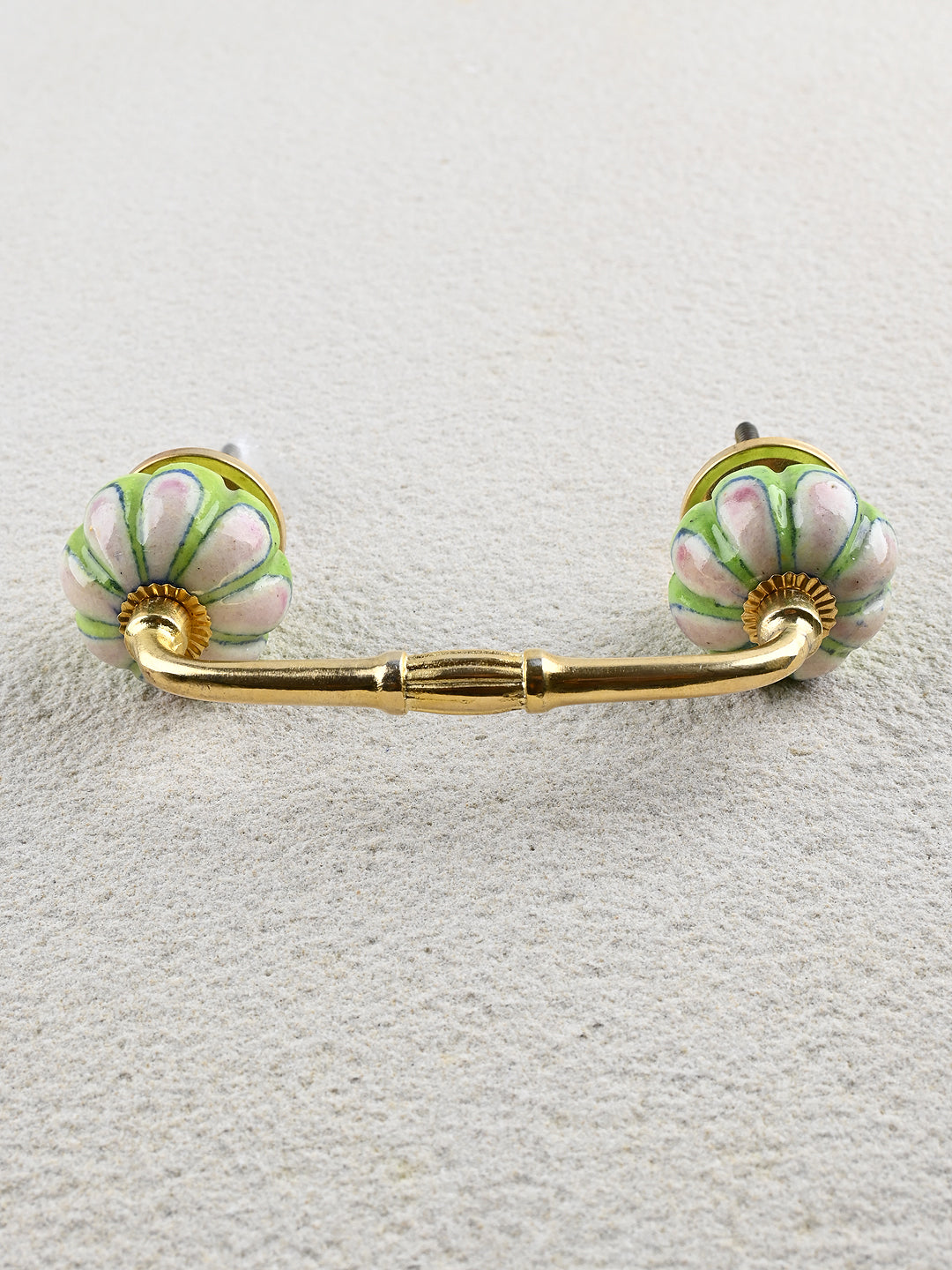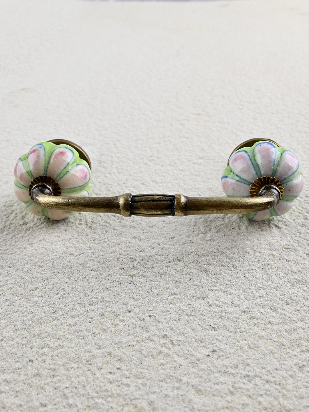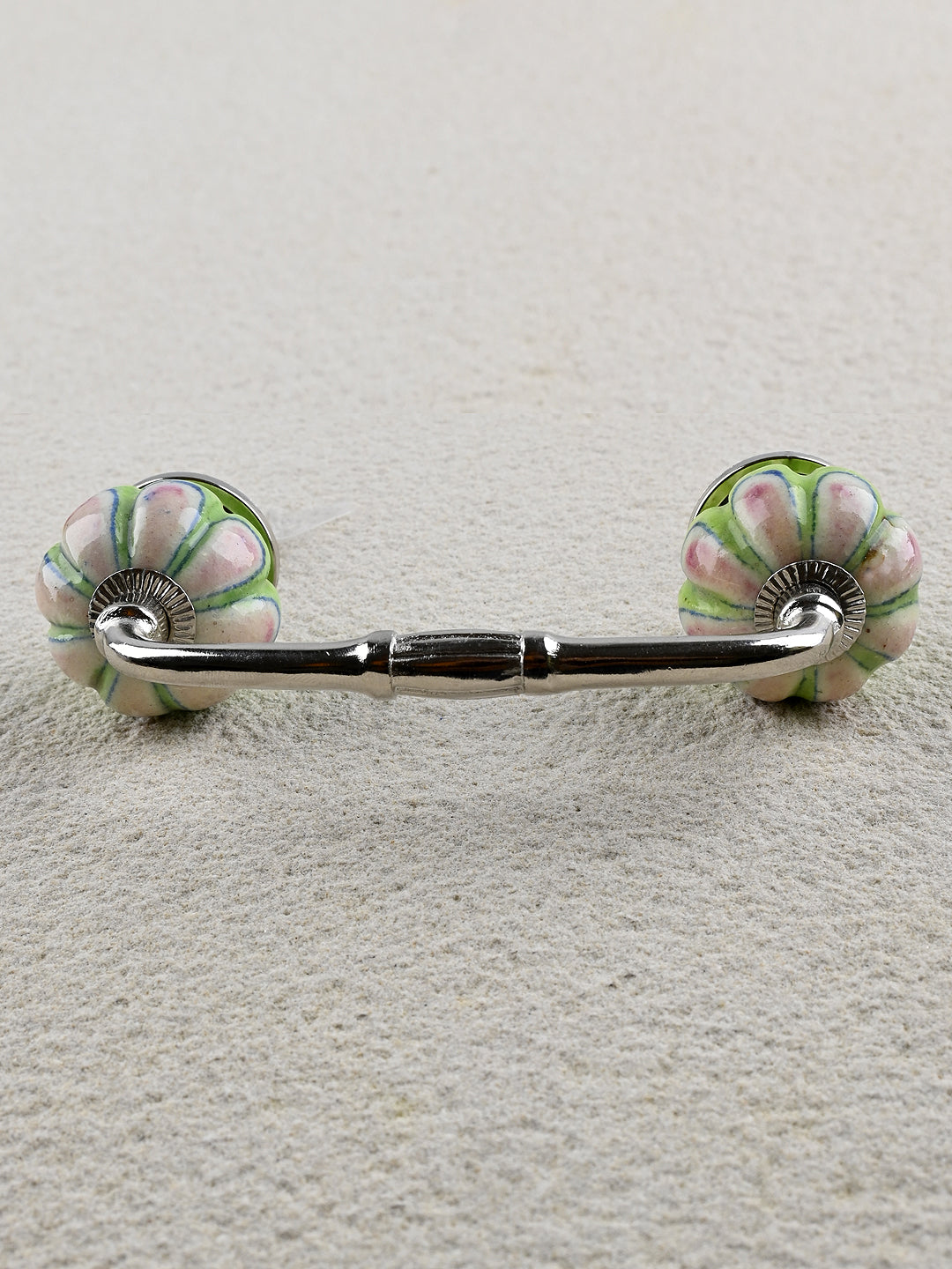 Hand Painted Green and Pink Flower Design Ceramic Pottery Pull