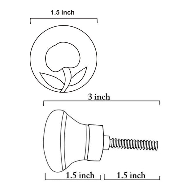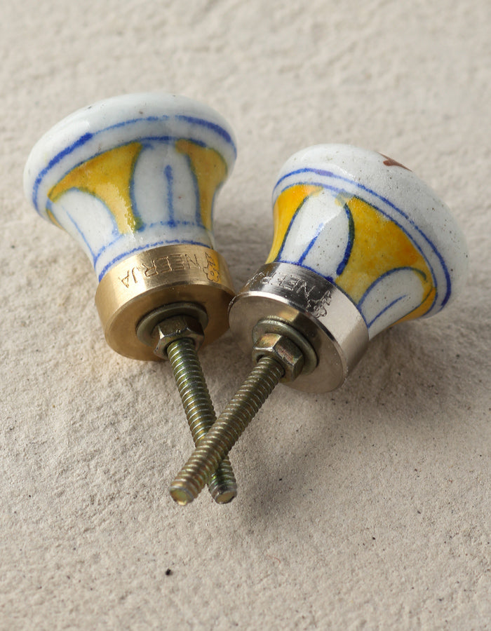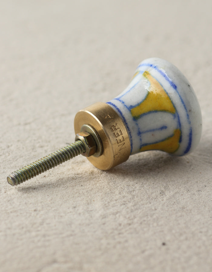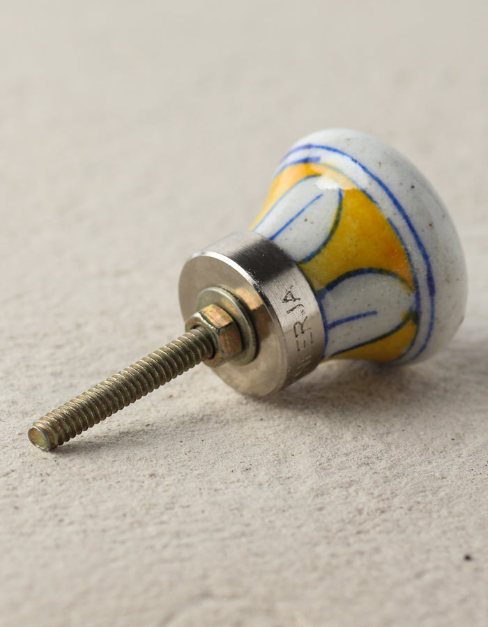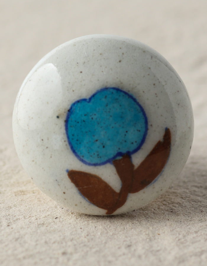 Handcrafted White Ceramic Blue Pottery Knob With Turquoise Flower