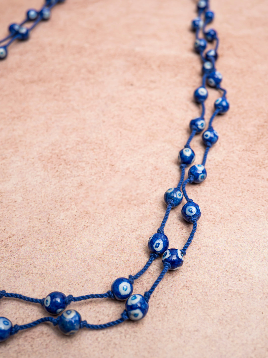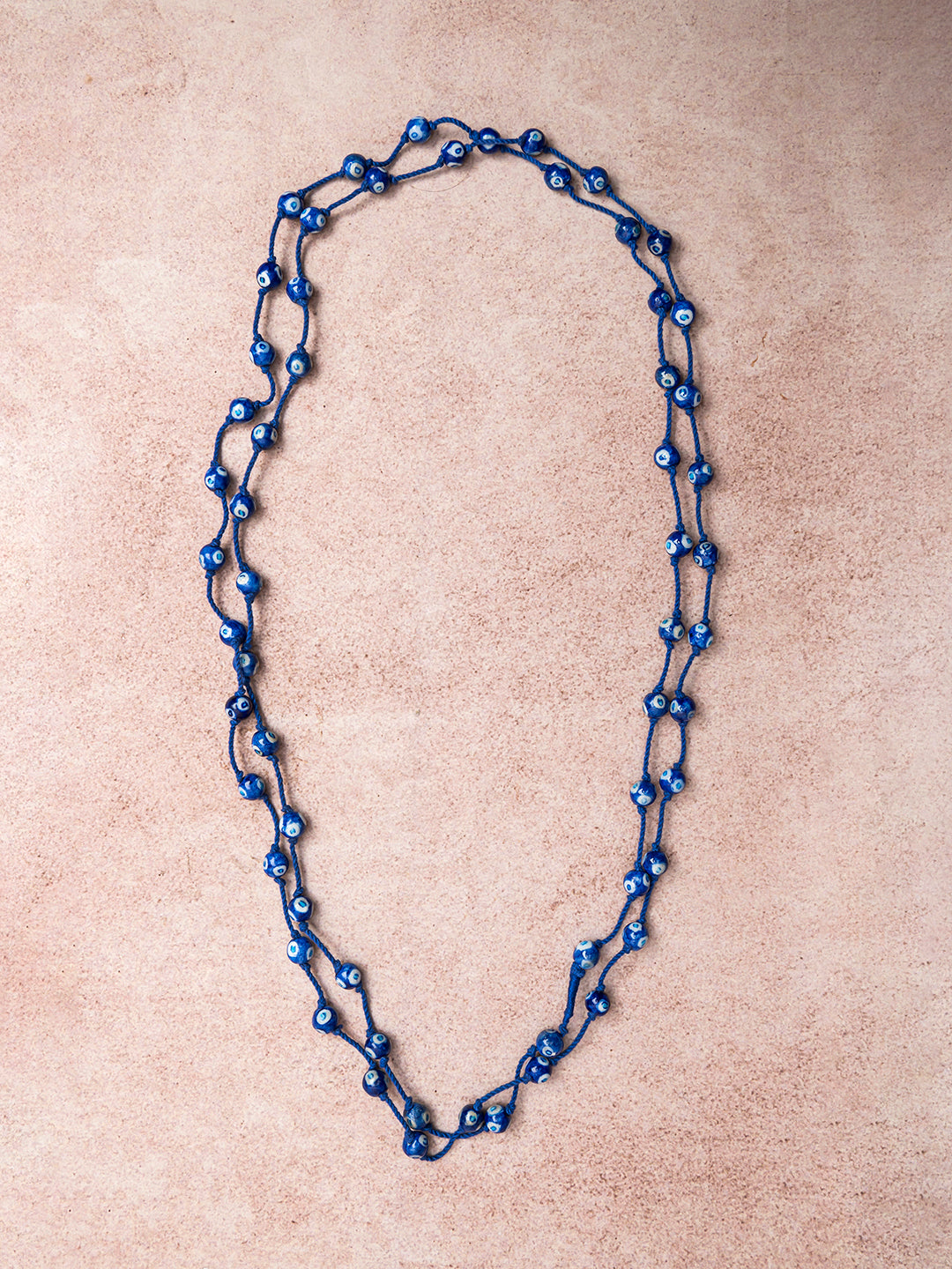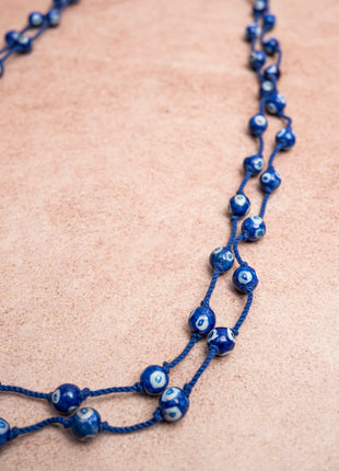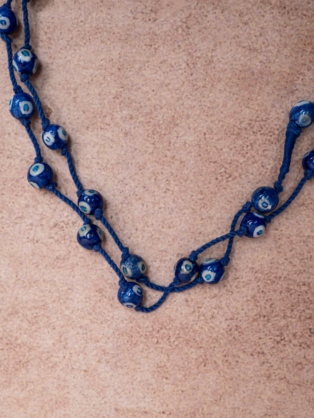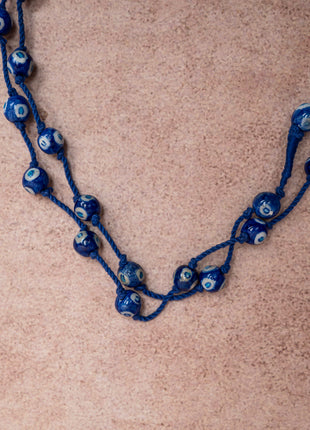 Handmade Blue Pottery Bead Evil Eye Long Necklace(Blue)