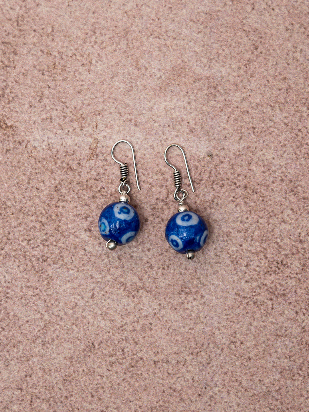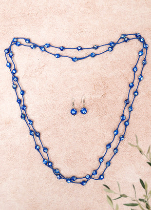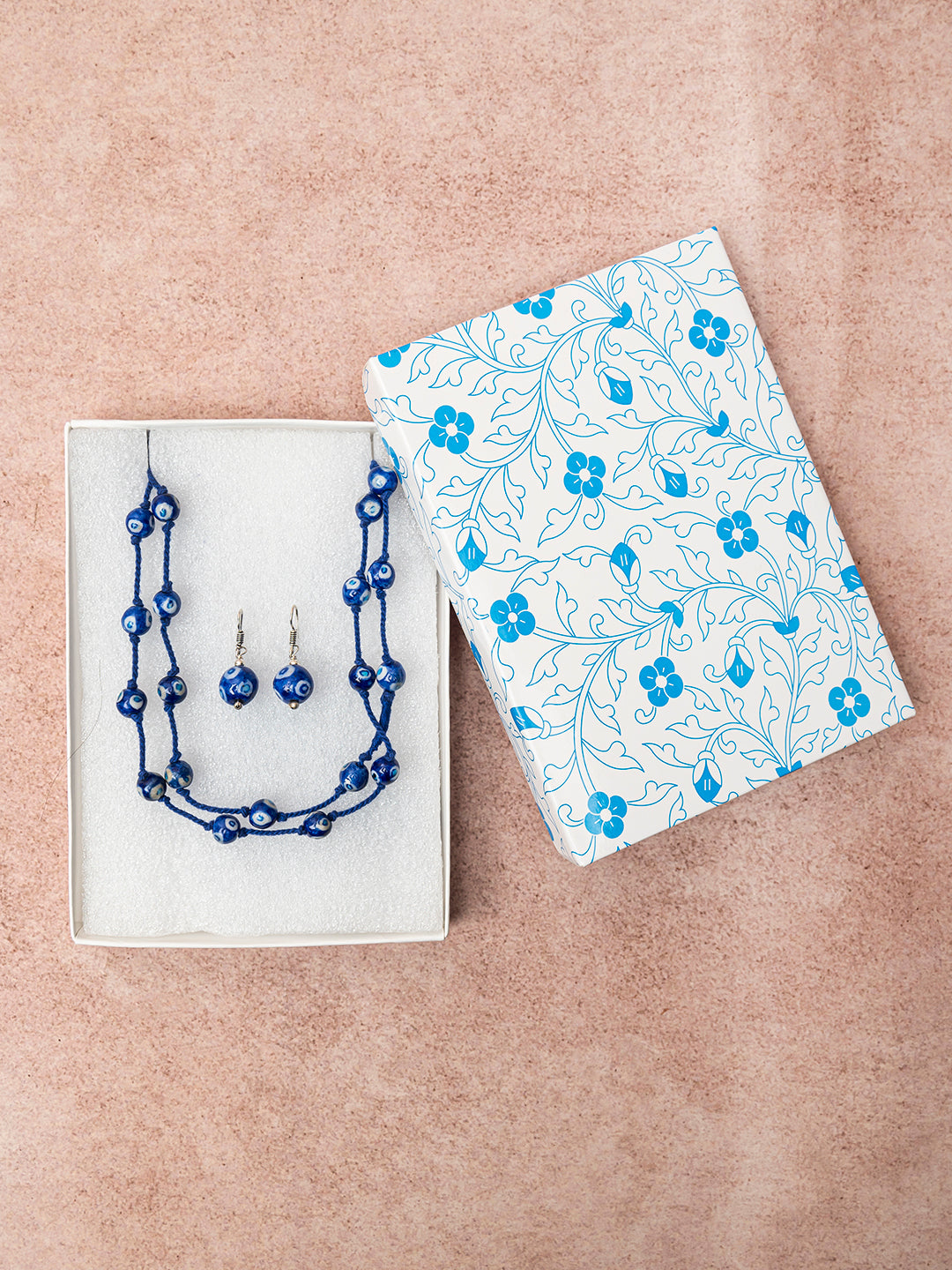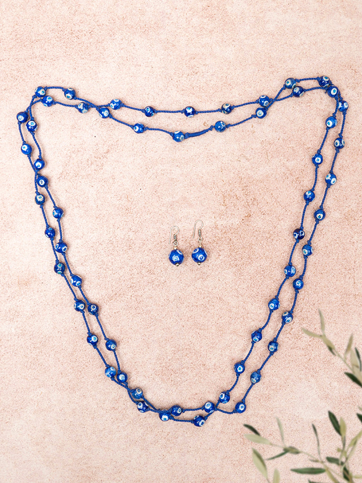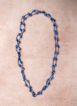 Handmade Blue Pottery Bead Evil Eye Long Necklace(Blue)