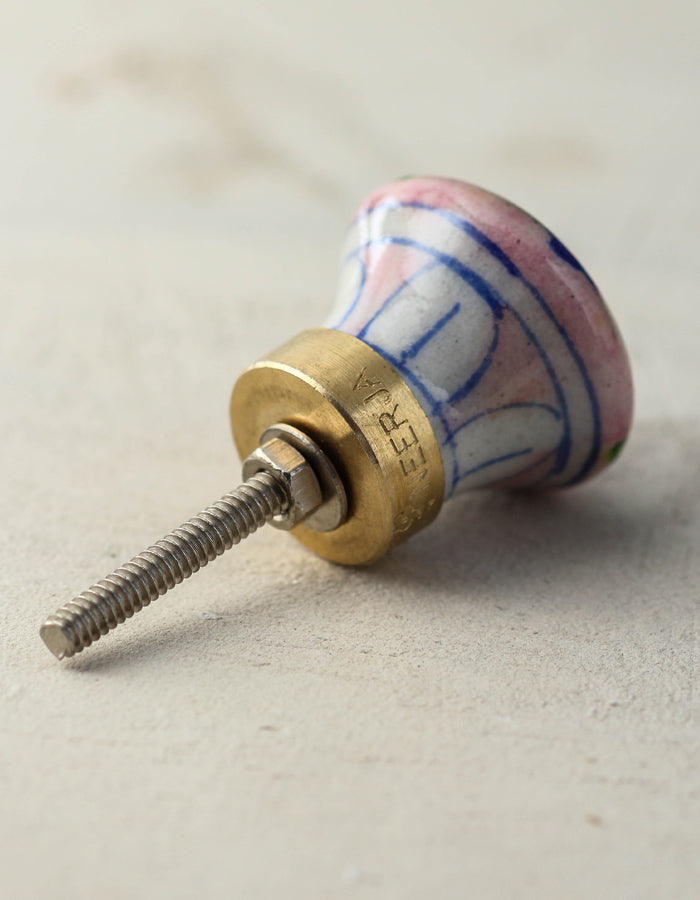 Handmade Pink Ceramic Knob With Blue And Green Design