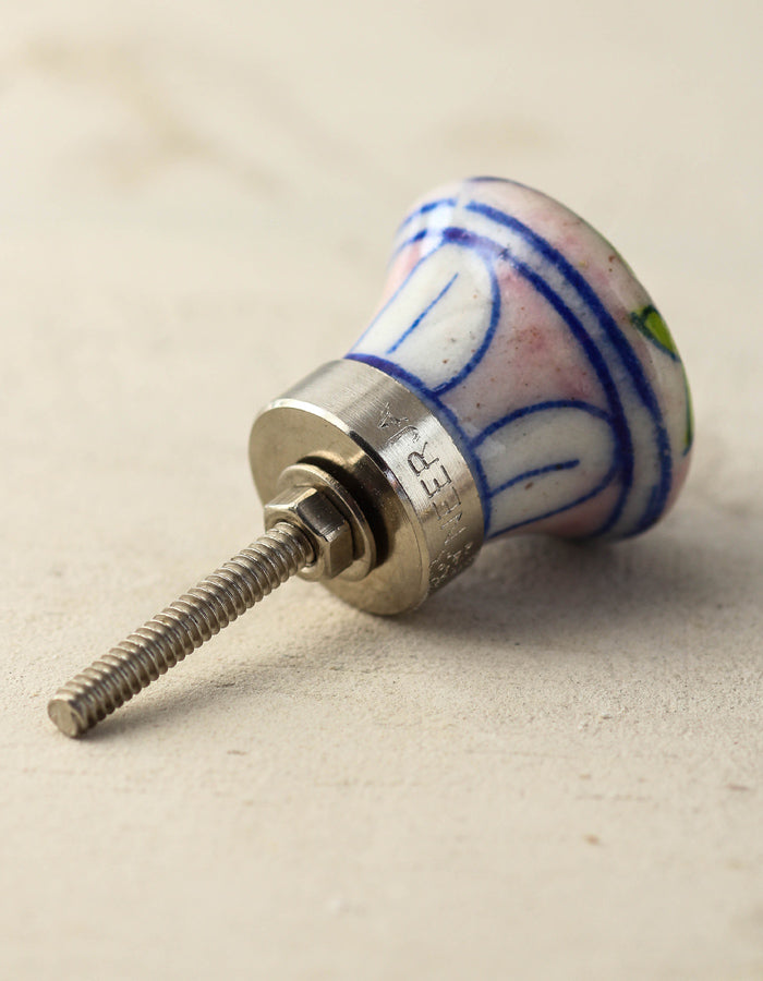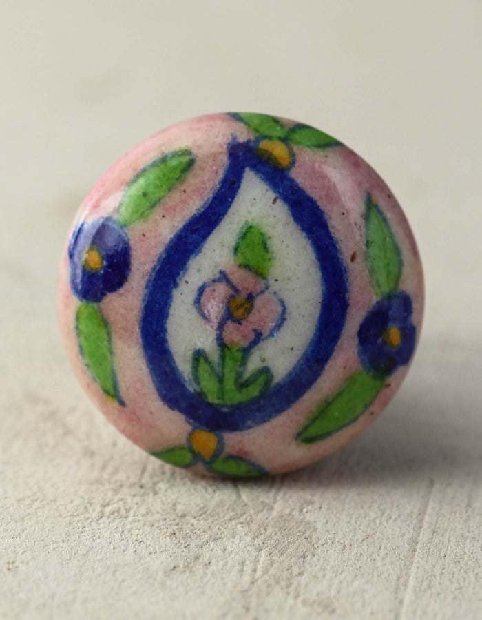 Handmade Pink Ceramic Knob With Blue And Green Design, has sophisticated design and is beautifully and neatly crafted to suit your requirement of a floral knob for the drawers and cabinets at your home.