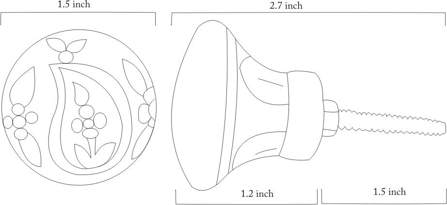 It is perfectly suitable for any cabinet or drawer in your kitchen, bathroom or even your dressing. Being handmade it gives you a very personal and elegant appearance to your drawers or cabinets. This uniquely crafted ceramic knob is 2.54 cm in diameter and also includes screws for easy installation of the knob.