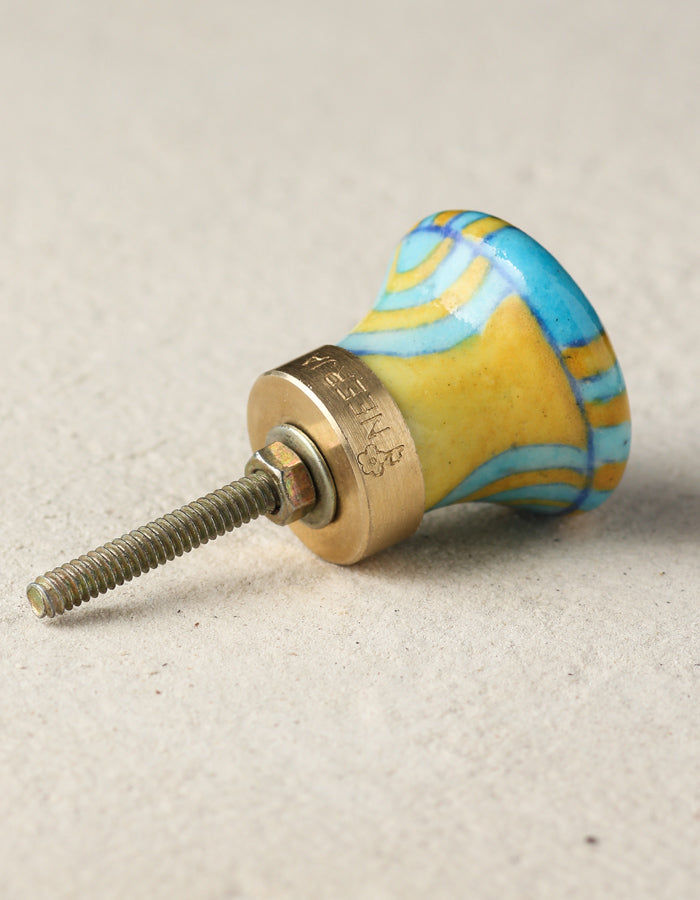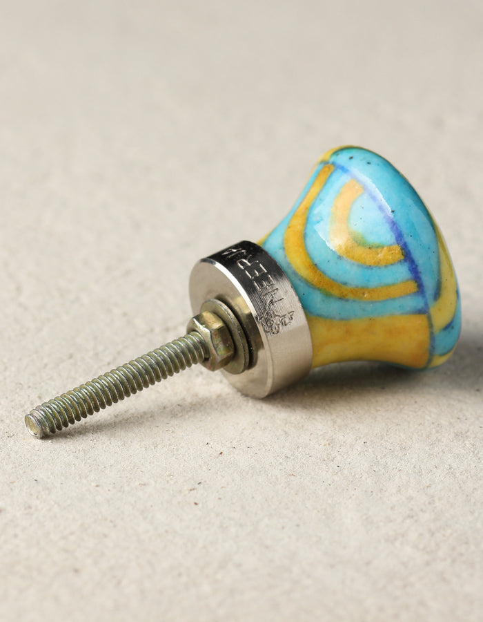 Handmade Turquoise And Yellow Ceramic Blue Pottery Kitchen Cabinet Knob