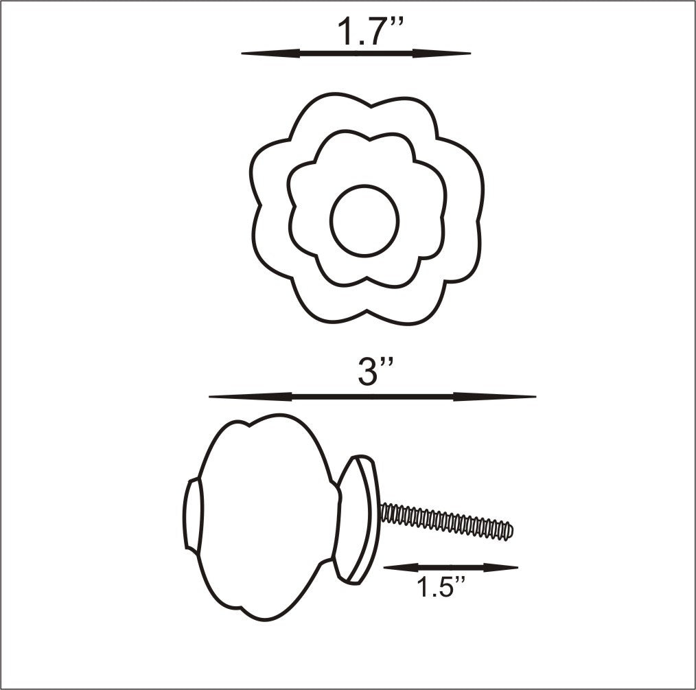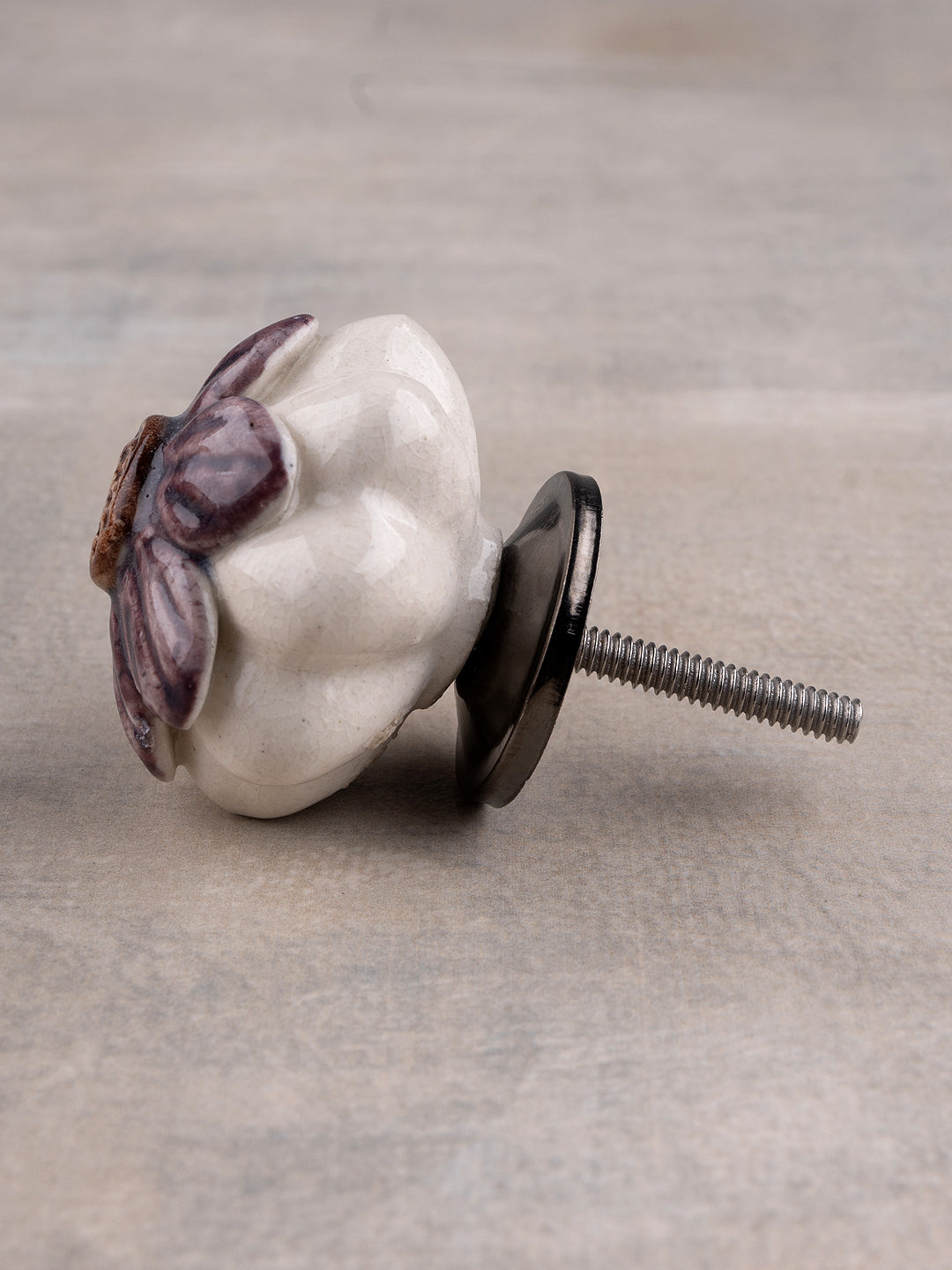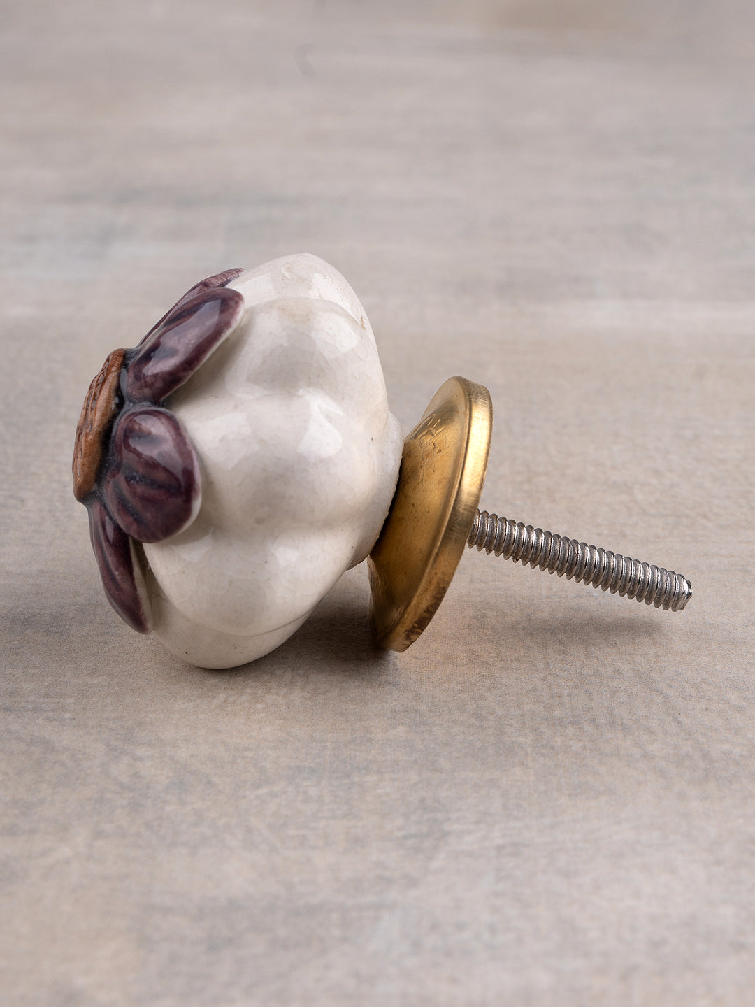 Handmade White & Brown Embossed Flower Shape Ceramic Knob